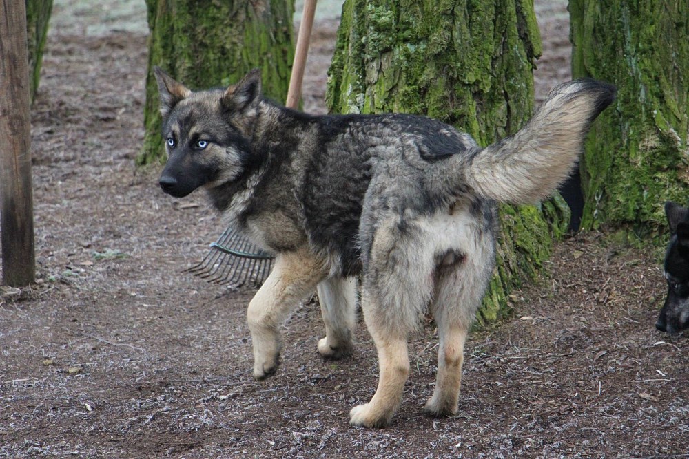 suka, mieszaniec owczarka z husky, młoda- max 1,5 roku. Jest w cieczce, odłowiona z gminy Czarnków 11 marca. Jest Łagodna, energiczna, Alosza zapewne jest jej siostrą.
