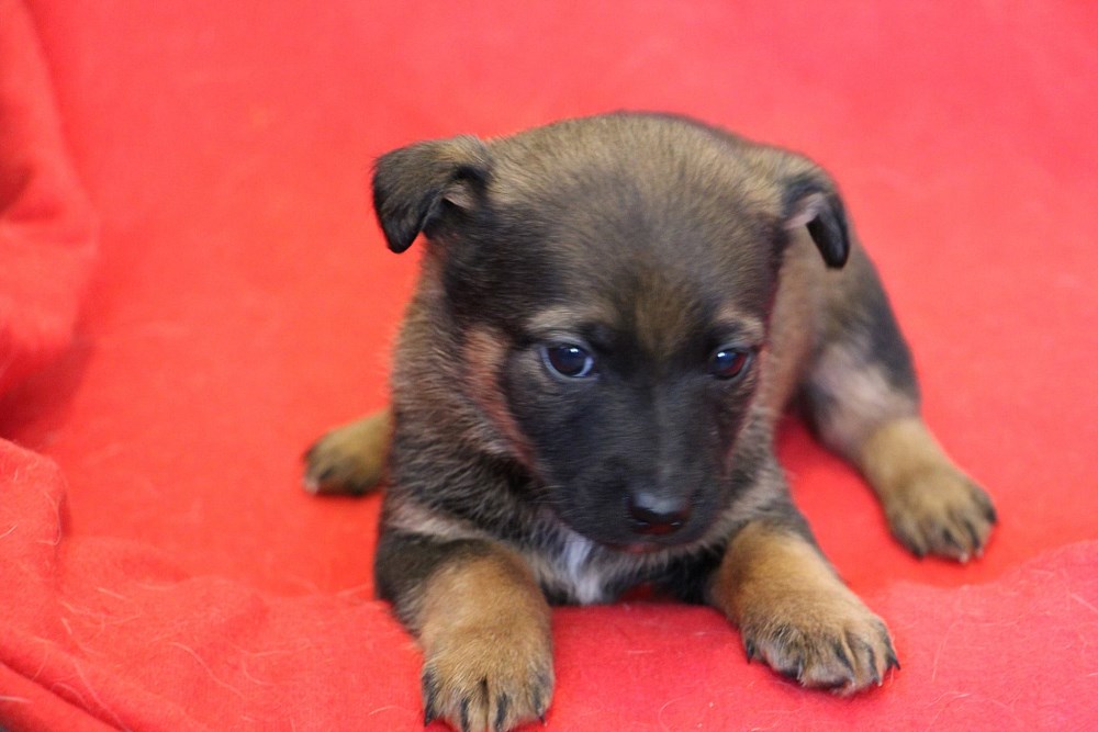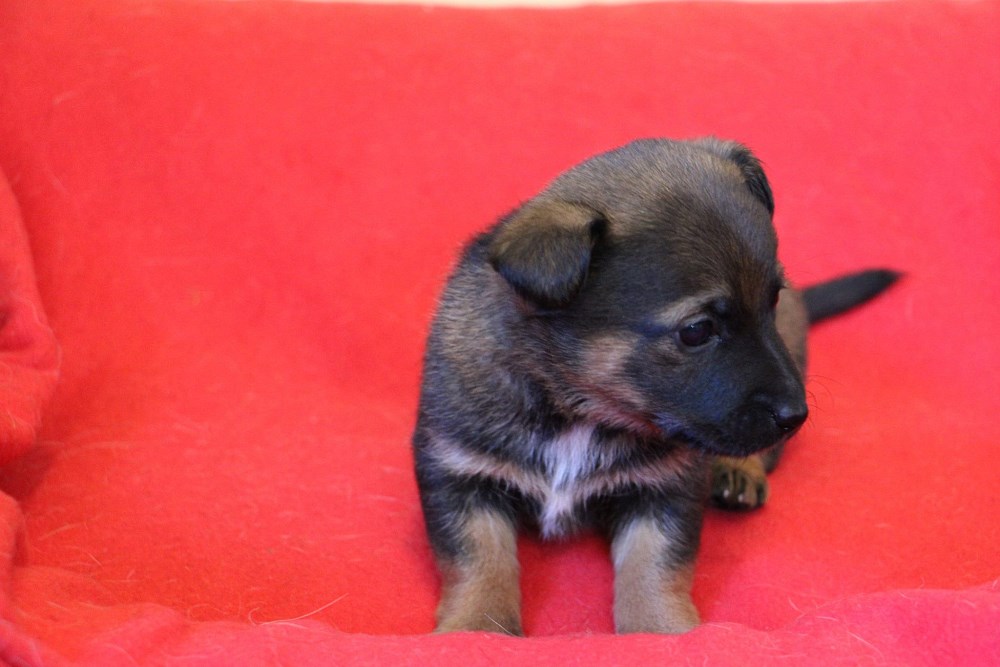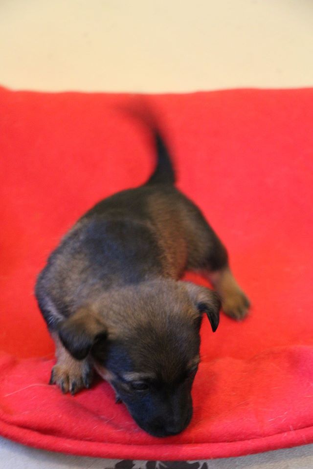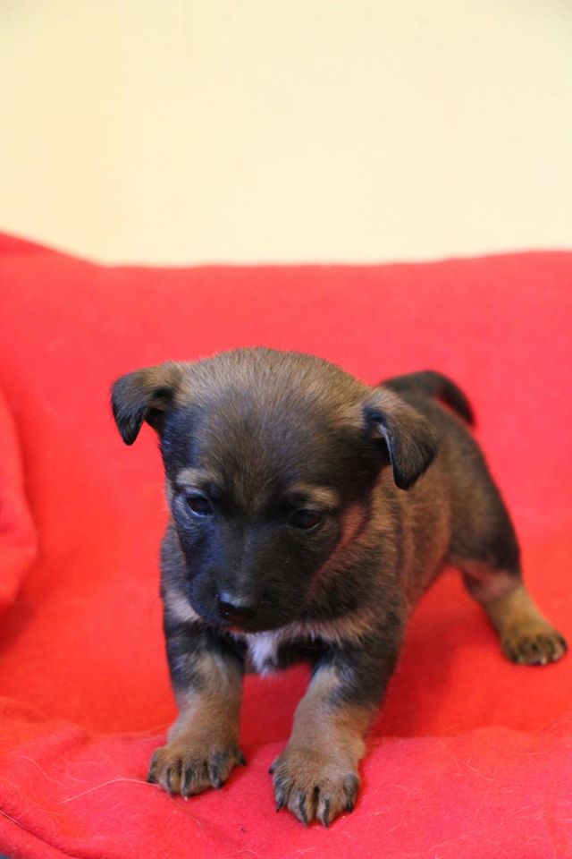 Pies, szczeniak 6 tyg. z gminy Rokietnica. Jest mieszańcem ( kundelkiem) będzie średniej wielkości- rodziców nie znamy, został odrobaczony, zaszczepiony surowicą i razem z rodzeństwem będzie po 14 dniach do adopcji (początek kwietnia). Adoptując szczeniaka trzeba liczyć się z kosztami trzech kolejnych szczepień.