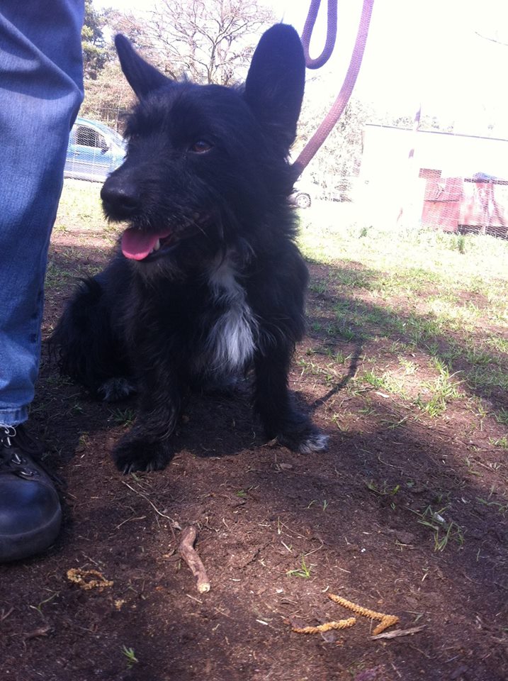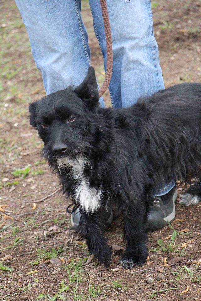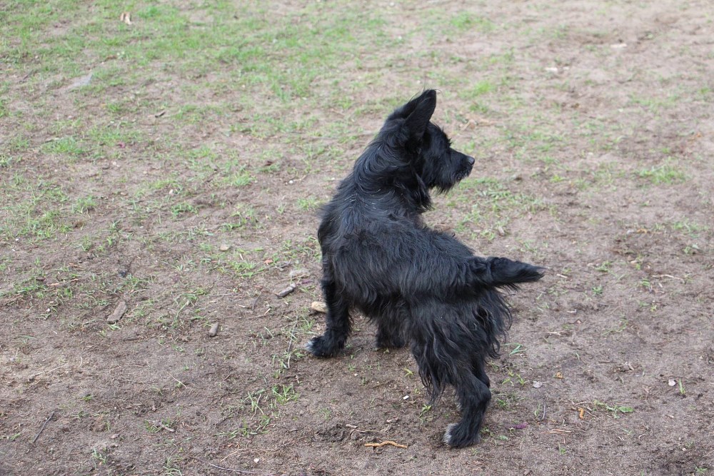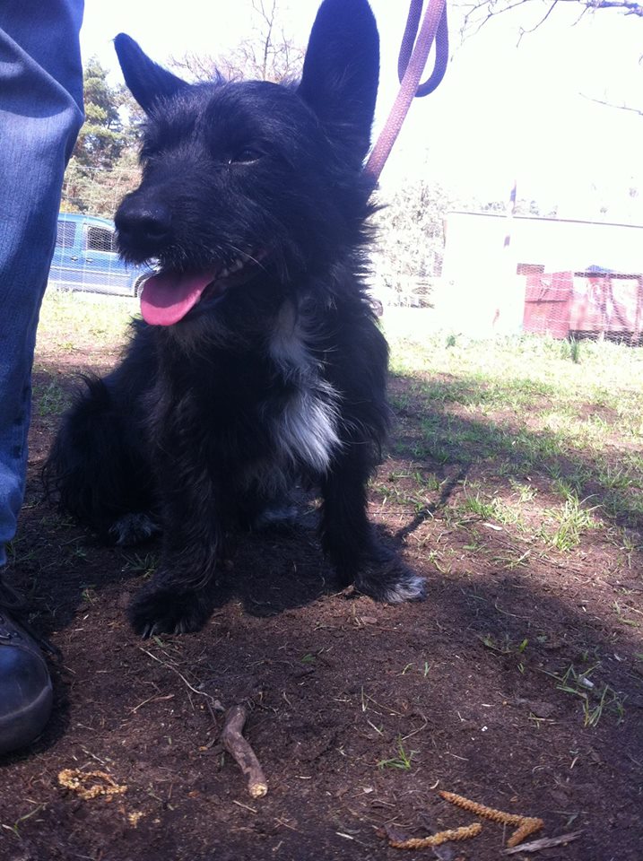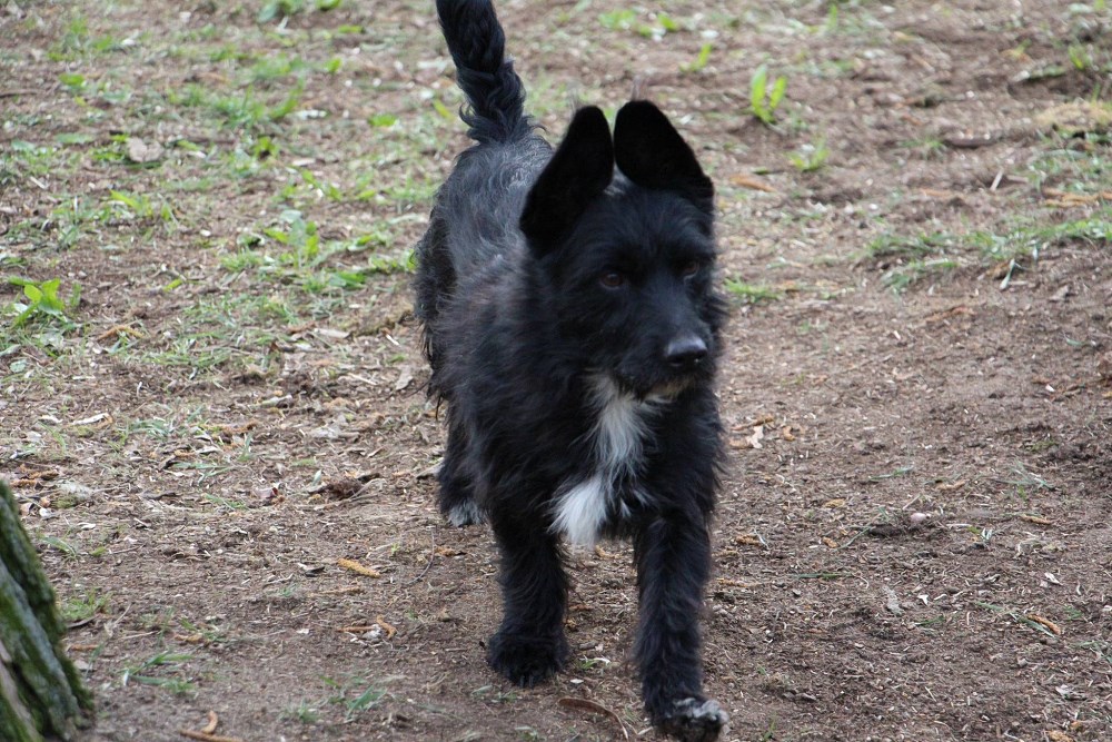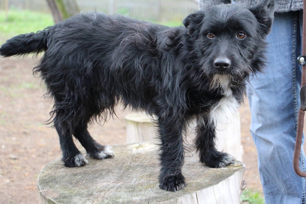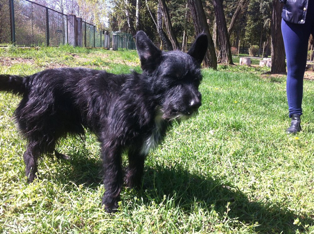 Dron, niewielki pies przywieziony przez straż miejską gminy Rogoźno, z osiedla spod Biedronki. Ma ok. 1,5 roku. Przyjacielski, pogodny. Na tylnych łapach sierść jest trochę skołtuniona.