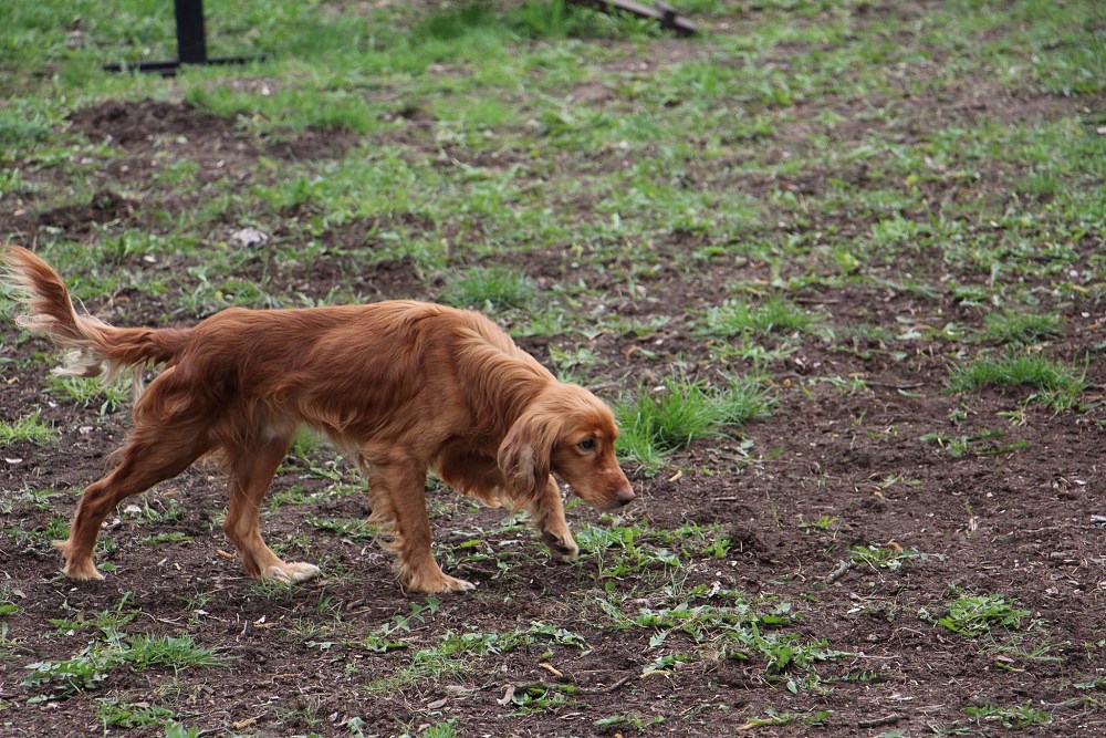 Pies z gminy Czarnków ze Sarbki, przywieziony 19 kwietnia-bardzo chudy, pełno ma dredów, ma około 5 lat. Nie ufa ludziom, ma blizny na kufie