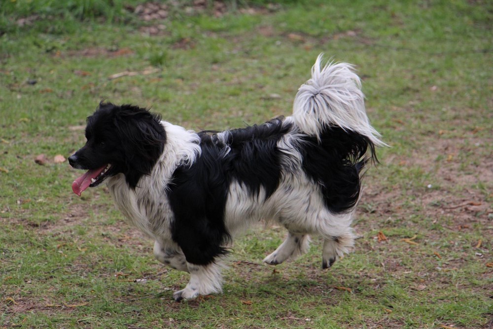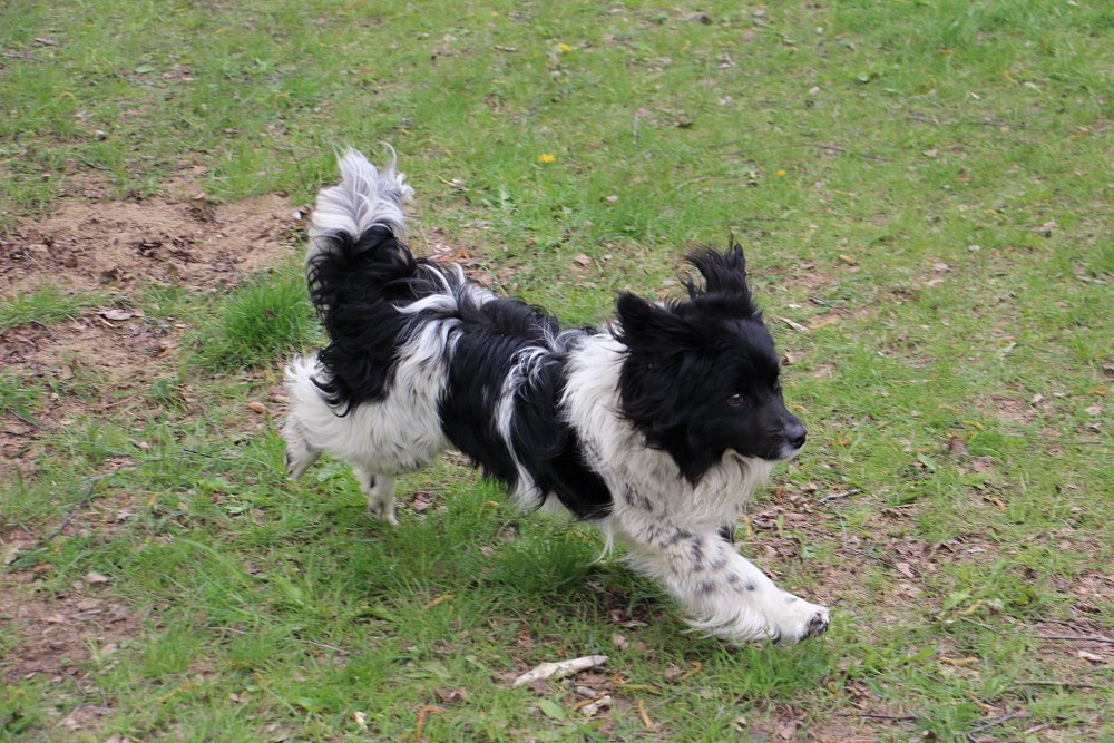 Pies z gminy Murowana Goślina, młody, energiczny, wesoły- trochę zaniedbany ( kołtuny za uszami), miał trochę kleszczy.