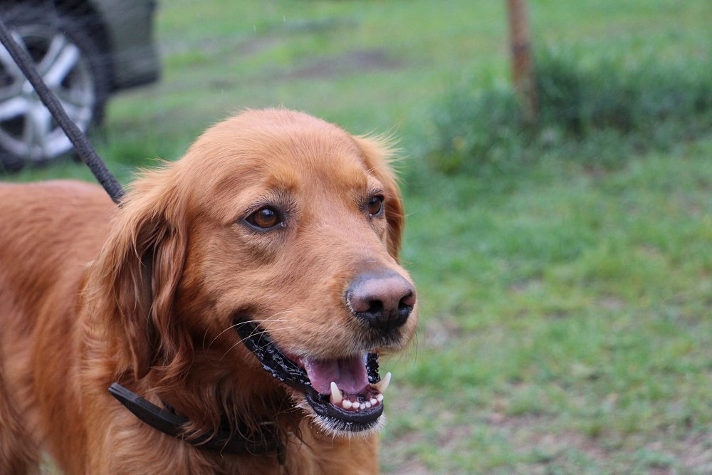 Dryl - pies przywieziony w długi majowy weekend z Budziszewka gmina Rogoźno. Wygląda jak mix goldena i setera. Pies jest młody około roku, bez czipa. Sadzi się trochę na inne samce.