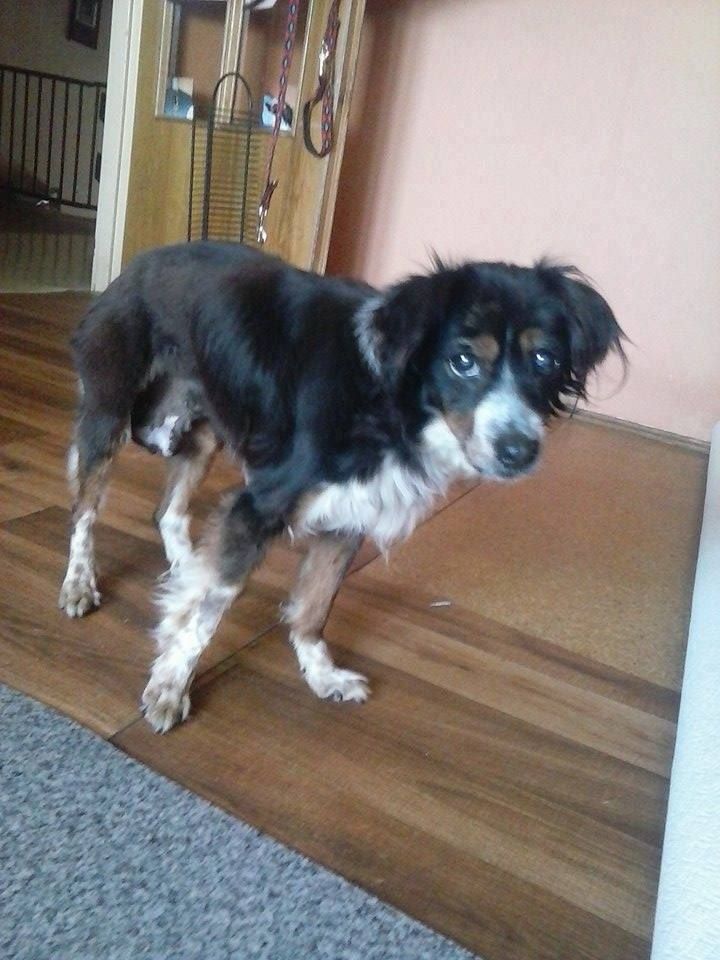 Stasia - suczka z Obornik, przywieziona w piątek 20 maja. Bardzo wychudzona z guzem w pachwinie.