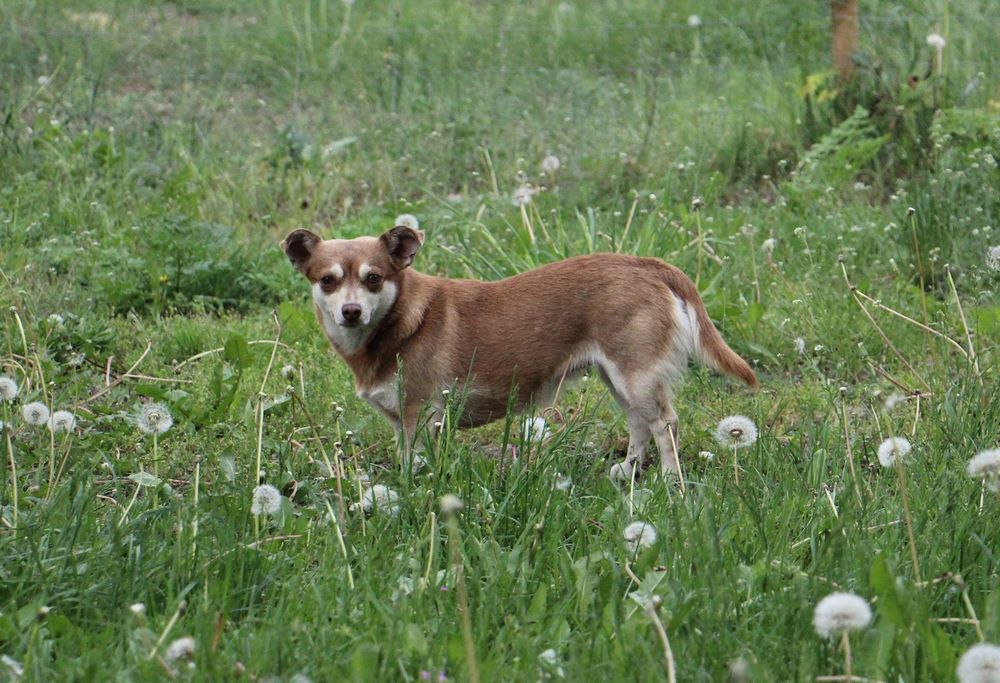 Zofija - suczka ok. 1,5 roku, przywieziona z gminy Czarnków z Zofiowa. Malutka o ciekawym umaszczeniu. Na razie nie zna smyczy. Łagodna i uległa. Zofija przyjechała ze Stachem.