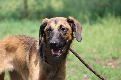 Boni-suczka ok. 10 miesięcy, przywieziona z gminy Czarnków. W Dzień Dziecka wędrowała za dziećmi do szkoły w Jędrzejewie.