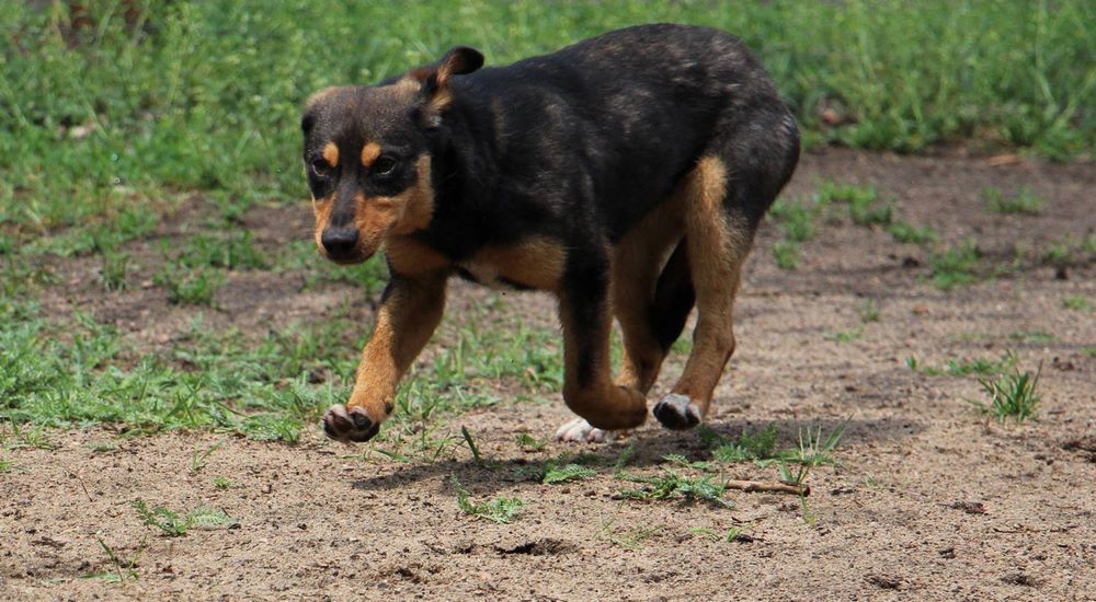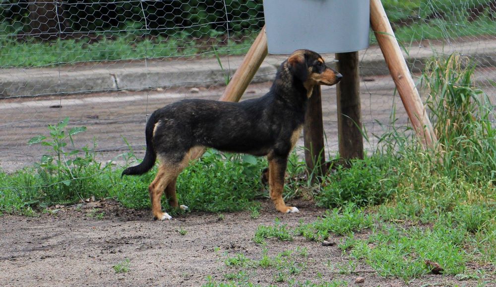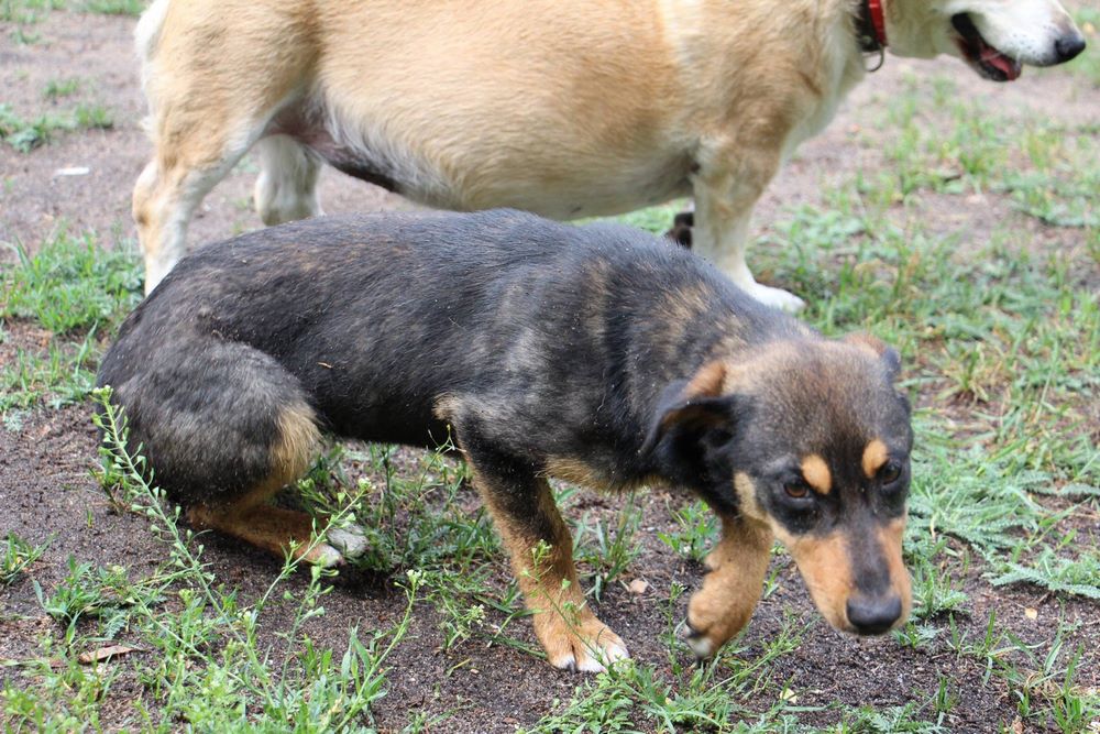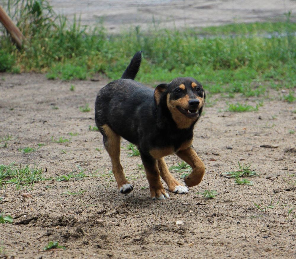 Patka - suczka, ok. 10 miesięcy, z gminy Oborniki, z ul. Gołaszyńskiej. Przywieziona w poniedziałek 30 maja. Średniej wielkości. Początkowo bardzo uległa, po kilku chwilach niezwykle energiczna i wesoła.