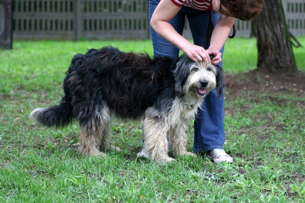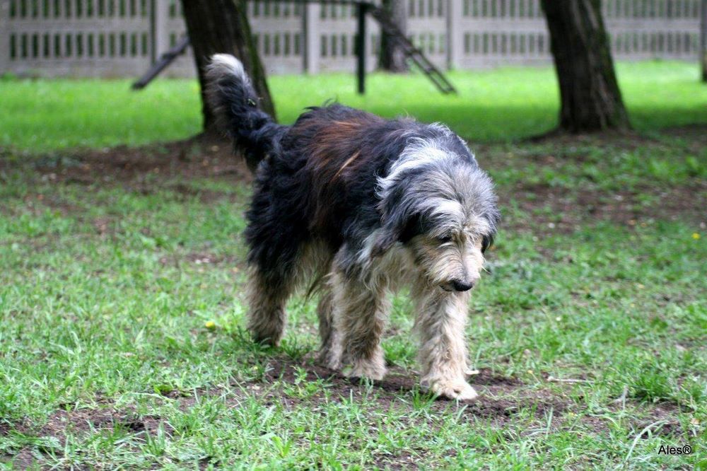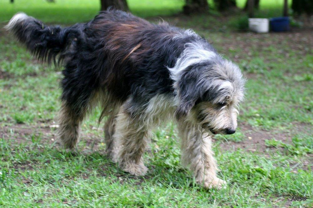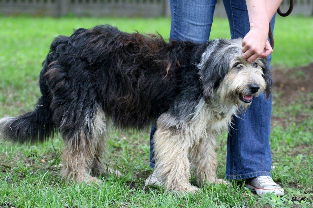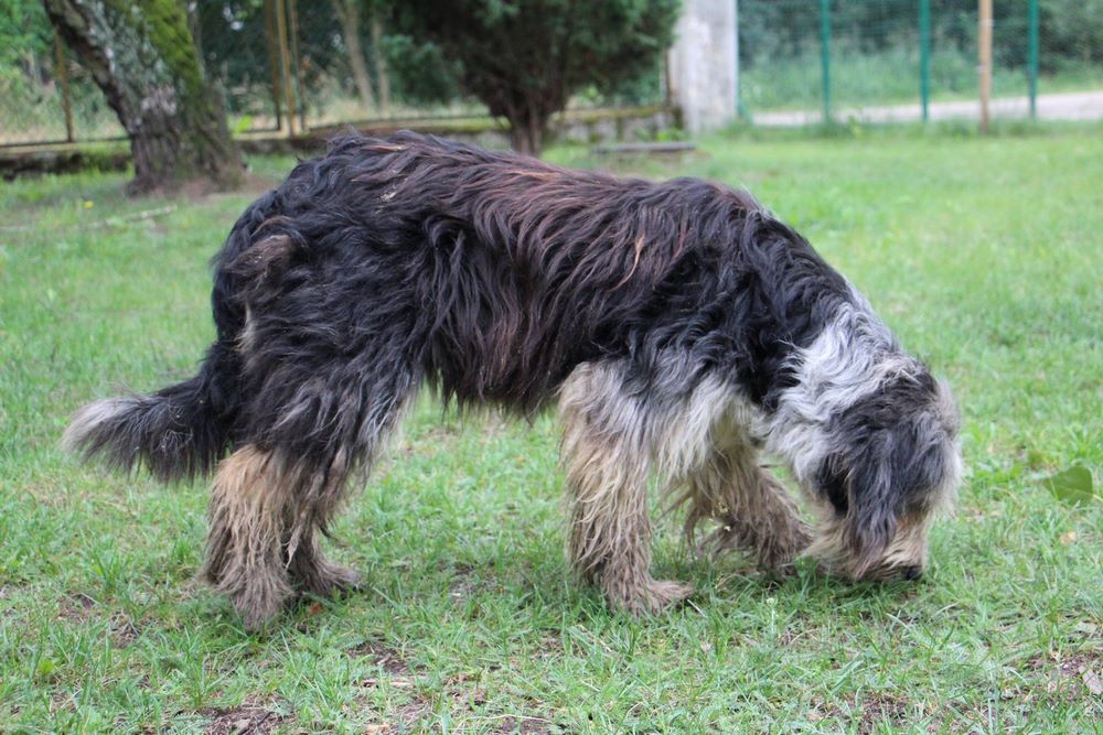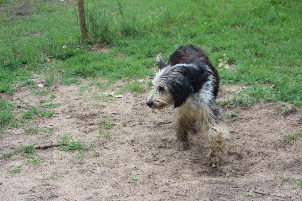 Suczka z Obornik, potwornie zaniedbana ma około 7 lat, na smyczy chodzi niechętnie. Miała na sobie mnóstwo kleszczy, bardzo skołtunioną sierść. Na razie jest osłabiona i bardzo spokojna. Lubi być głaskana, dopomina się tego :)