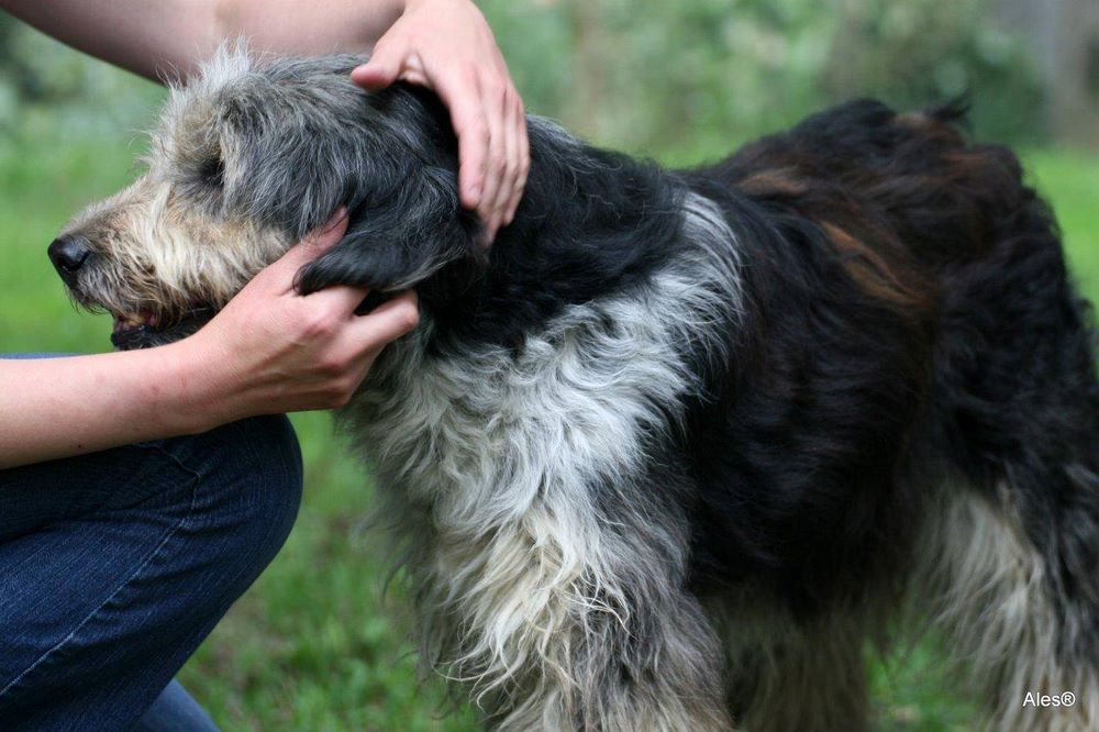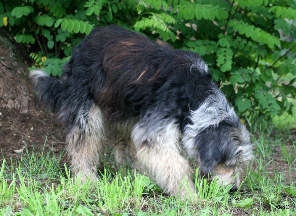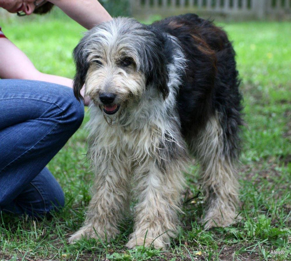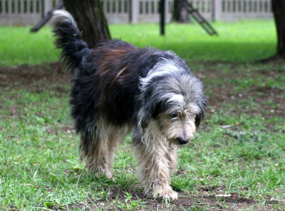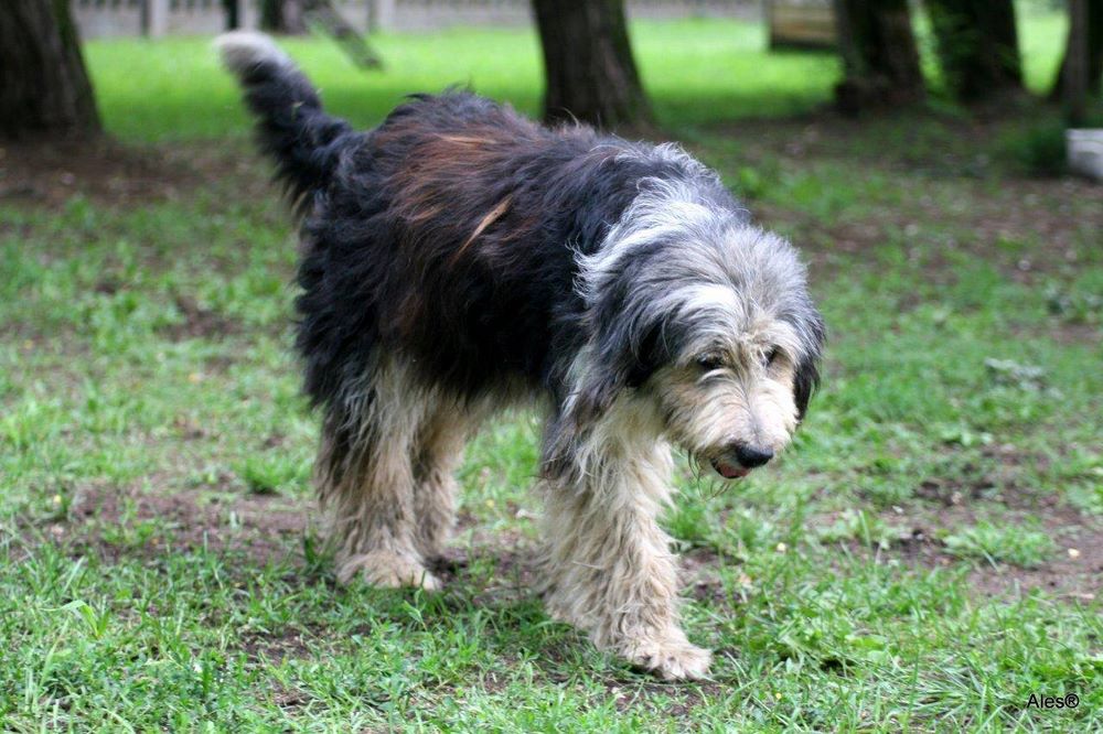 Suczka z Obornik, potwornie zaniedbana ma około 7 lat, na smyczy chodzi niechętnie. Miała na sobie mnóstwo kleszczy, bardzo skołtunioną sierść. Na razie jest osłabiona i bardzo spokojna. Lubi być głaskana, dopomina się tego :)