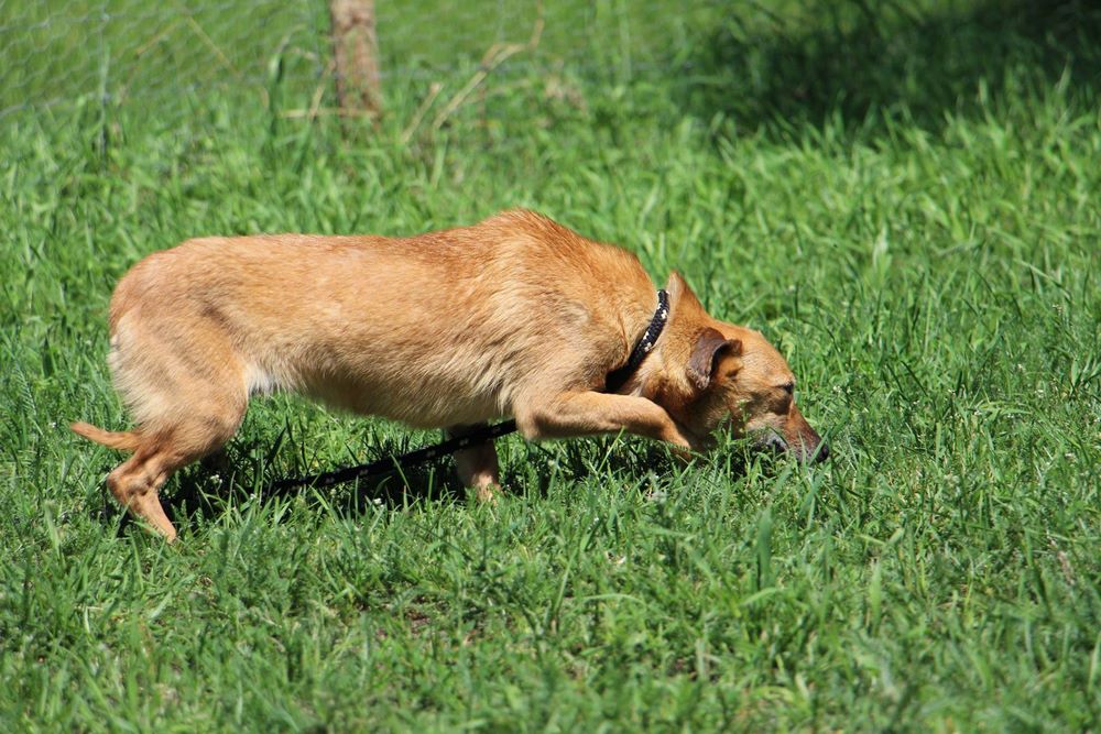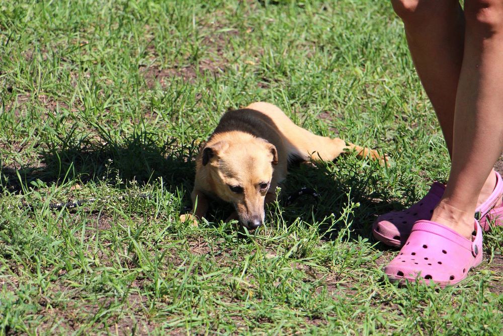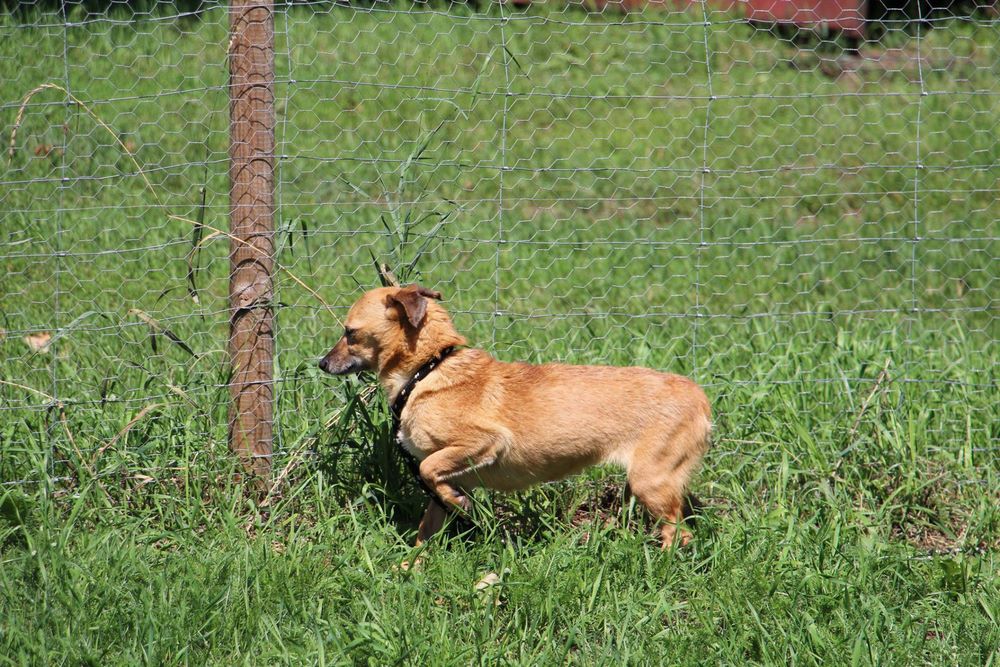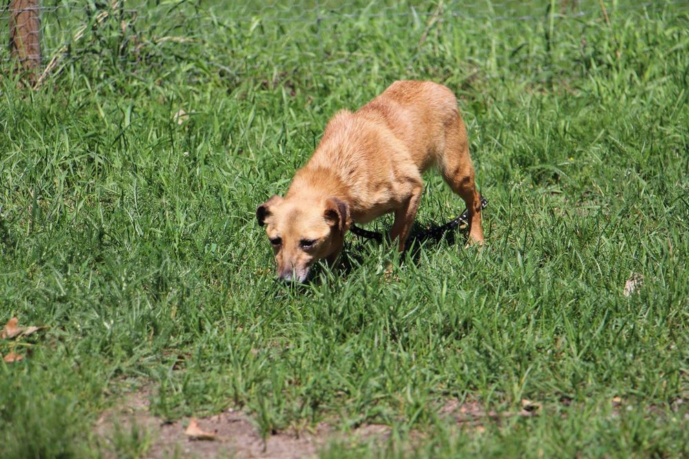 Suczka z gminy Ryczywół, odłowiona 22.06 w Ludomkach. Jest malutka, wystraszona, boi się ludzi. Jest starszą suczką ok. 7 lat- ma dość mocno zniszczone zęby.