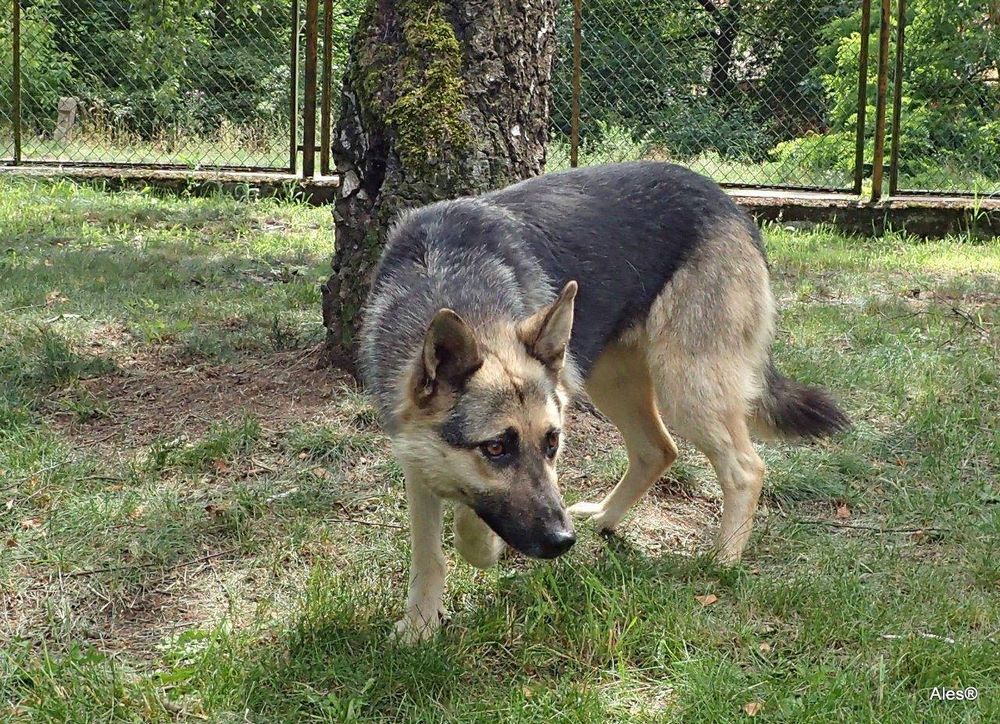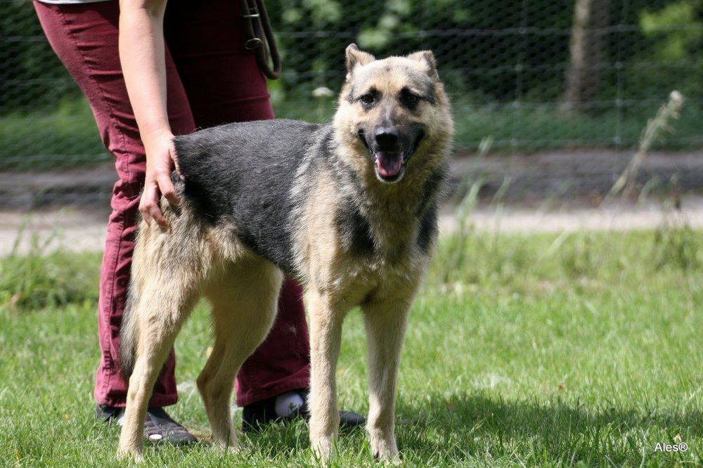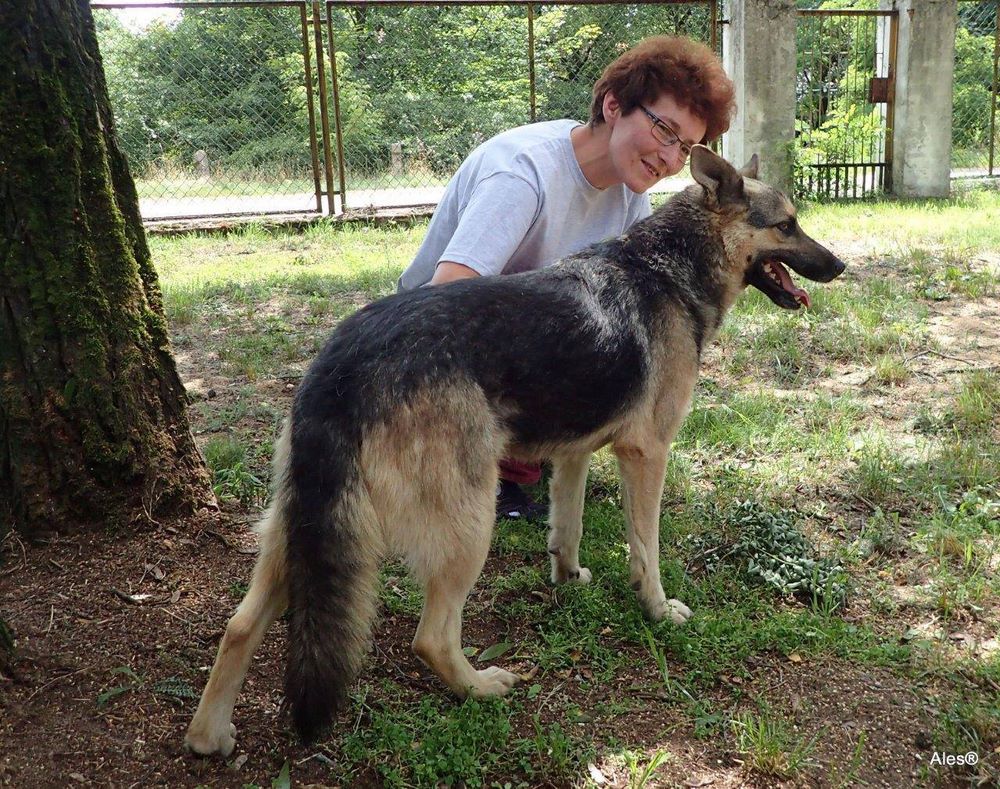 Suka z gminy Tarnowo Podgórne z działek w Sierosławcu odłowiona w 2012 roku, przywieziona do Azorka w lipcu 2016. Jest ok. 6 letnia, łagodna, spokojna, nie zna zbytnio kontaktów z człowiekiem.