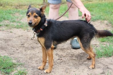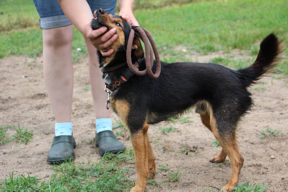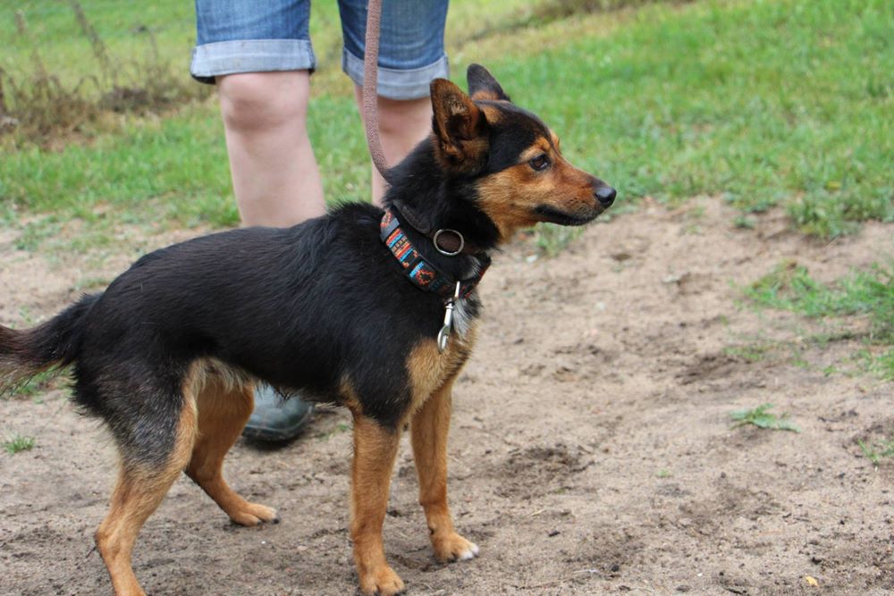 Pies z Tarnowa Podgórnego. Ma około 2-3 lat, od 2 dni pilnował suczki w cieczce. Pies łagodny, smyczy nie zna, ma na sobie obrożę zszywaną ręcznie z karabińczykiem.