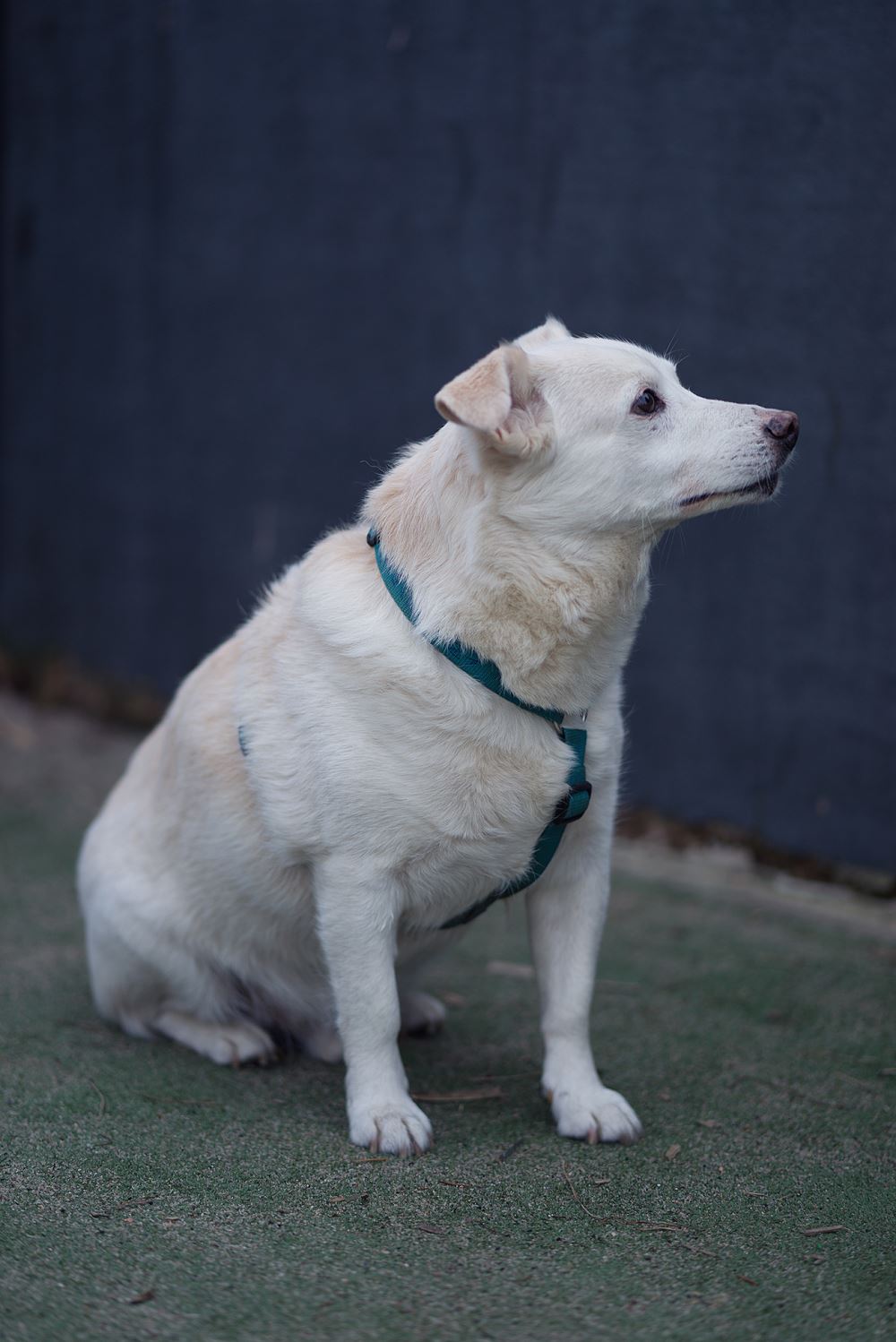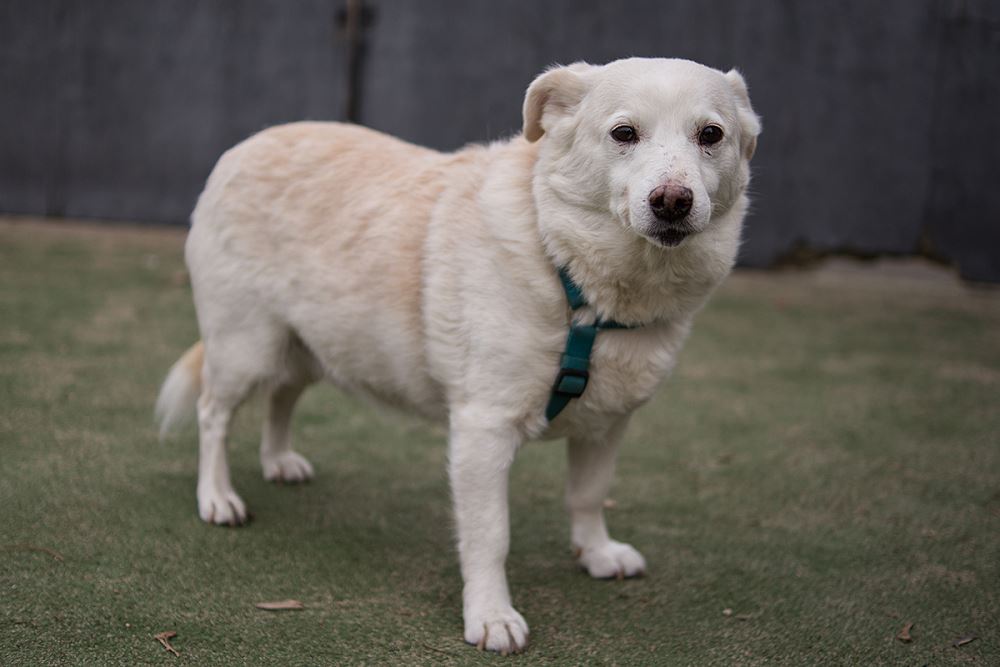 Korek - pies w wieku ok. 4-5 lat przyjechał ze schroniska w Jędrzejewie, z gminy Tarnowo Podgórne. Boi się ludzi, nie zna smyczy. Powoli go oswajamy. Nie wchodzi w konflikty z psami.