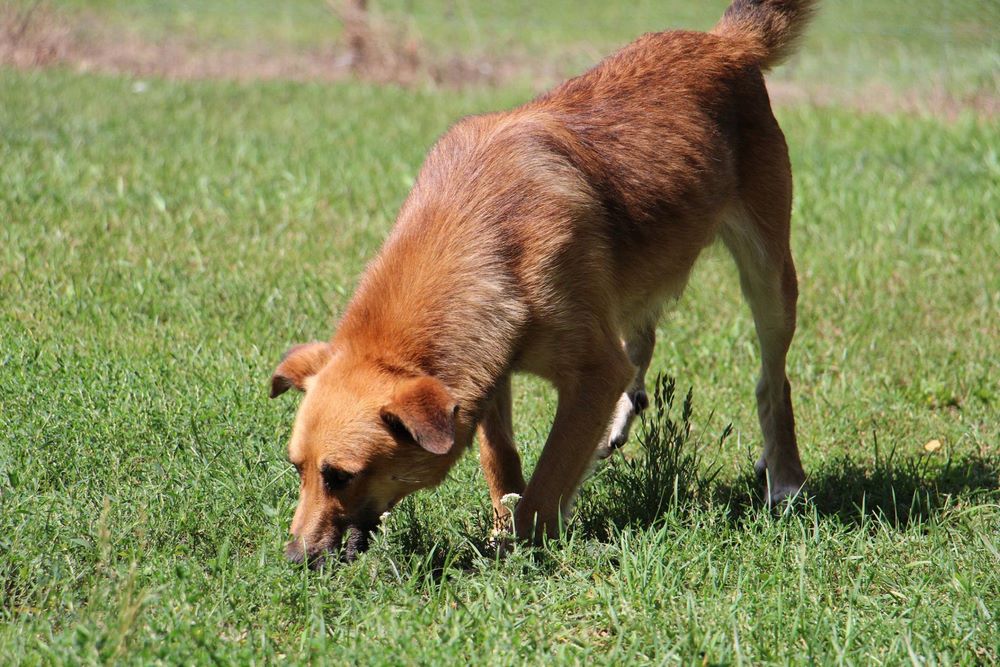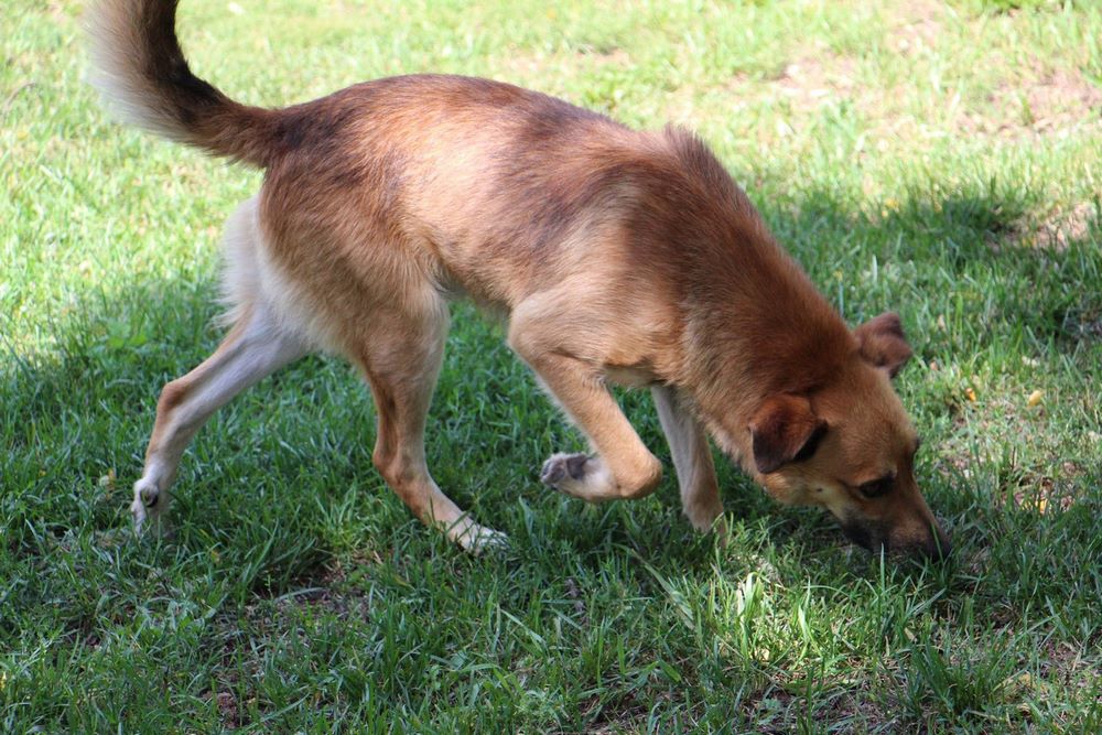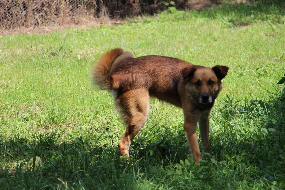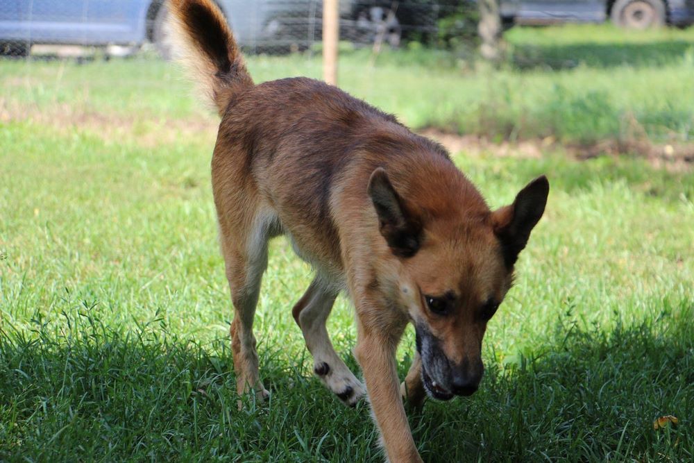 Pies z gminy Czarnków przywieziony 5.08 ze wsi Śmieszkowo. Pies od tygodnia siedział w jednym miejscu i był dokarmiany przez gospodarzy.