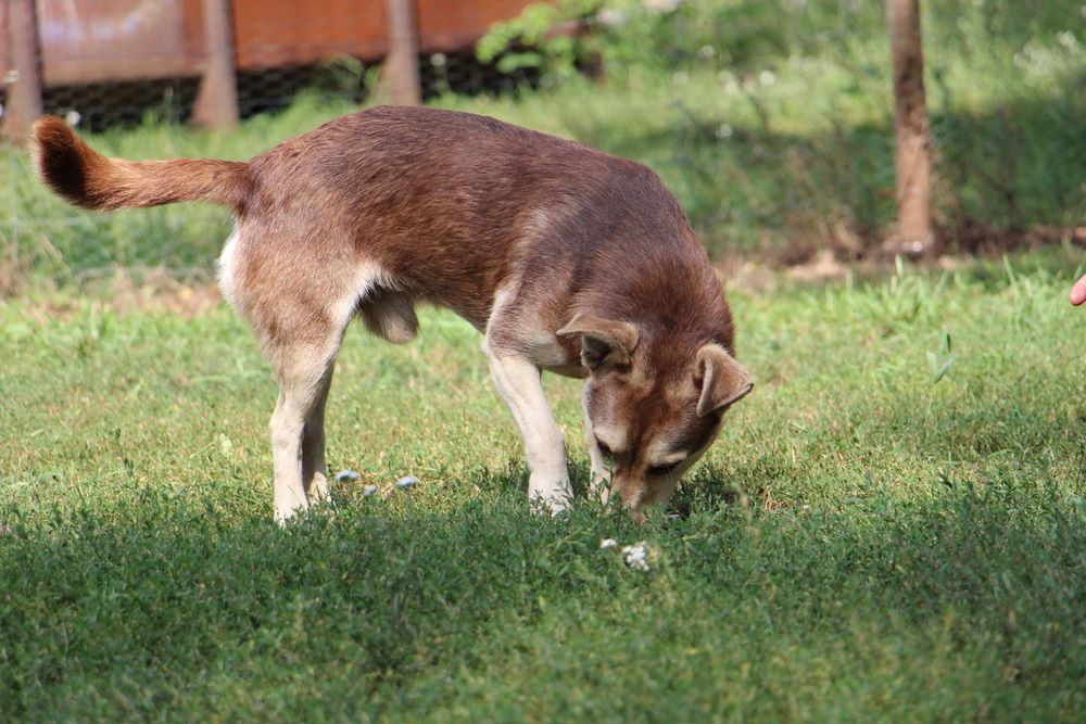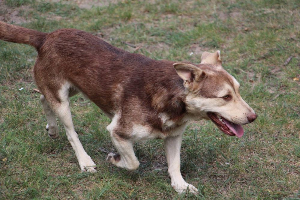 Pies z gminy Czarnków przywieziony 19 sierpnia 2016. Pies jest młody, ok 2 lat. Psiak dogaduje się z innymi psami, zachowuje czystość w domu. Remi jest pełen energii, lubi zabawy z piłką. Psiak umie chodzi na smyczy, nie ciągnie.