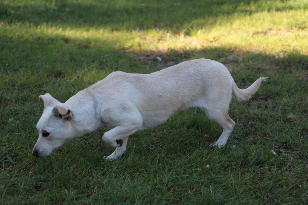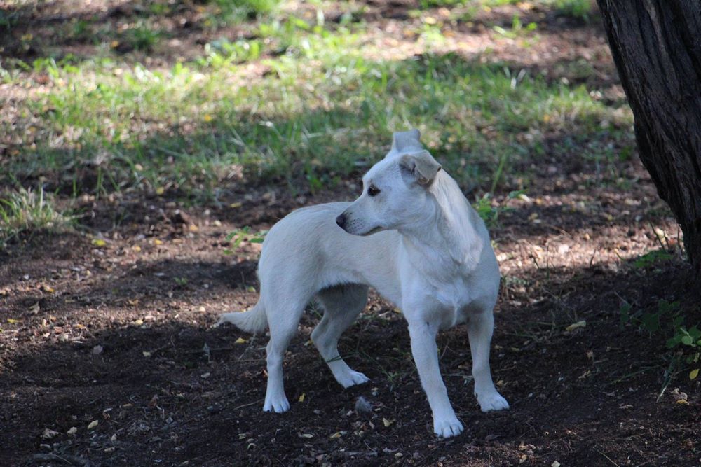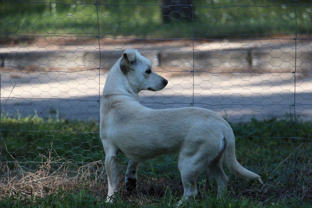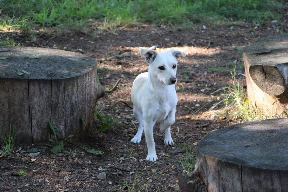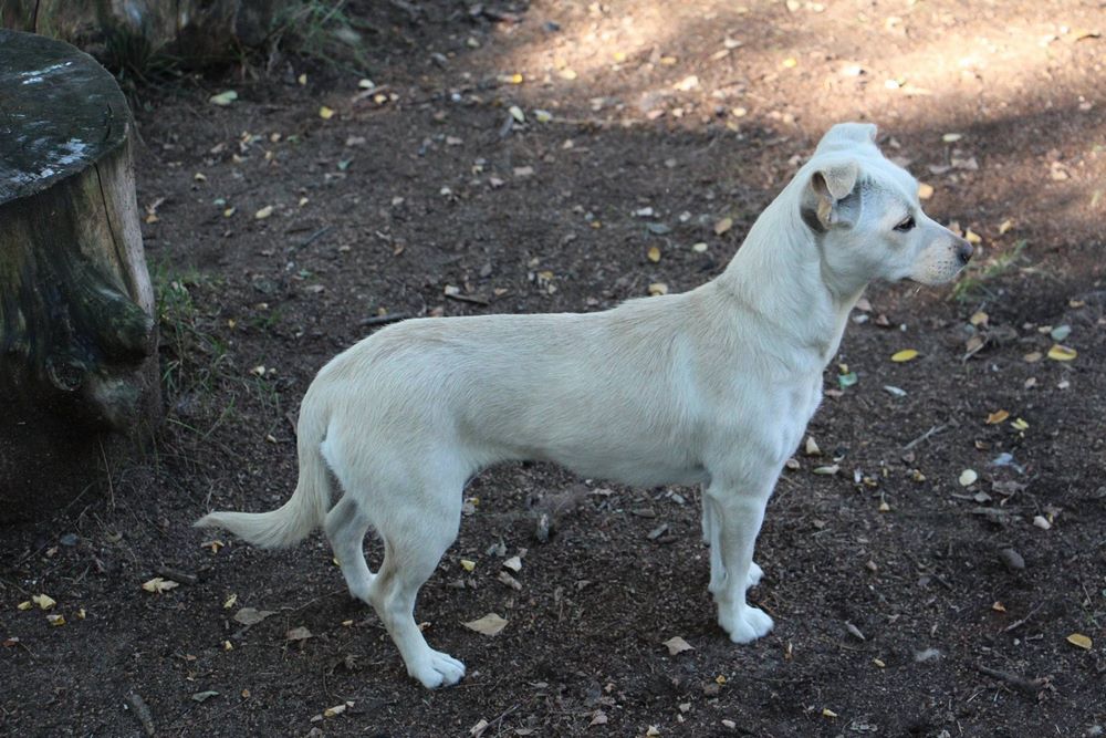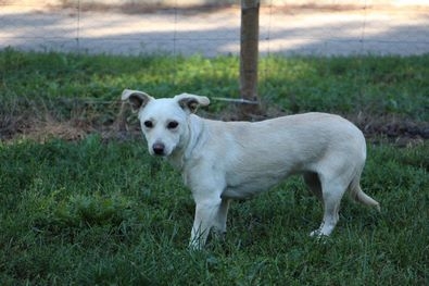 Suczka około 10 miesięczna z okolic Ocieszyna wczoraj była lekko potrącona przez auto. Była obita ale po lekach jest dobrze. Boi się obcych osób - ma wytartą sierść na szyi od uwięzi.