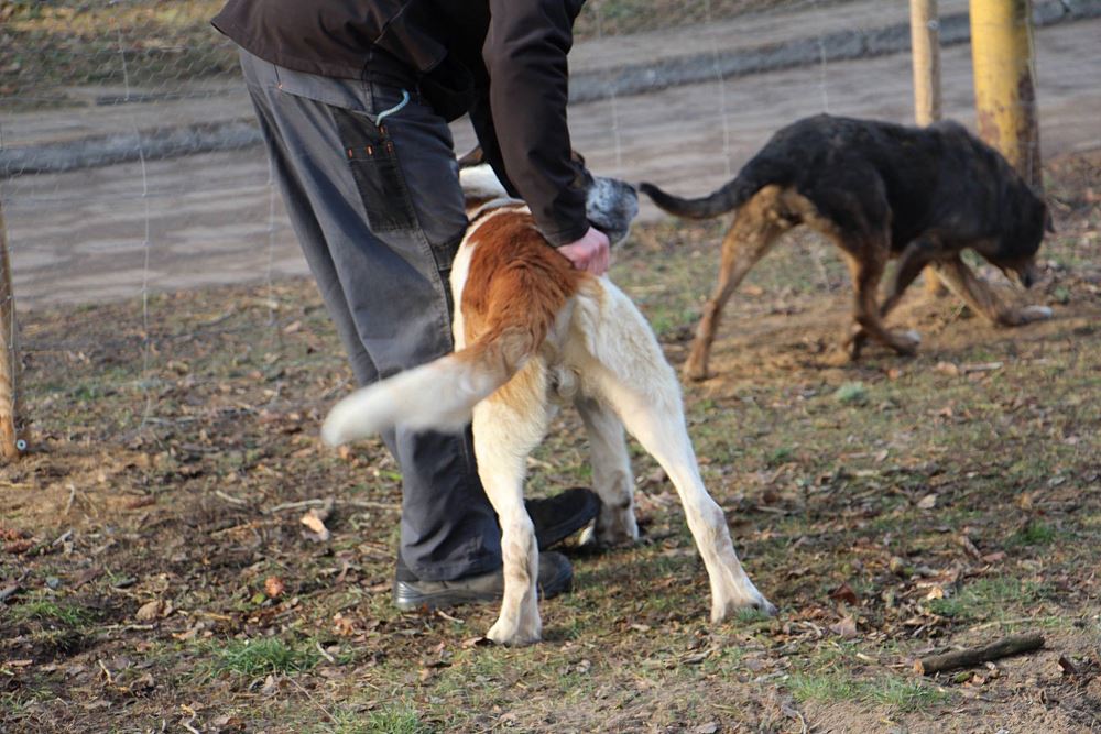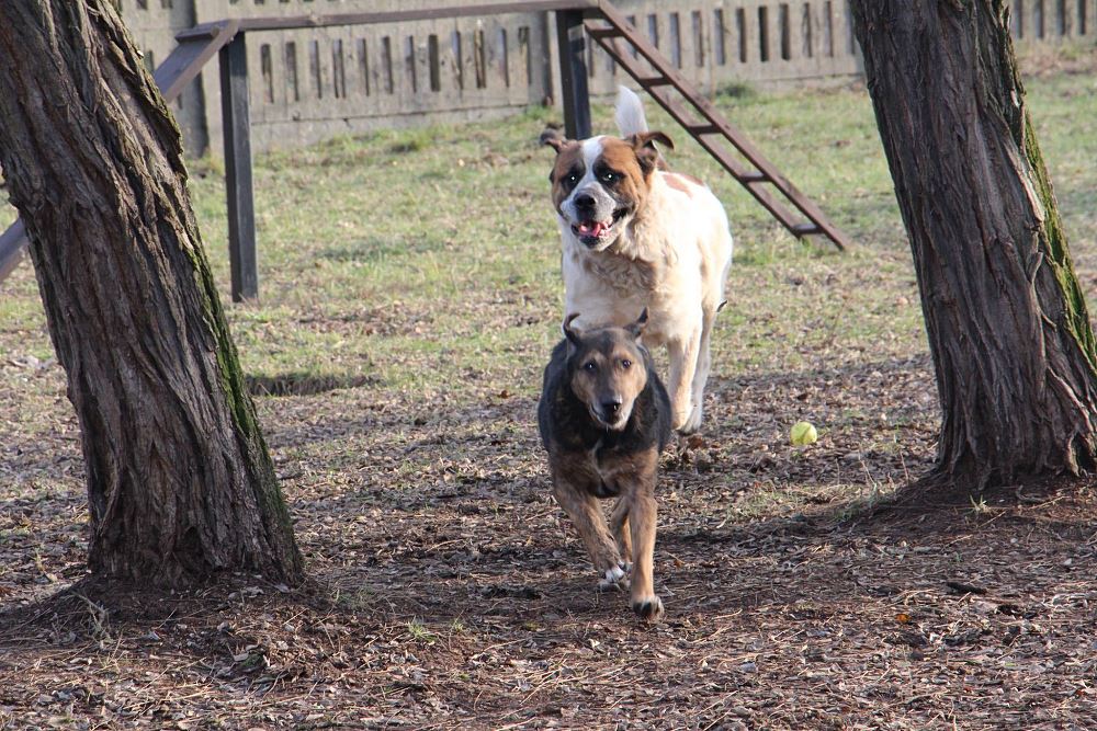 Pies około 4 letni pozostawiony po rozpadzie firmy w Obornikach ze starszą suczką, którą widać na zdjęciach. Gdyby nie dobre serce ludzi pracujących na tym samym terenie pewnie padły by z głodu. Ma taki charakter o jakim można marzyć;)) Zakochać się w nim można na dzień dobry- jest związany ze suczką, ale ona ma około 10-12 lat. Są po szczepieniach i zabiegach pielęgnacyjnych.