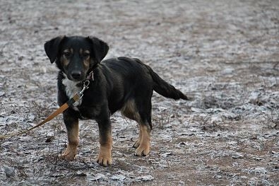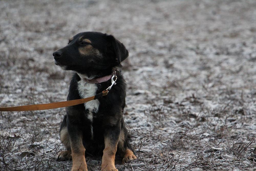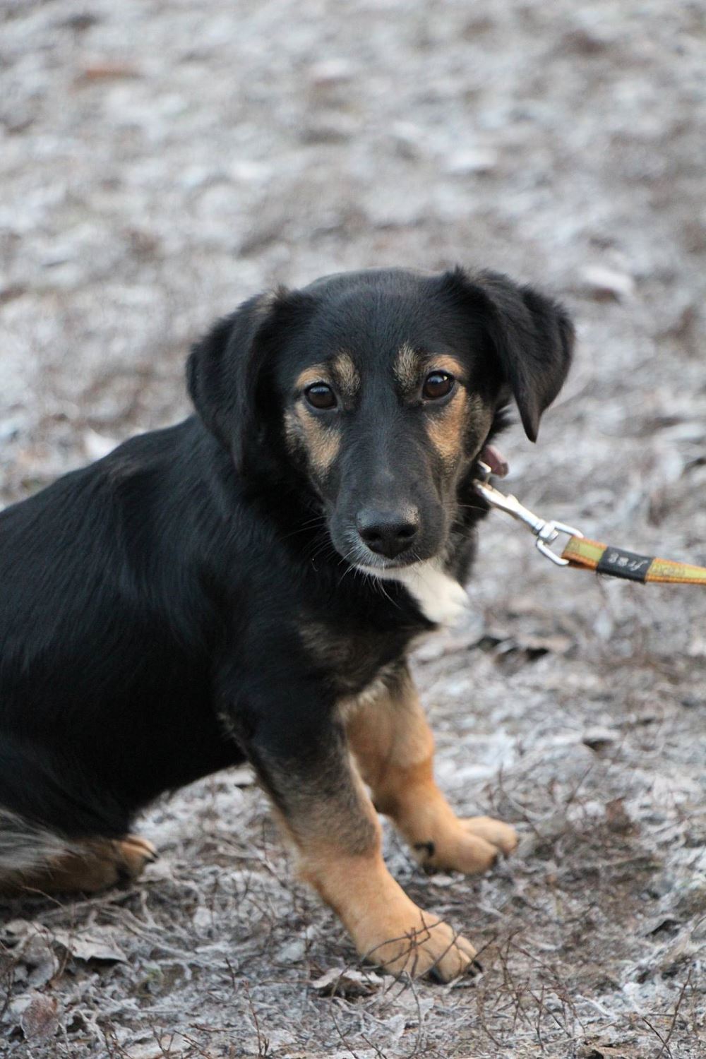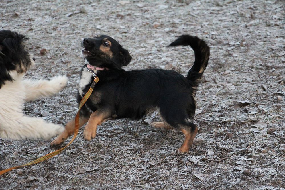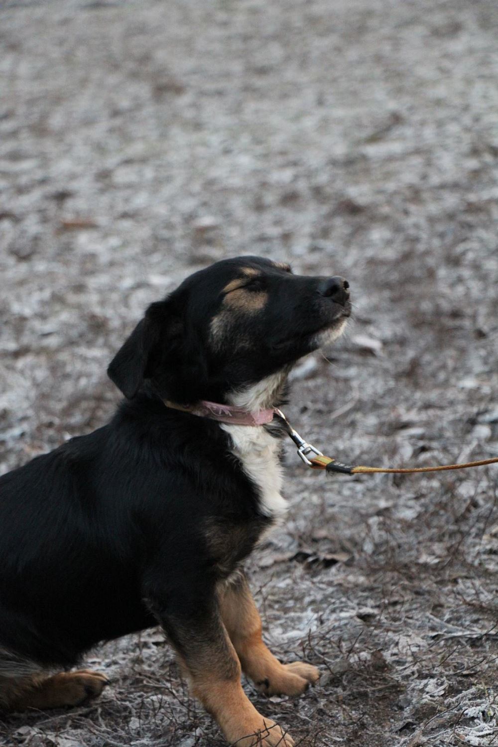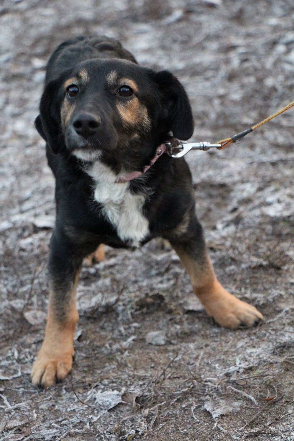 Suczka około roczna, przywieziona wczoraj z Objezierza. Energiczna, skora do zabawy, ale i do rządzenia w czasie jej trwania. Komu nawiała młodociana?
