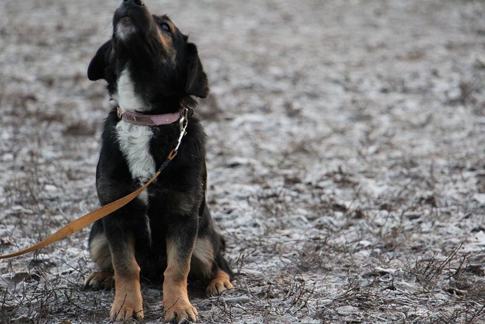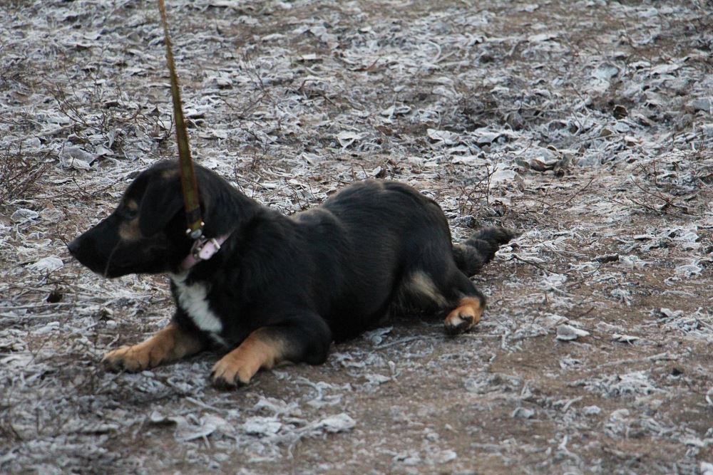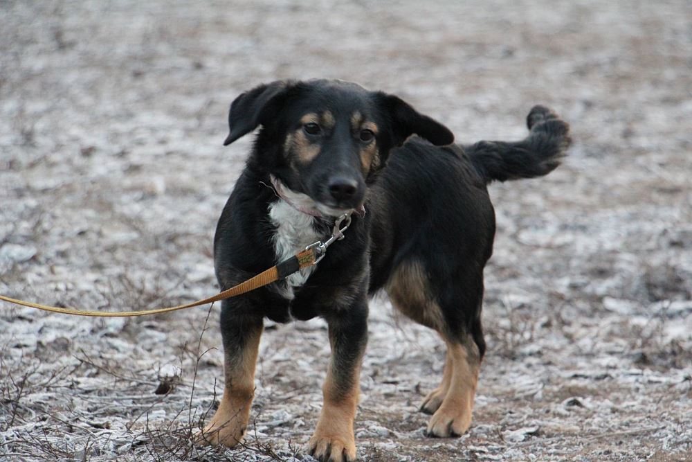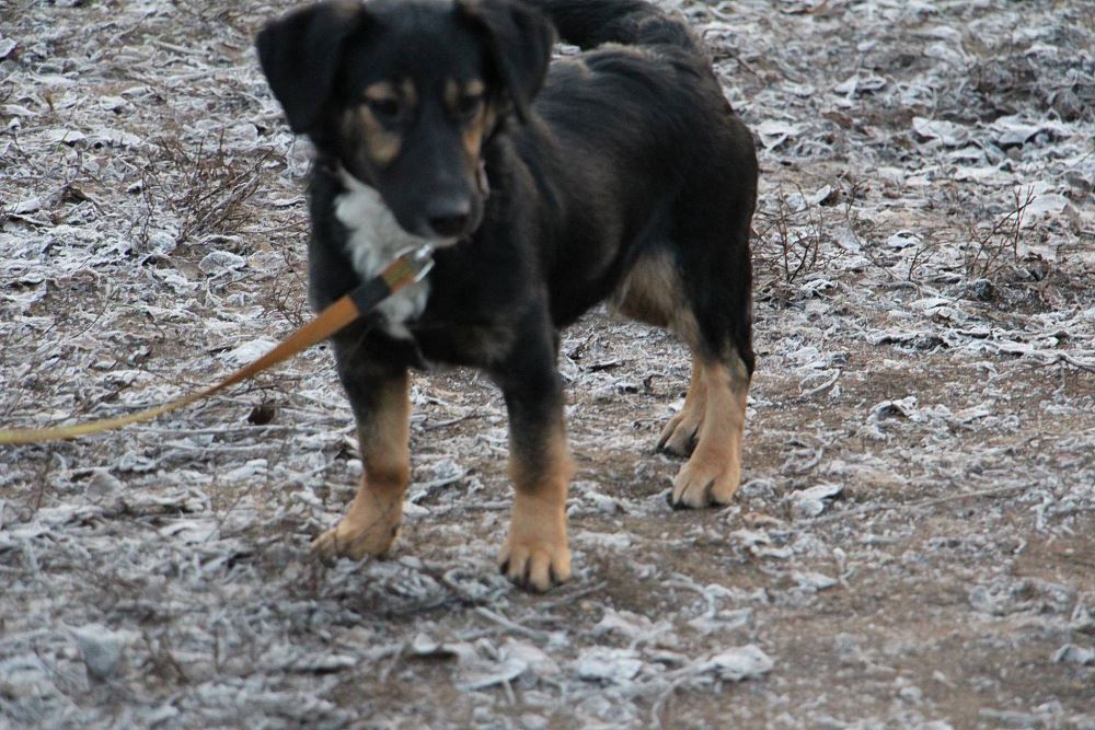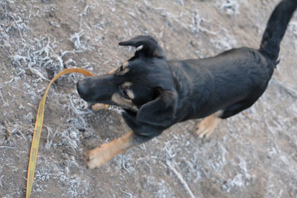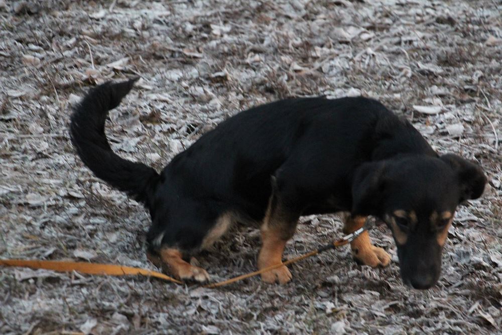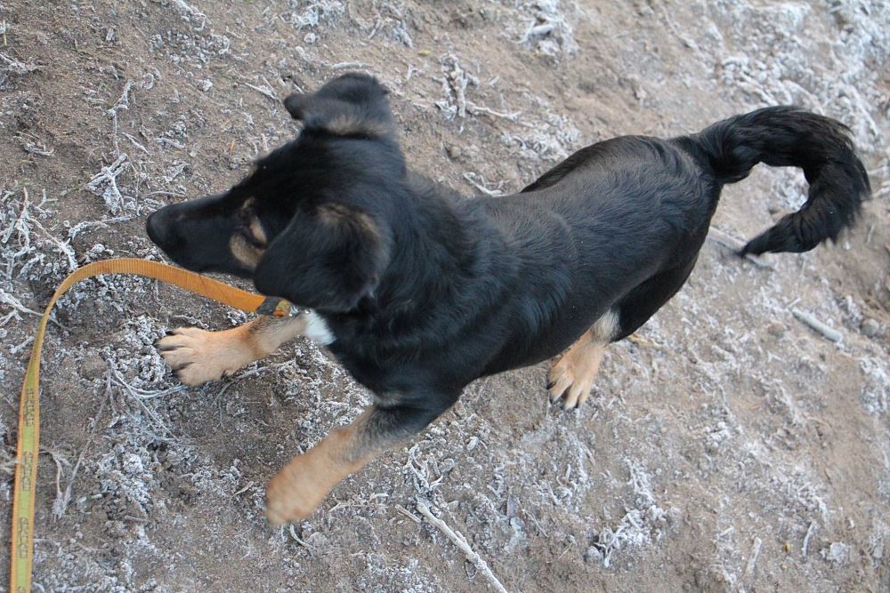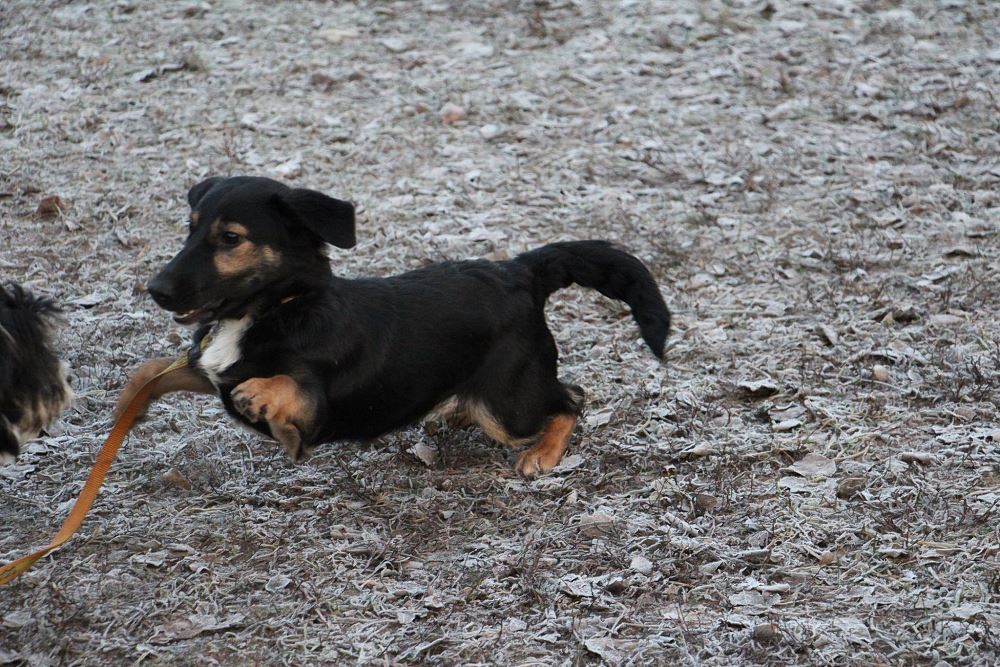 Suczka około roczna, przywieziona wczoraj z Objezierza. Energiczna, skora do zabawy, ale i do rządzenia w czasie jej trwania. Komu nawiała młodociana?