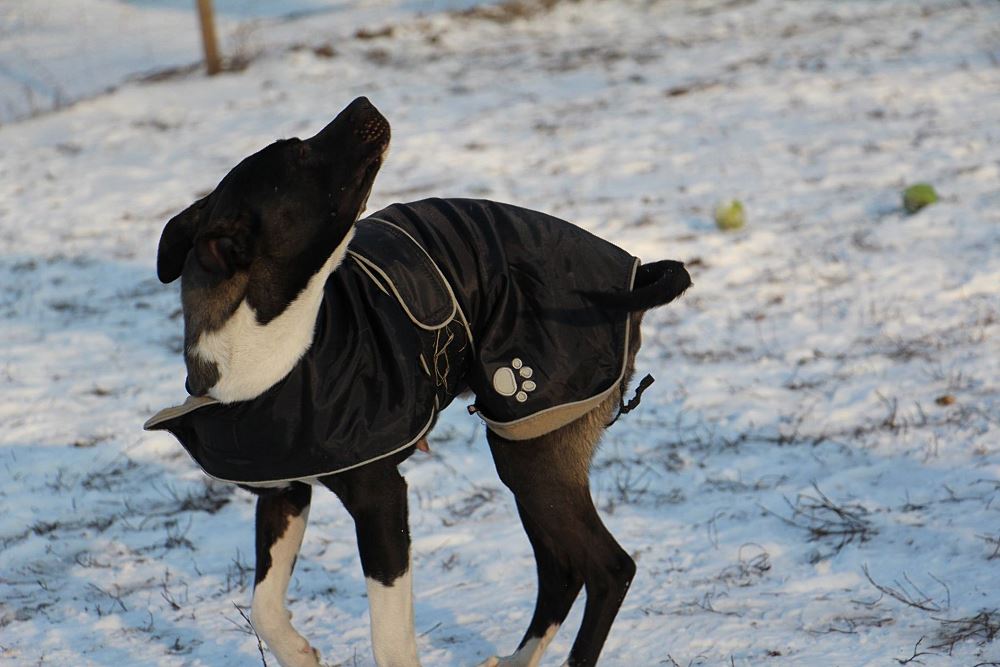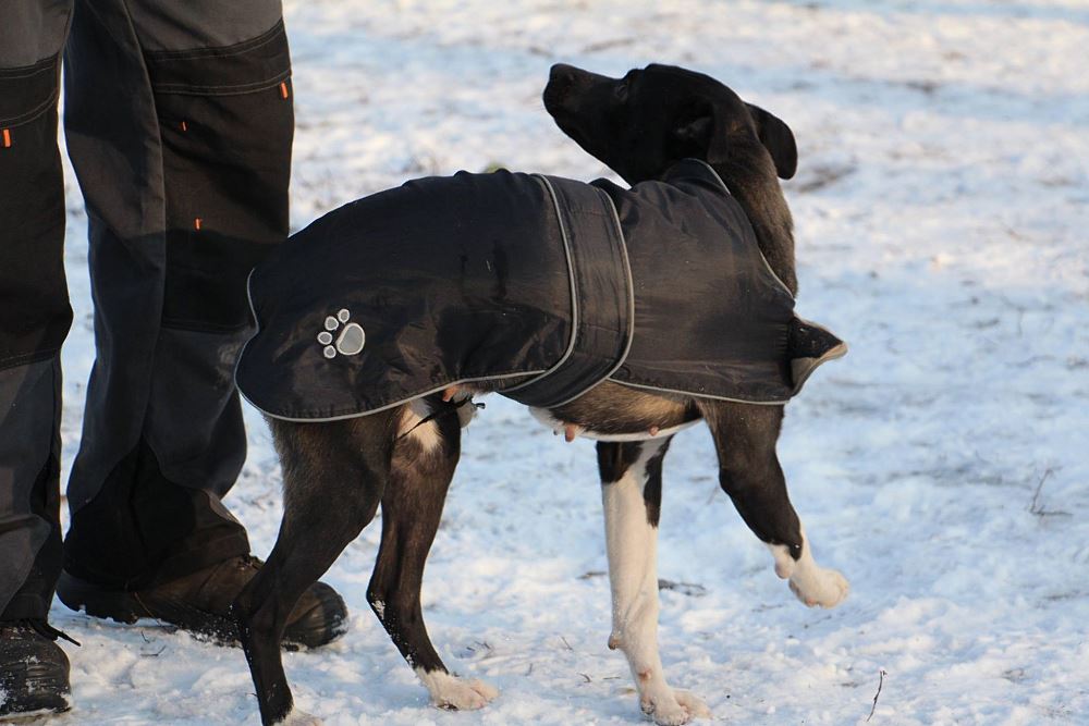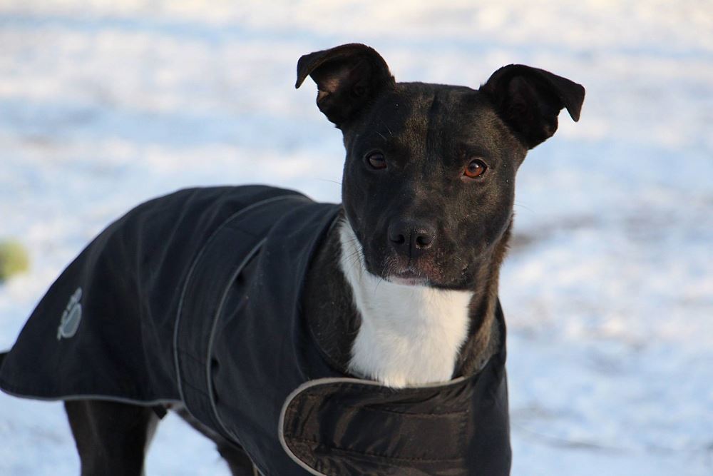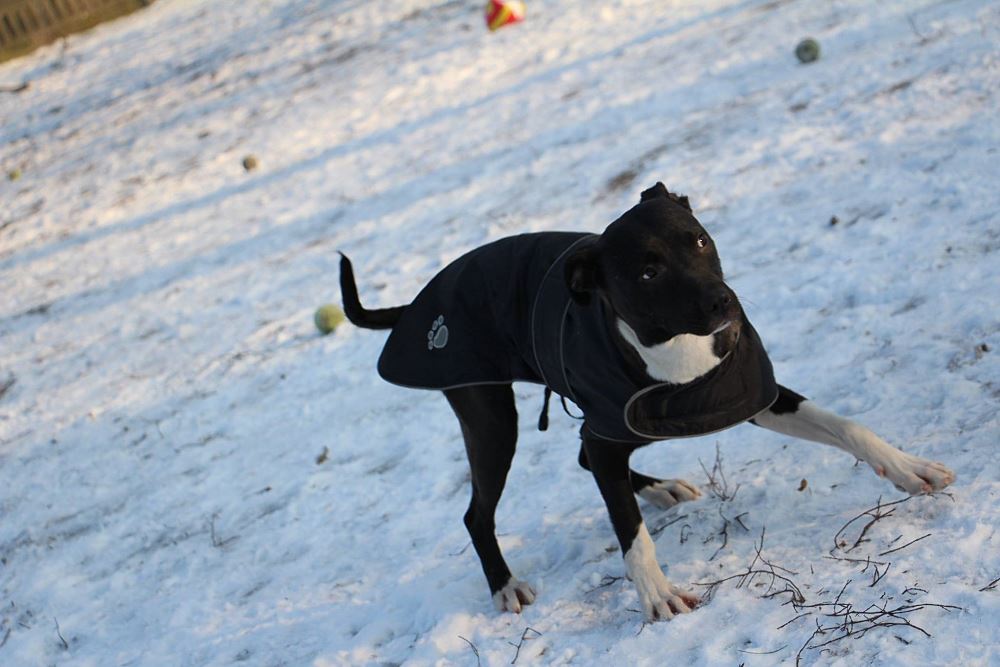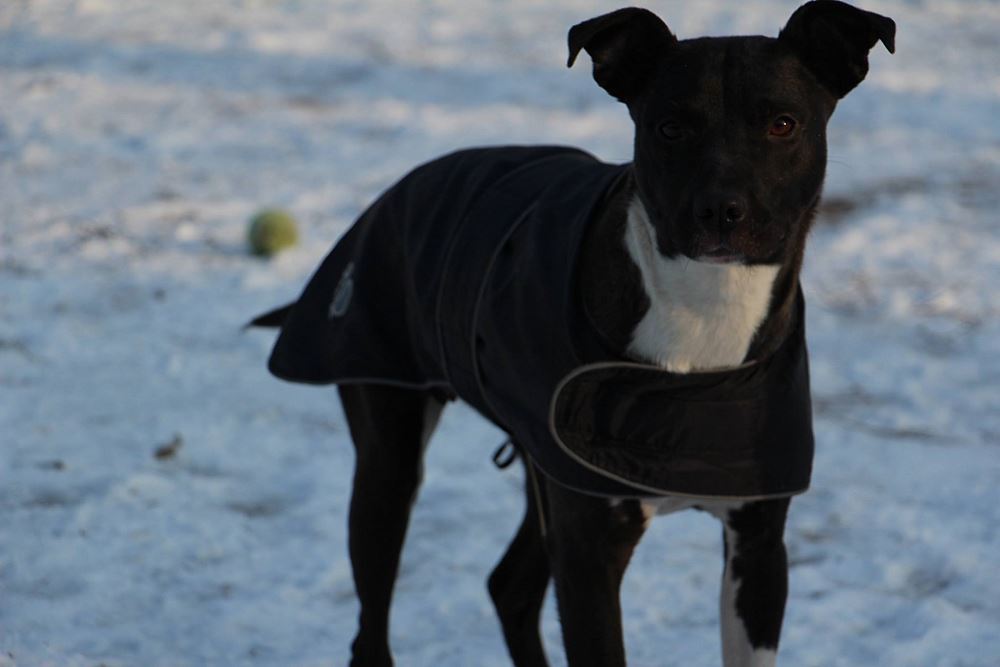 Suczka z gminy Czarnków, przywieziona 9 stycznia z miejscowości Kuźnica Czarnkowska po której biegała od miesiąca, miała młode. Ma ok 1,5 roku. Bardzo marznie.