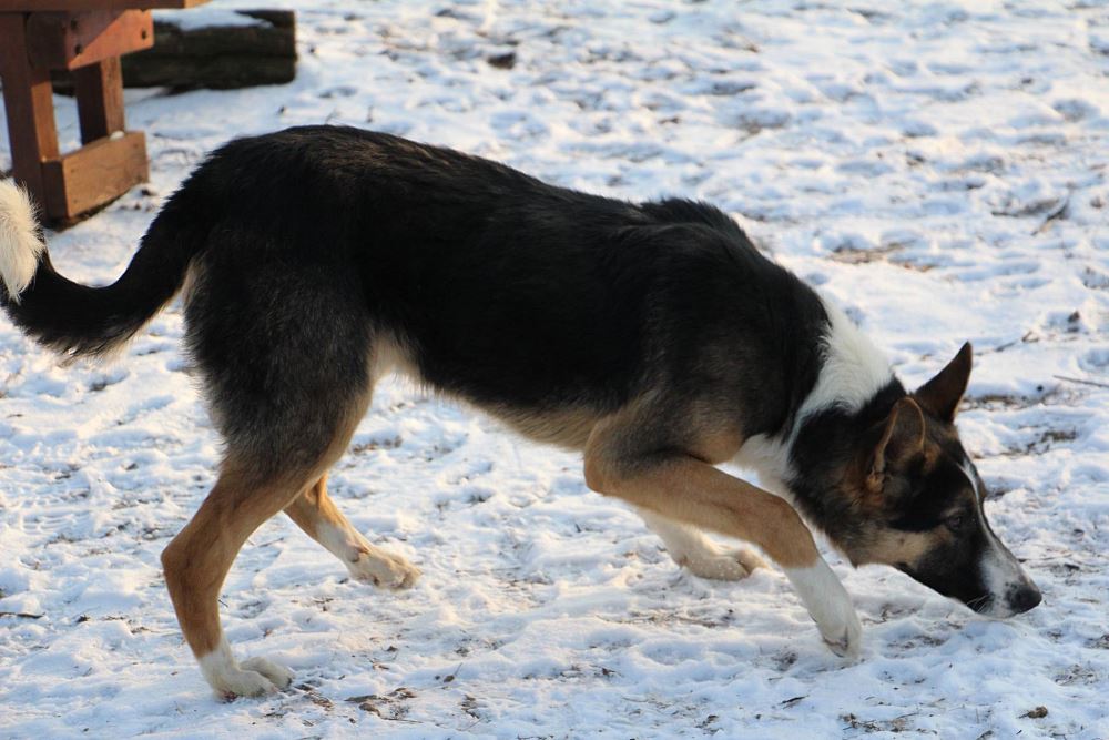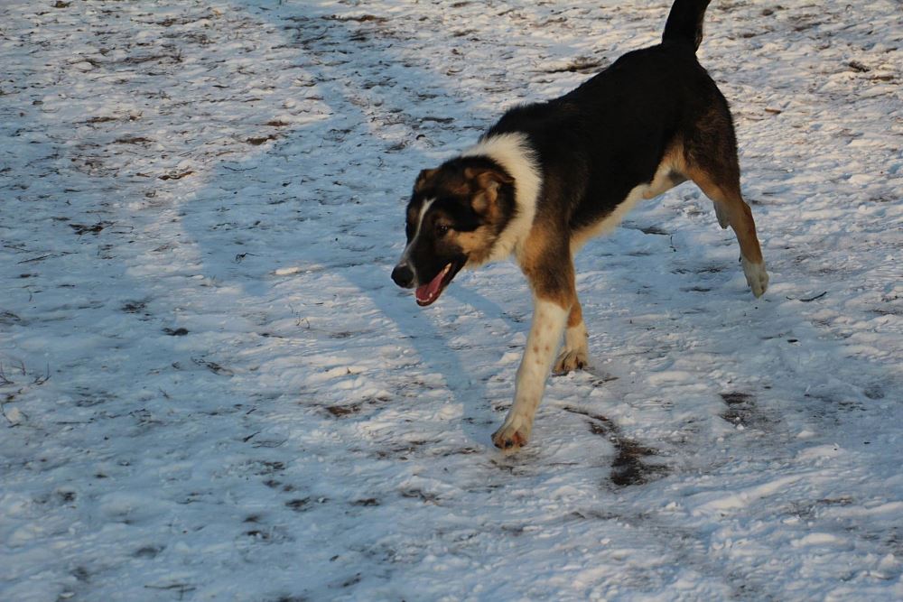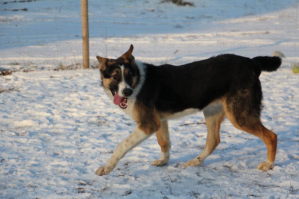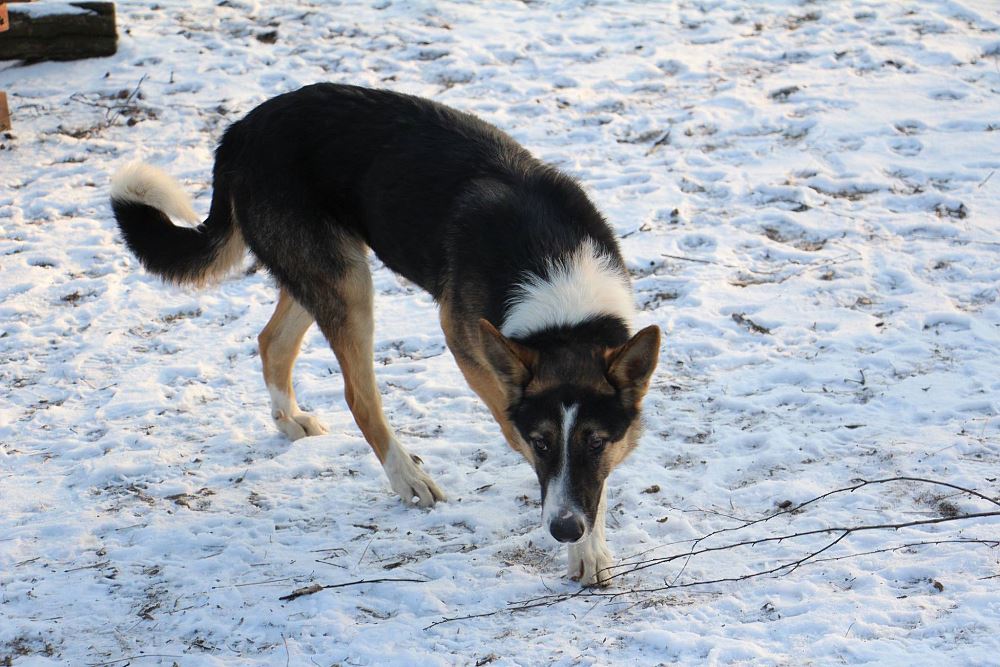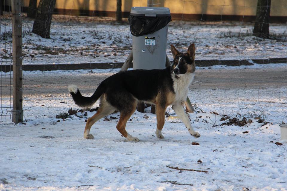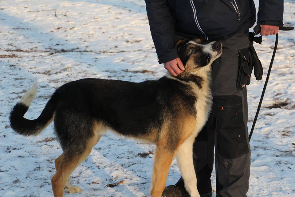 Pies odłowiony 9 stycznia w Kuźnicy Czarnkowskiej, jest młody ma około 6-7 miesięcy, wesoły, łagodny, jest już duży a wiadomo, że zmężnieje jeszcze. wygląda jak mieszaniec owczarka niemieckiego i collie.