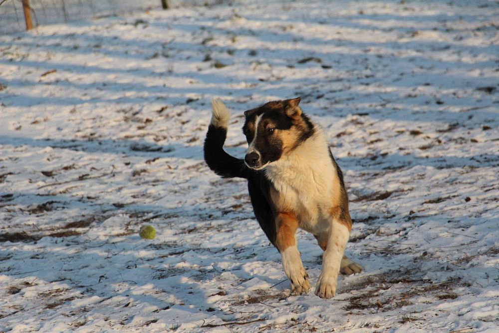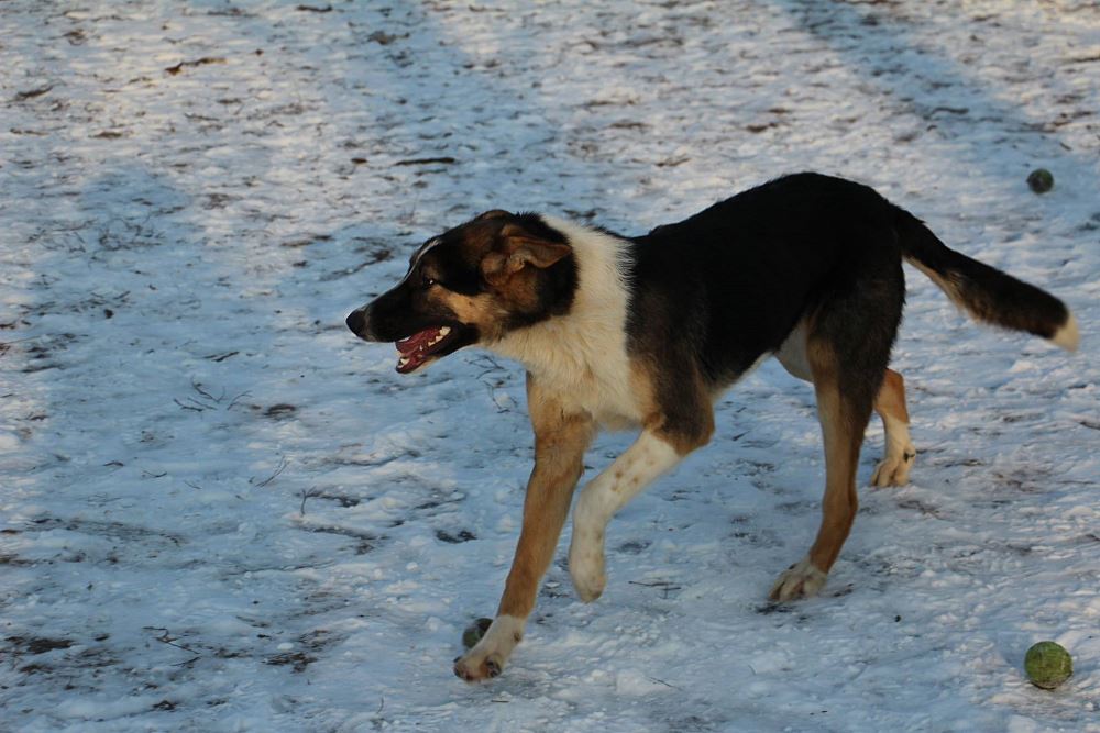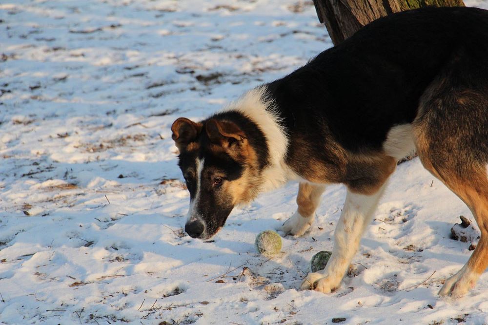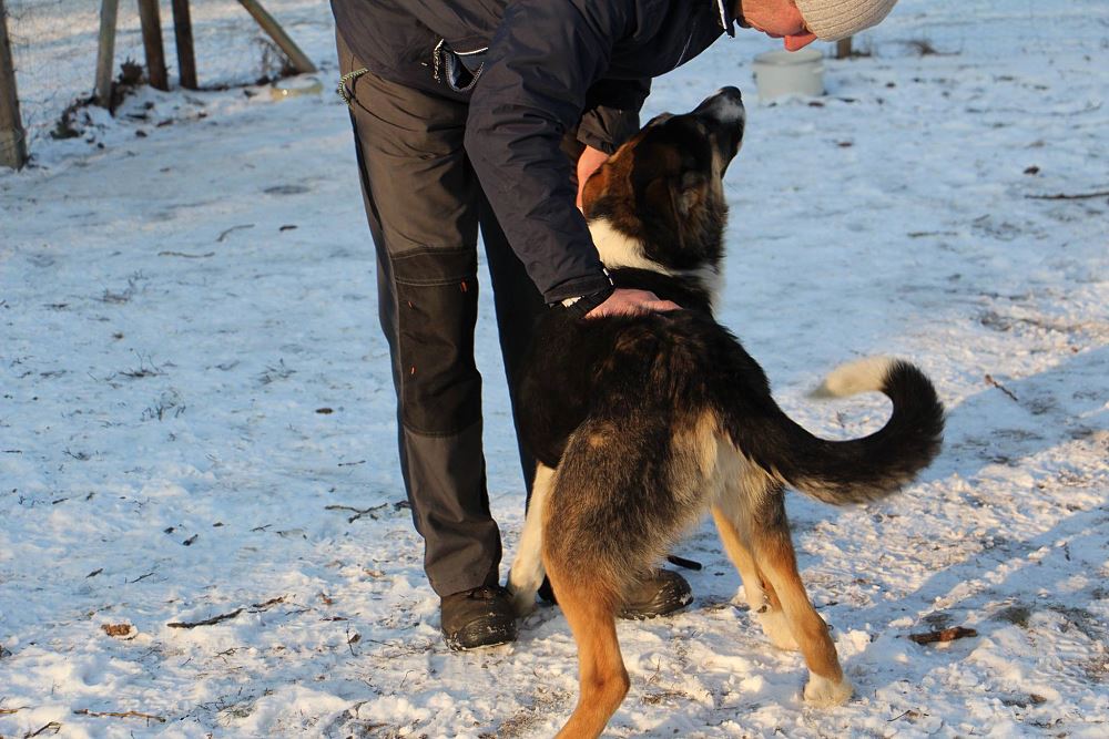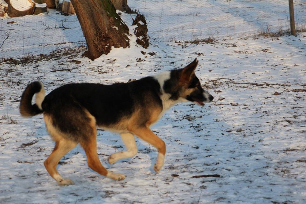 Pies odłowiony 9 stycznia w Kuźnicy Czarnkowskiej, jest młody ma około 6-7 miesięcy, wesoły, łagodny, jest już duży a wiadomo, że zmężnieje jeszcze. wygląda jak mieszaniec owczarka niemieckiego i collie.
