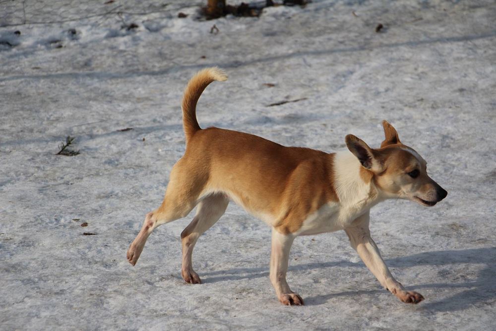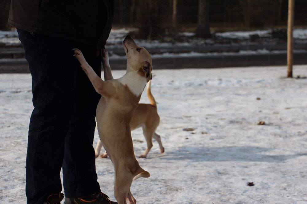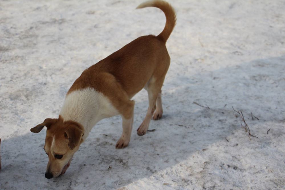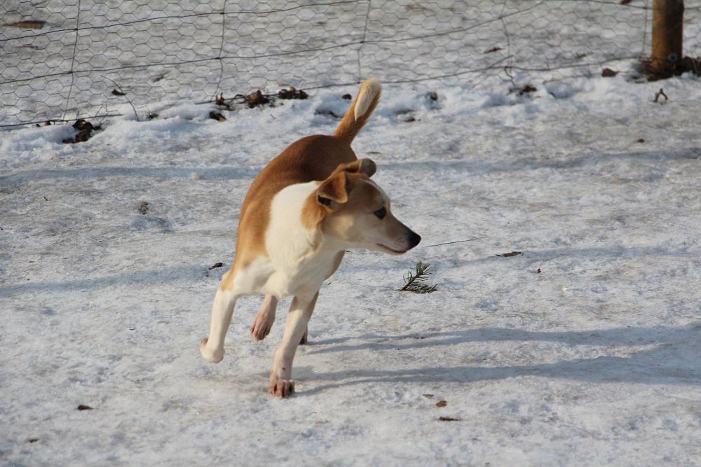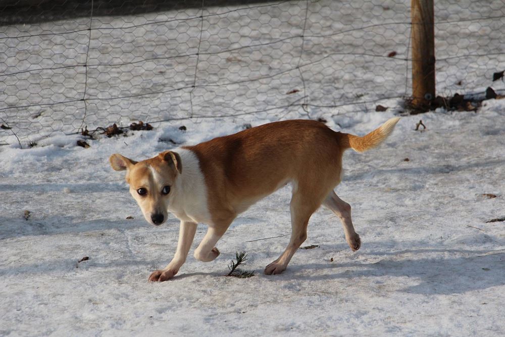 Suczka z gminy Tarnowo Podgórne. Przywieziona z mamą i siostrą 27 stycznia . Jest suczką w przybliżeniu roczną- wymaga nauki chodzenia na smyczy. Fla jest bardzo skoczna. Ma większe zaufanie do człowieka niż siostra.