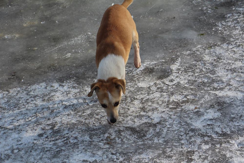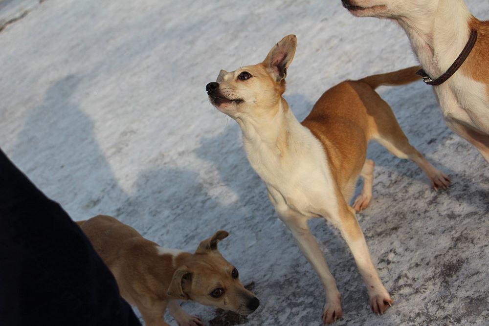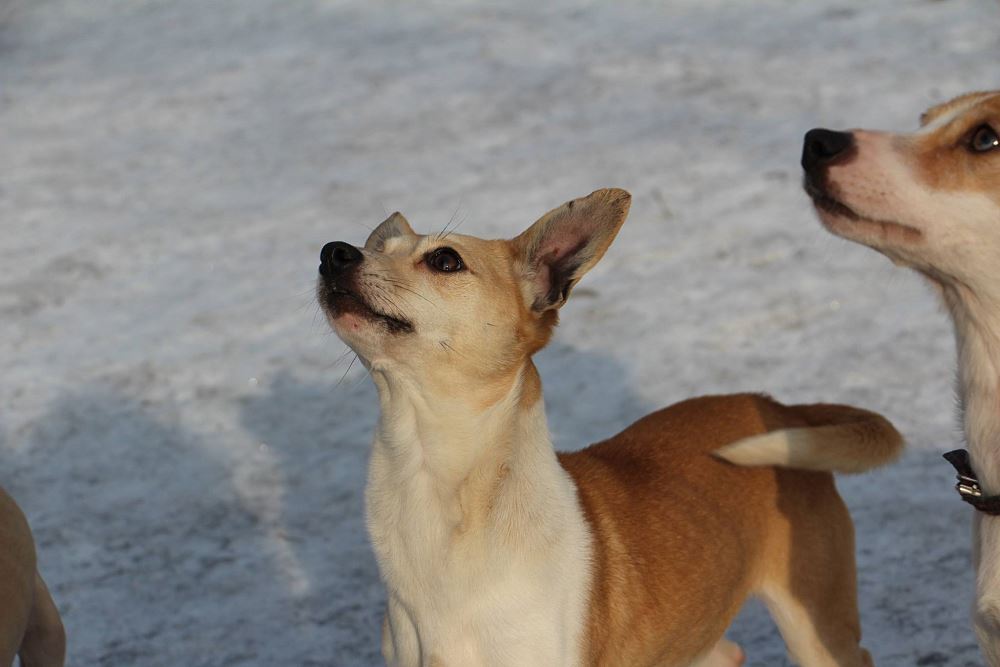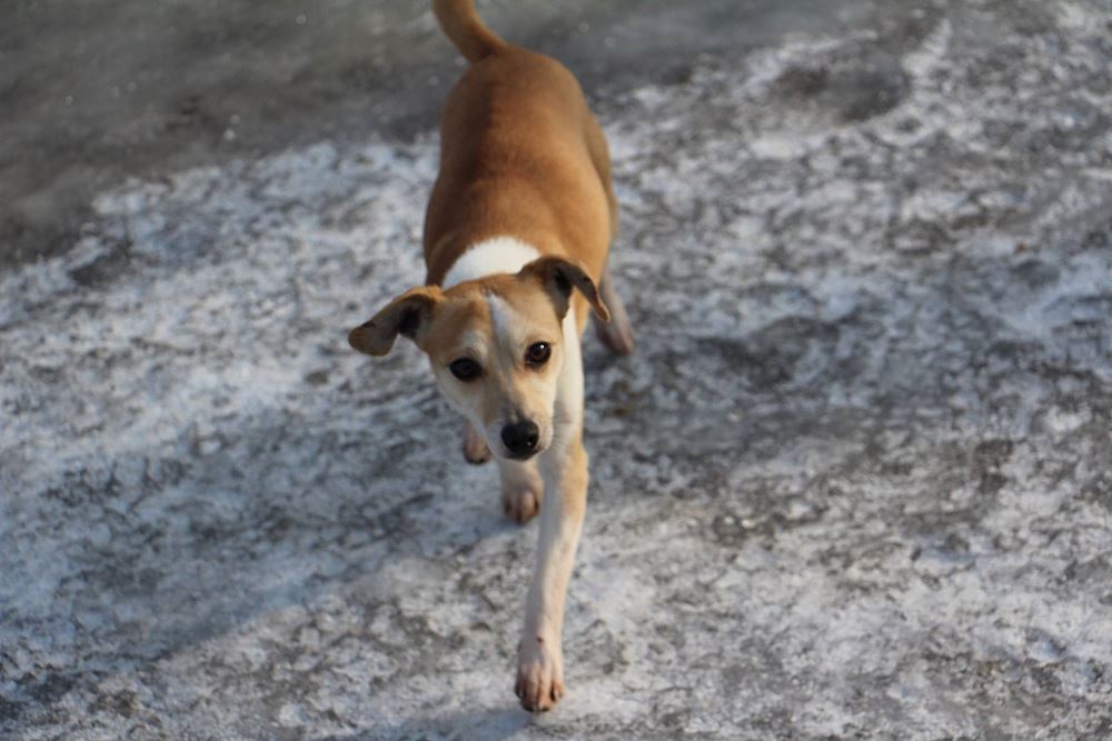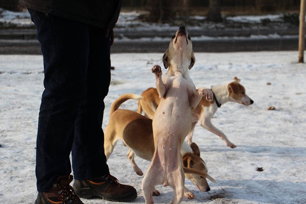 Suczka z gminy Tarnowo Podgórne. Przywieziona z mamą i siostrą 27 stycznia . Jest suczką w przybliżeniu roczną- wymaga nauki chodzenia na smyczy. Fla jest bardzo skoczna. Ma większe zaufanie do człowieka niż siostra.