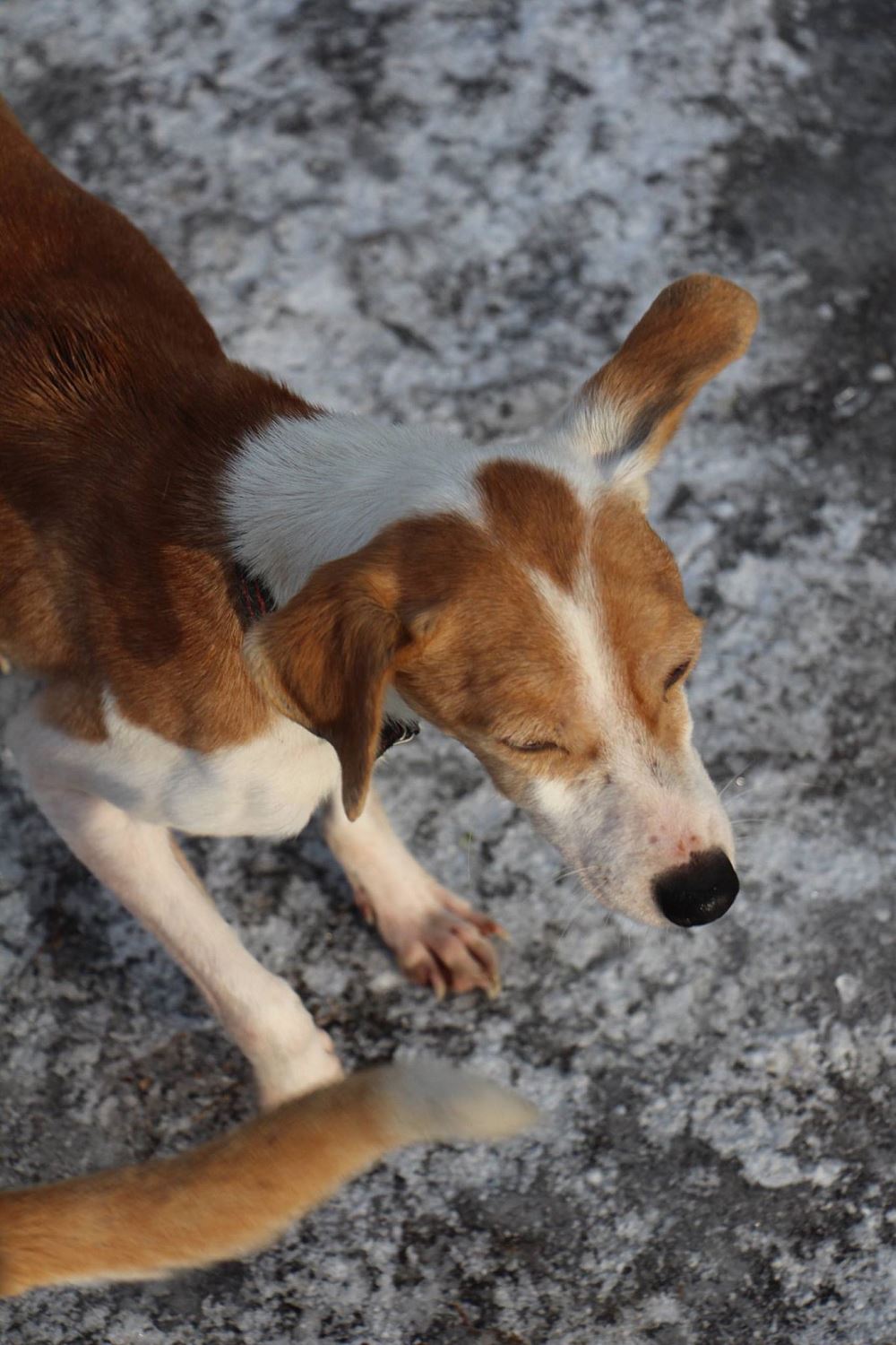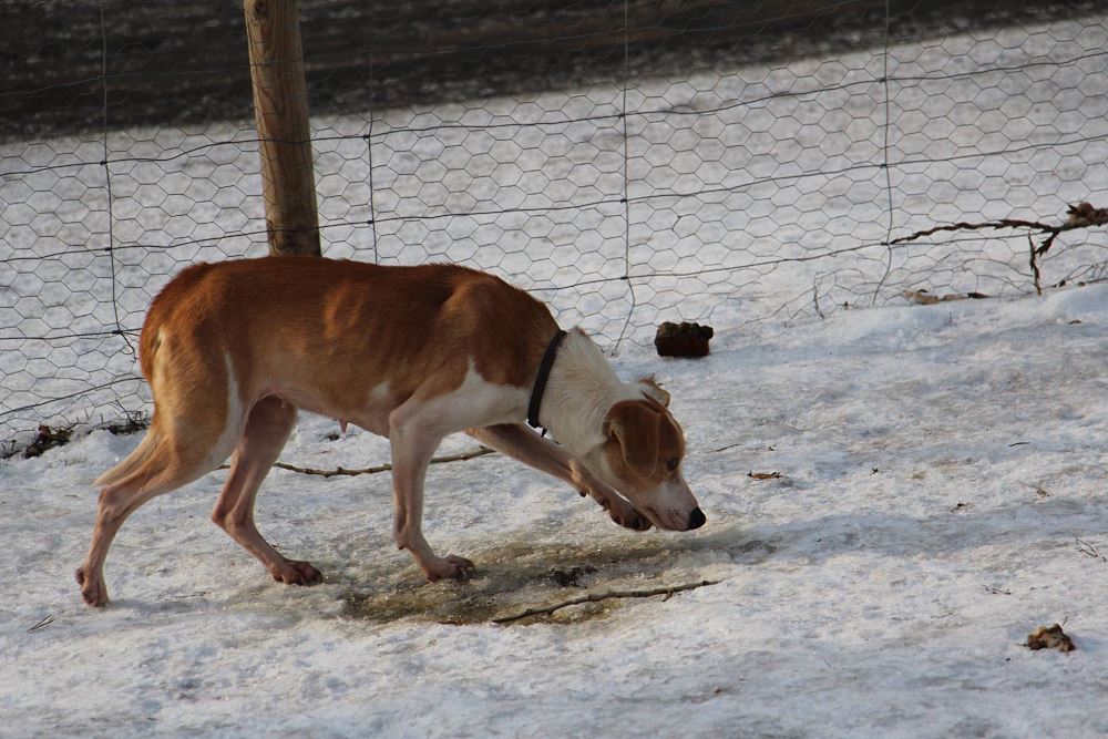Suka z gminy Tarnowo Podgórne ma około 3 lat i jest matką Fla i Flo. Umie chodzić na smyczy, jest gładkowłosa, mała, drobna, nieco wychudzona.