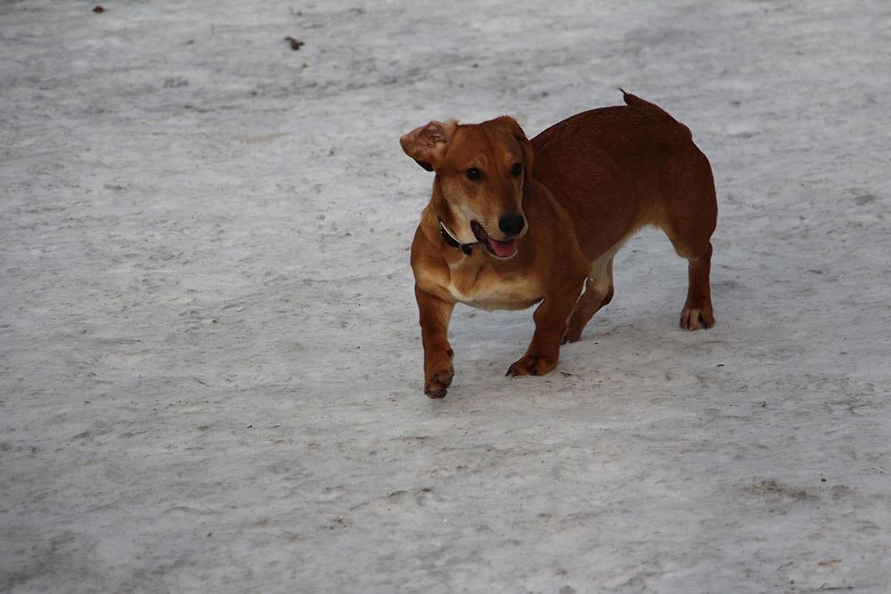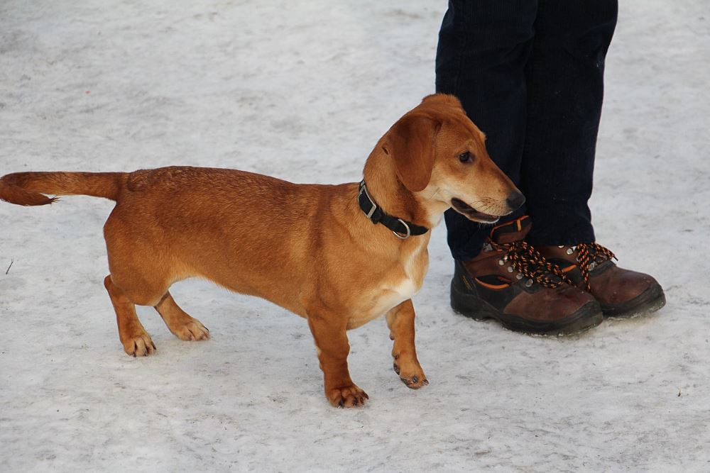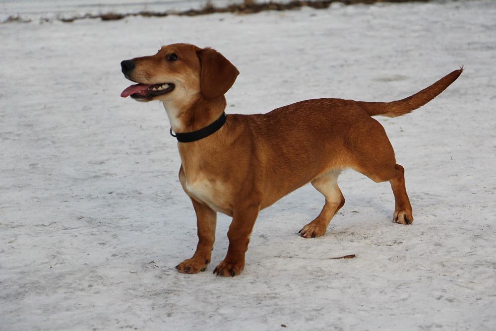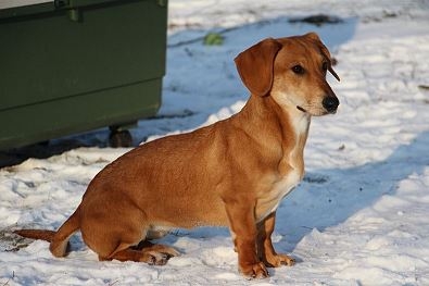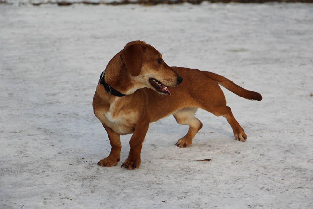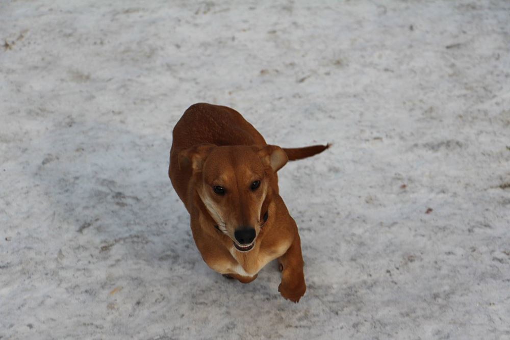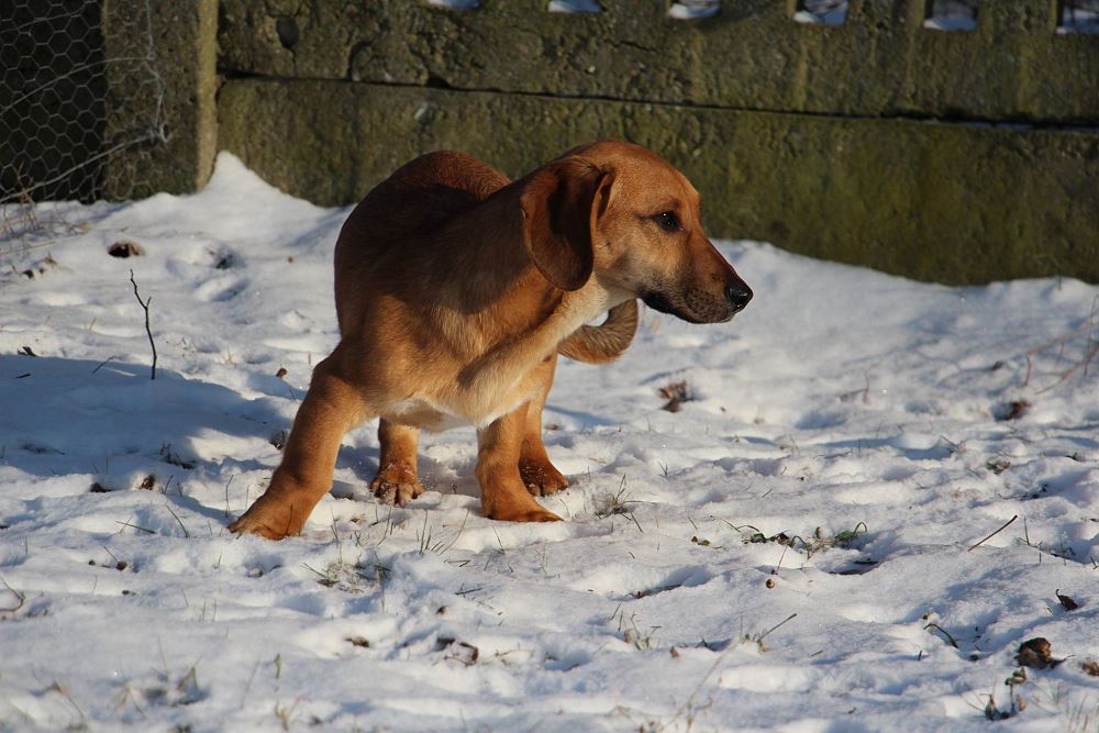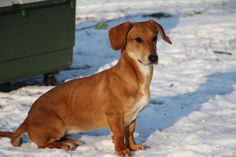Mokka - suczka, mix jamnika, ma około 6-8 miesięcy. Pies gotowy do adopcji. Bardzo wesoła, stara się utrzymywać czystość w pomieszczeniu.