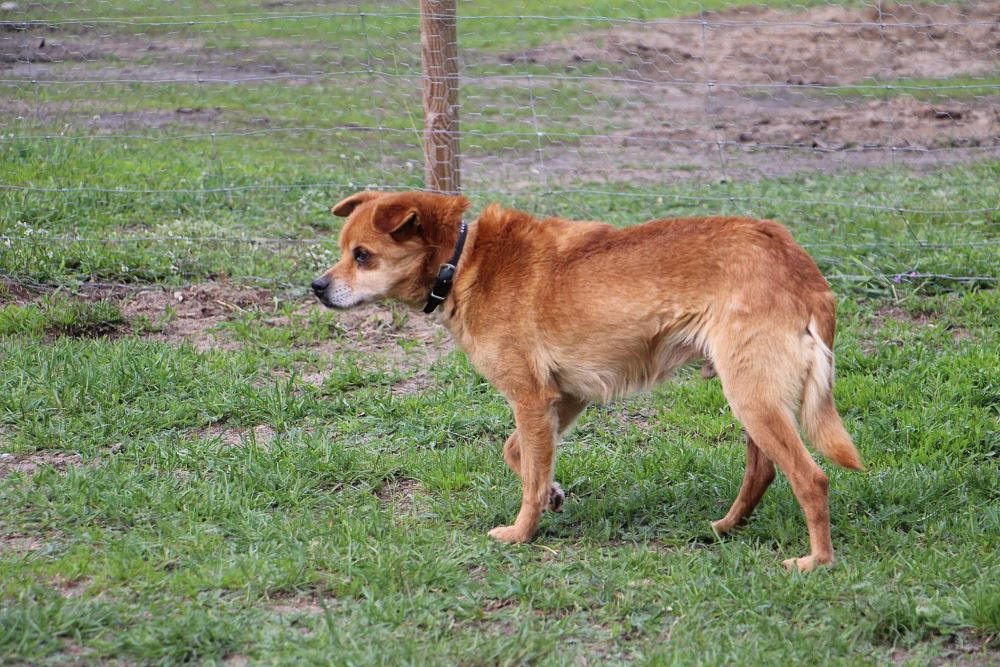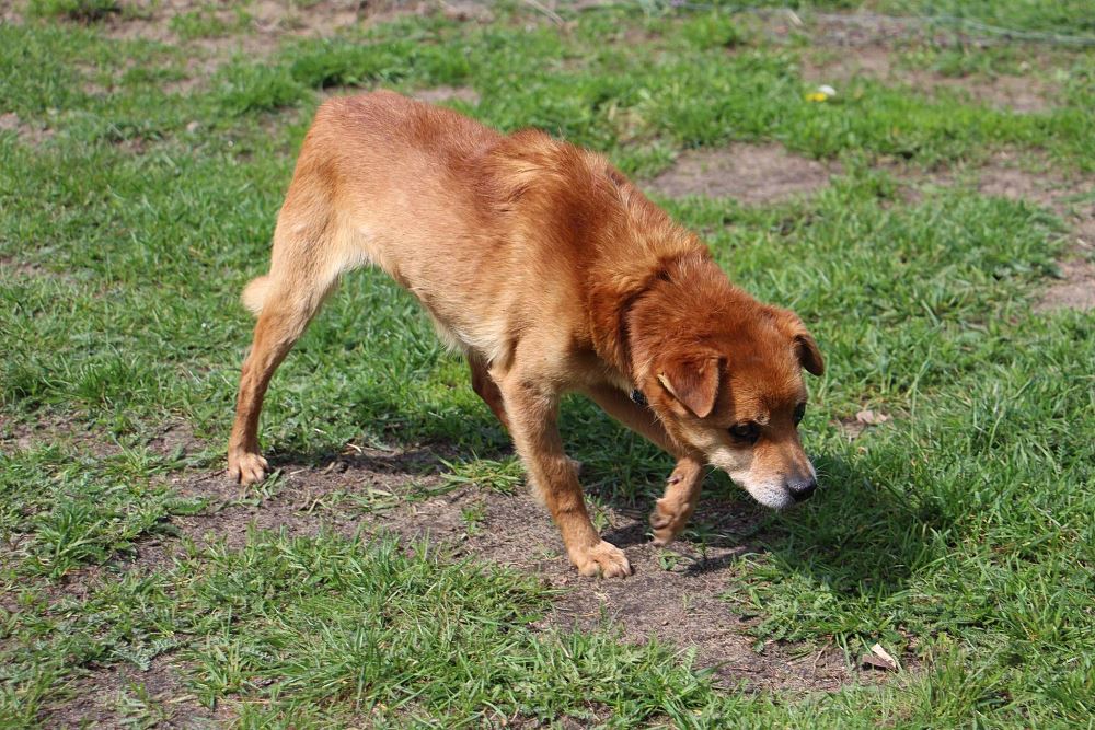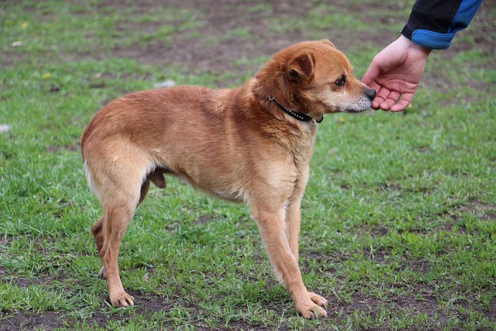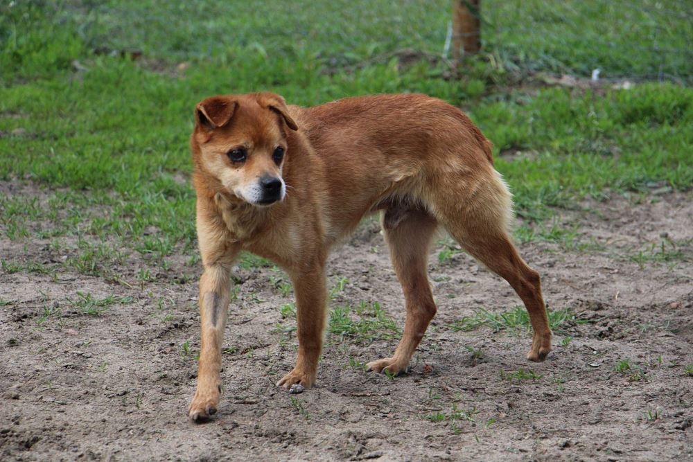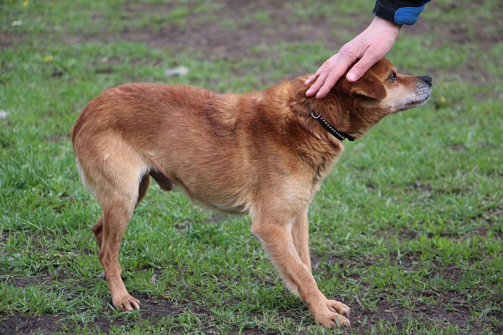 Pies odłowiony w Grodzisku Wielkopolskim przed 3 dniami. Jest około 10 letni, ale spokojny i w miarę zadbany. Nie wadzi się z mniejszymi psami. Potrafi chodzić na smyczy, o ile wokół jest spokój, wówczas zapiera się. Jest trochę nieśmiały.