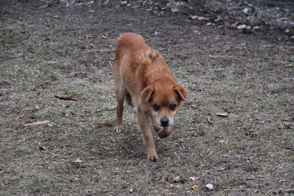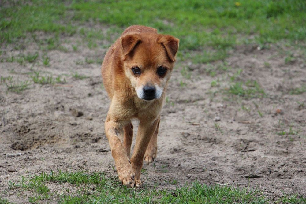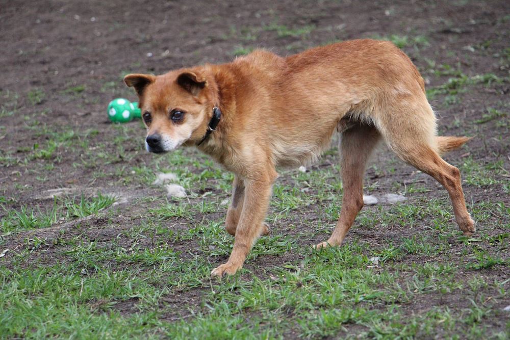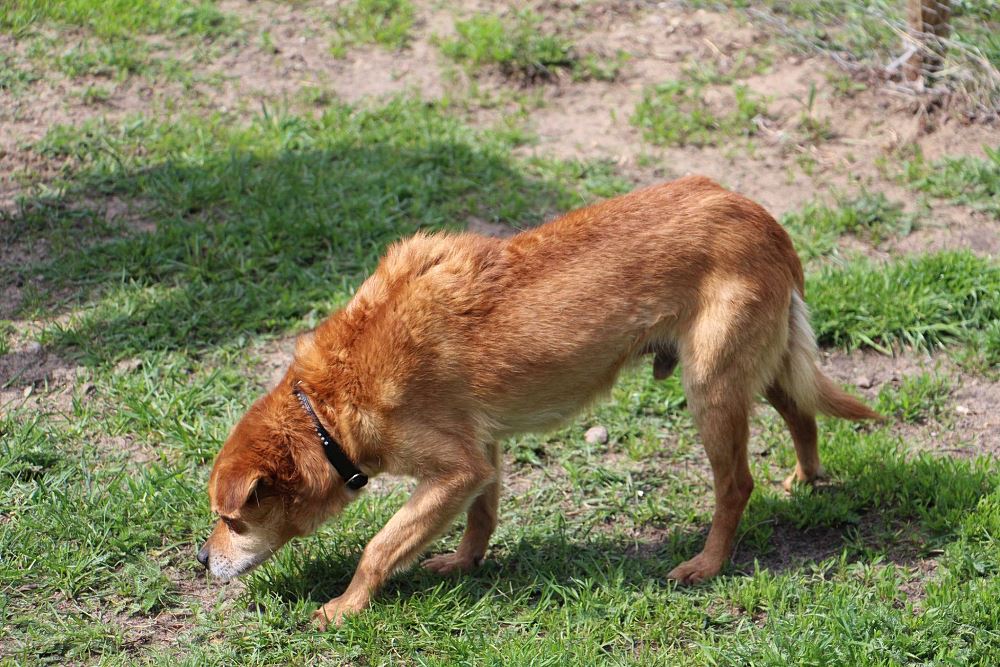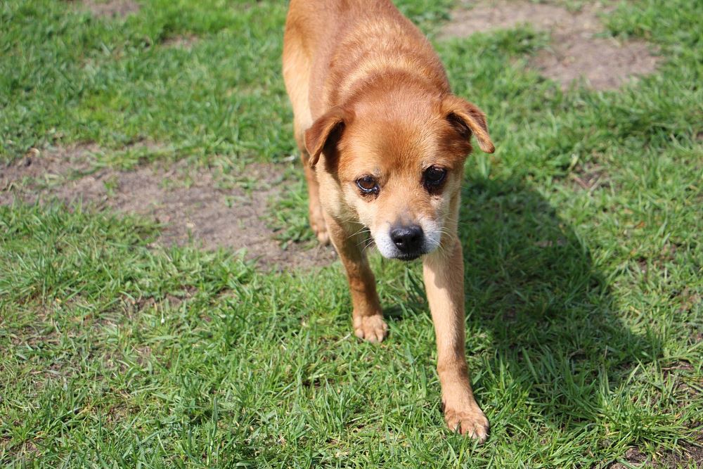Pies odłowiony w Grodzisku Wielkopolskim przed 3 dniami. Jest około 10 letni, ale spokojny i w miarę zadbany. Nie wadzi się z mniejszymi psami. Potrafi chodzić na smyczy, o ile wokół jest spokój, wówczas zapiera się. Jest trochę nieśmiały.
