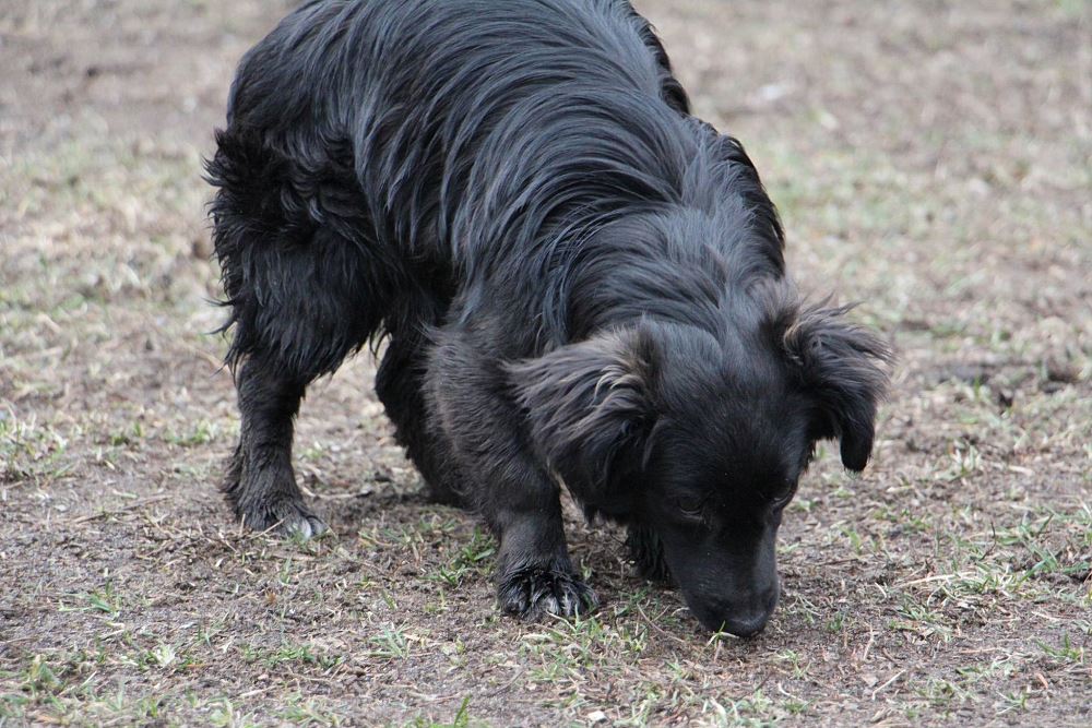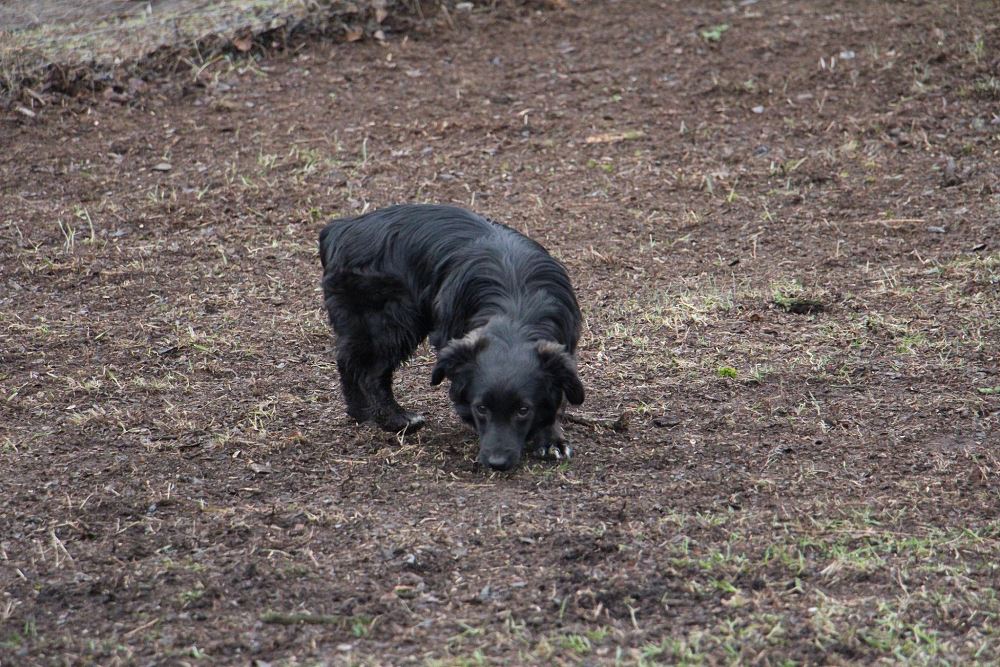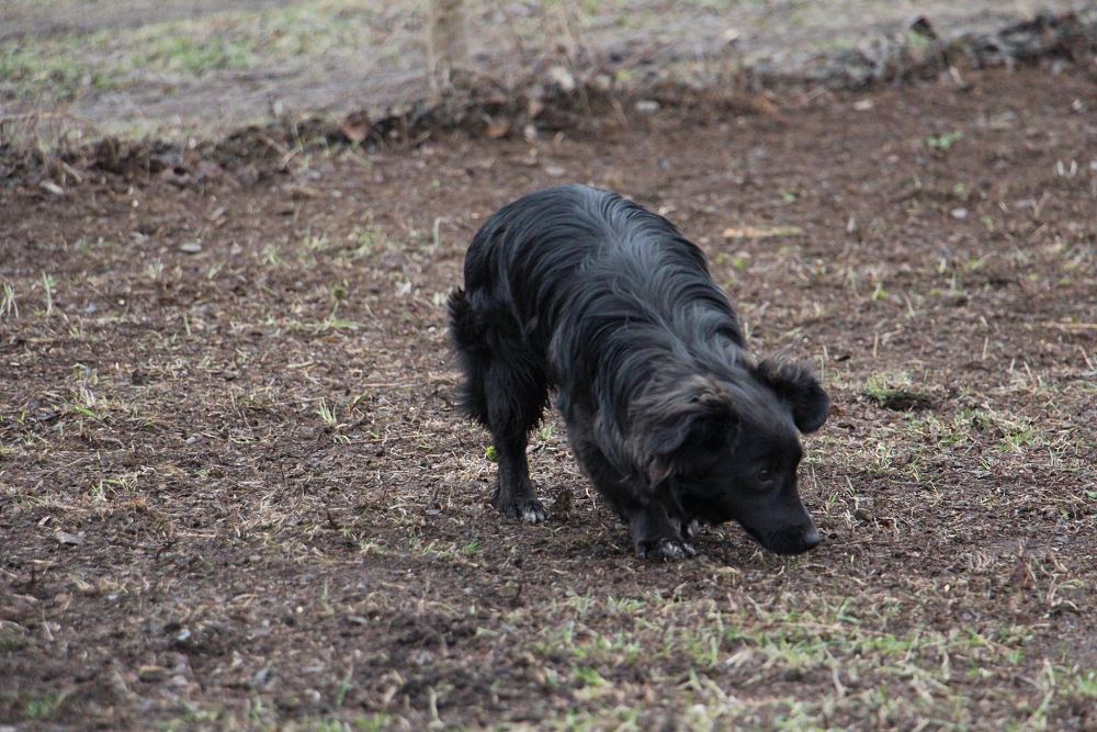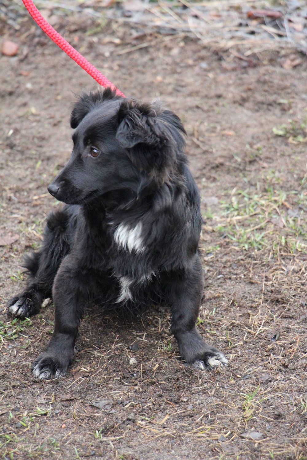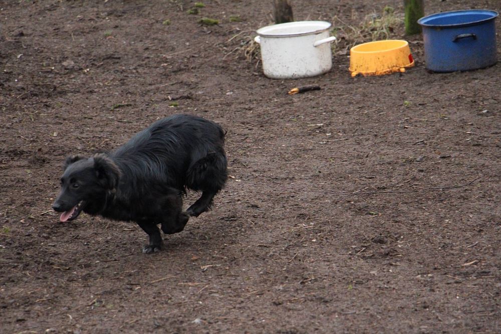 Pies z Grodziska Wielkopolskiego przywieziony 9 marca, jest psem około 10-12 miesięcznym bez ogonka, umie chodzić na smyczy, dla psów normalny, nie boi się ludzi.