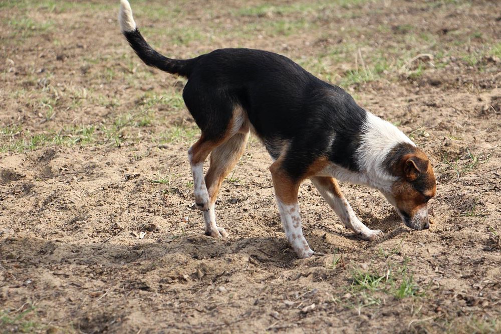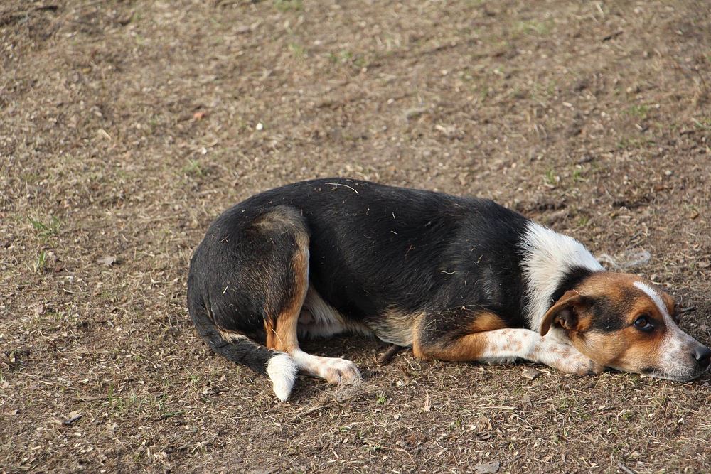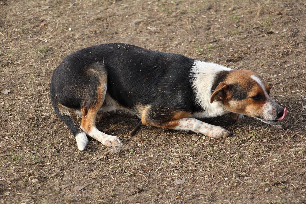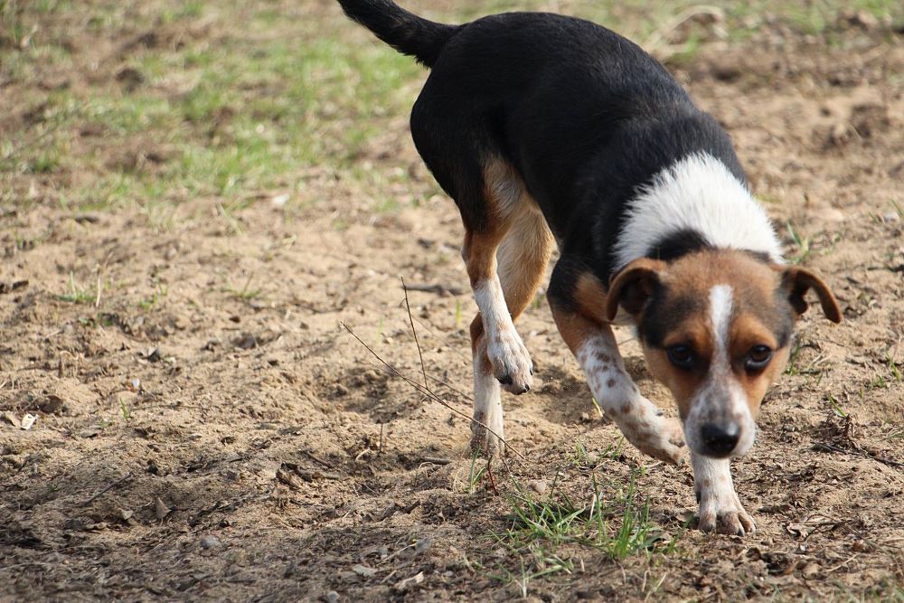 Pies przywieziony 13 marca z Rogoźna z ul. Boguniewskiej. Ma około 1 roku utyka na tylną łapę. Smycz jest straszna ale jakoś daje się prowadzić.