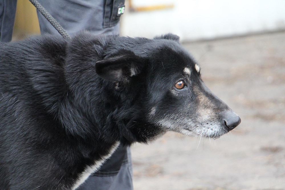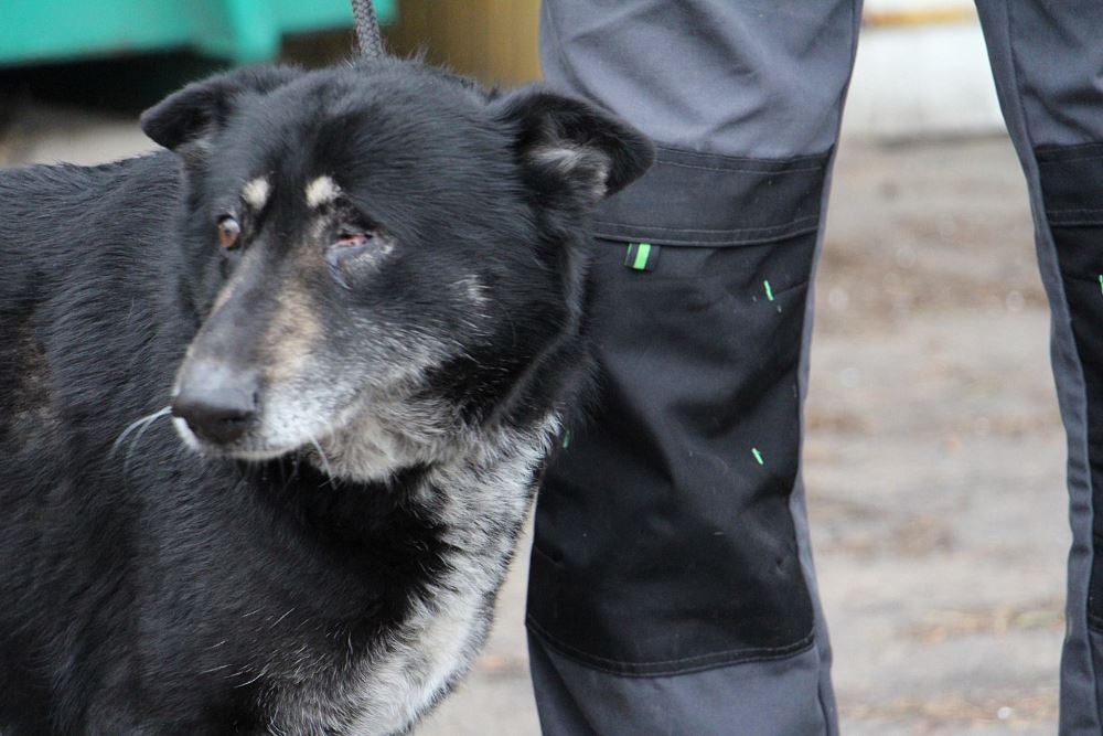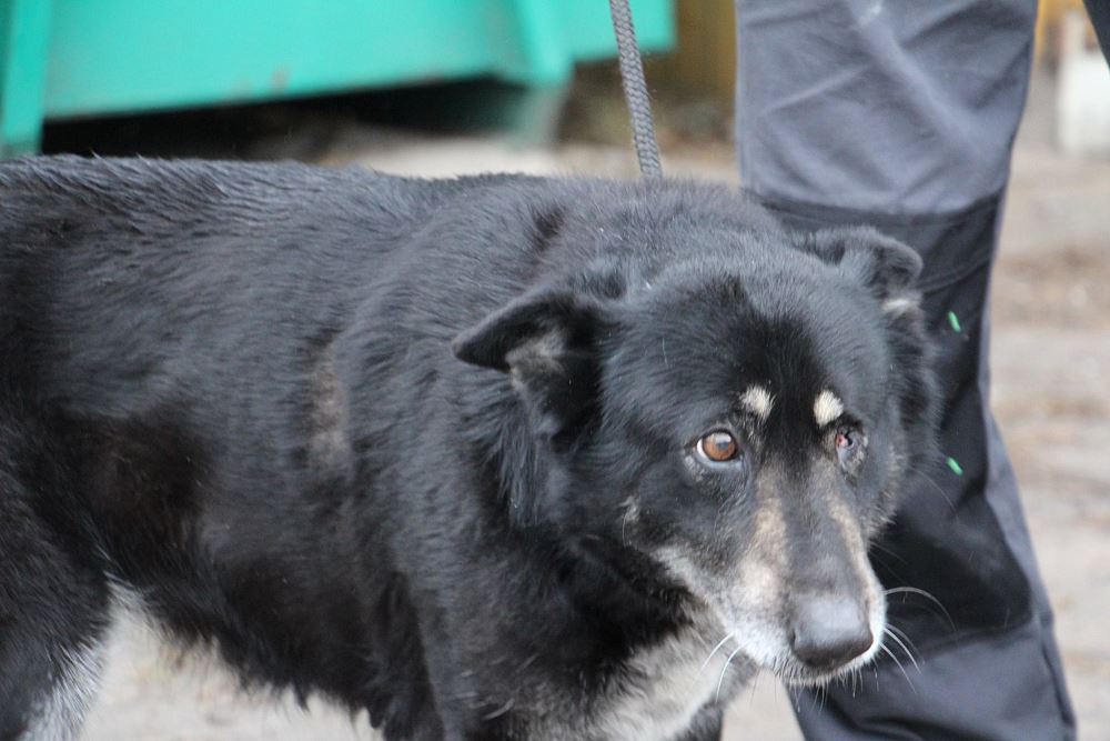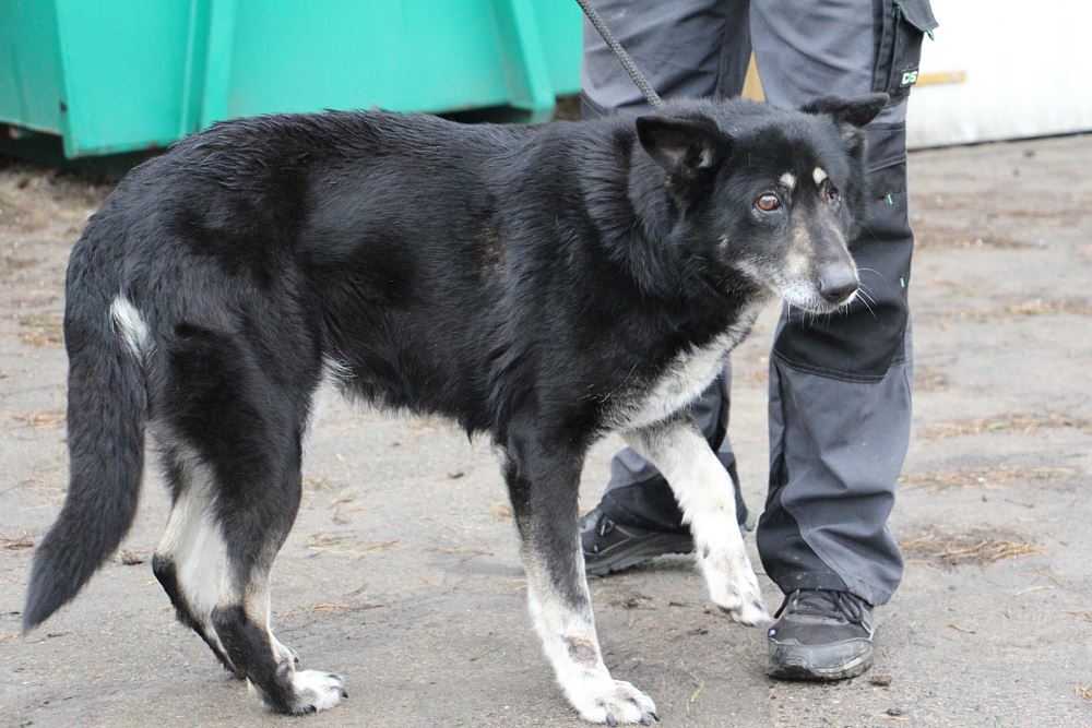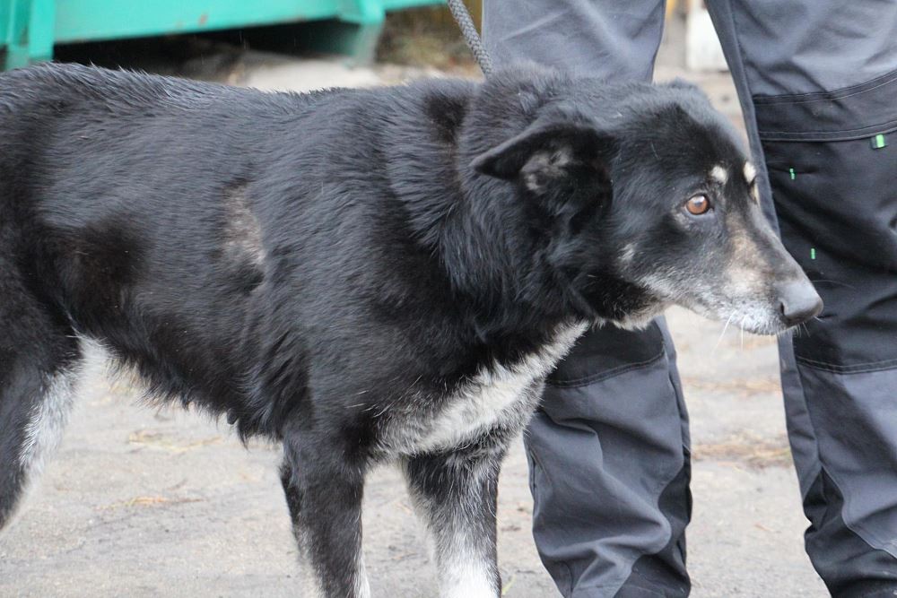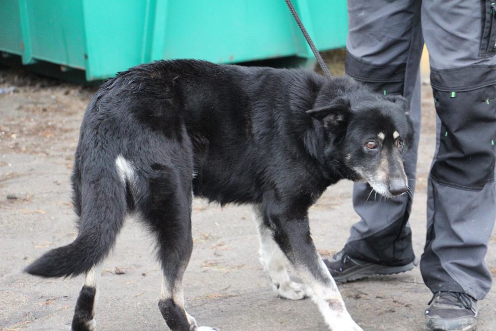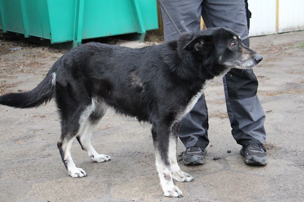 Suczka odłowiona 12 kwietnia w gminie Czarnków - jest dość stara nie posiada gałki ocznej, jest bardzo miła dla człowieka choć życie spędziła na uwięzi- ma wytartą sierść na szyi.
