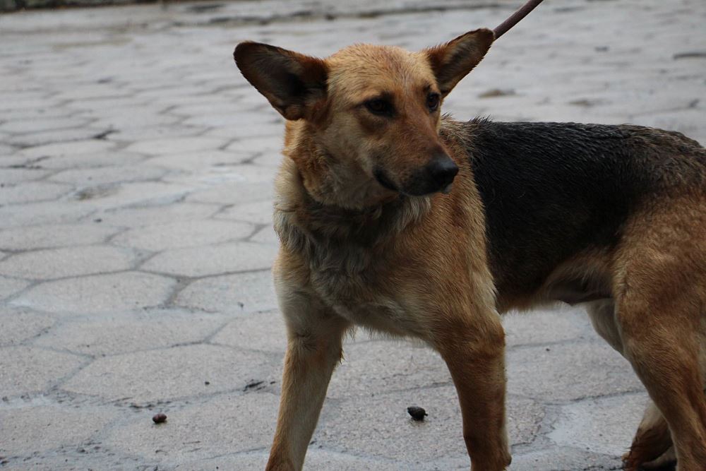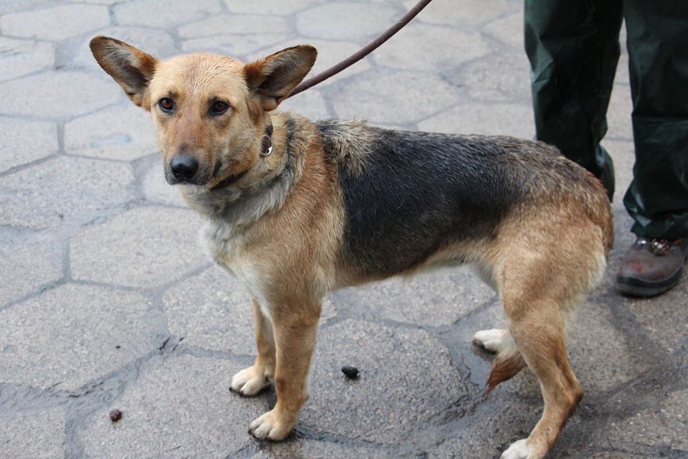 Suka z gminy Rogoźno - z Tarnowa przywieziona 4 maja. Zrobiła sobie legowisko w kompostowniku tarnowskiego gospodarza. Była psem na bank trzymanym na uwięzi, ma wytarte włosy na karku i starą bliznę od wrośniętej obroży czy łańcucha. Ma ok 5 lat.
