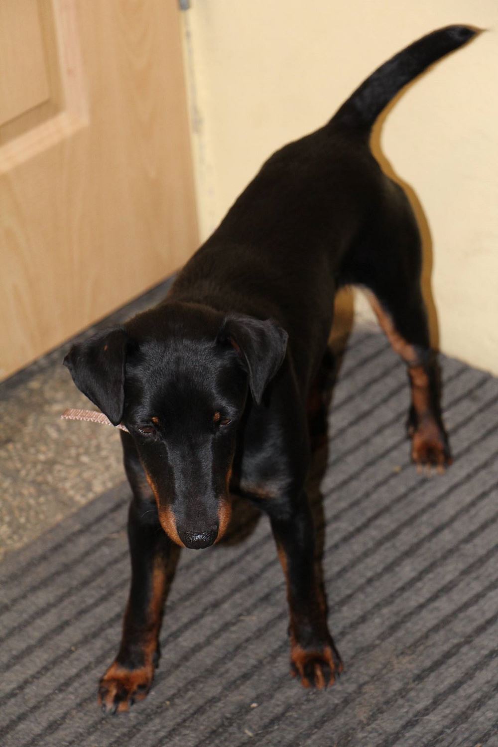Suka odłowiona 8 maja w nocy w Lusówku w gminie Tarnowo Podgórne. Jest młoda, ok. 1 roku, bez czipa.