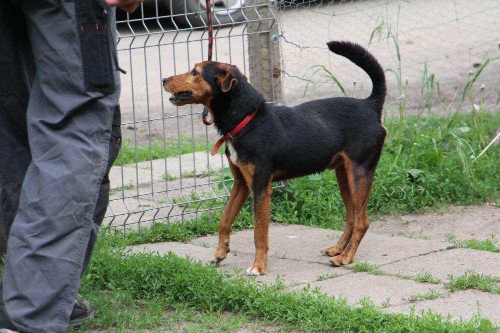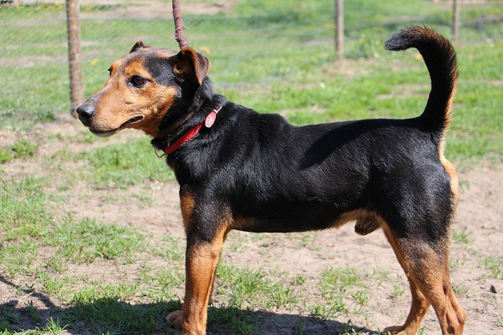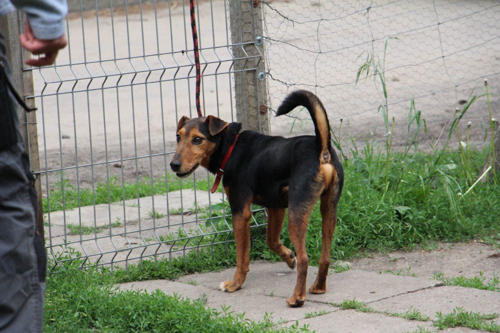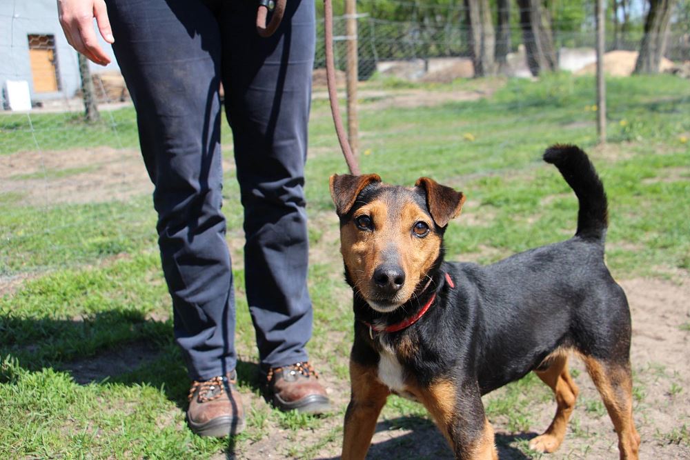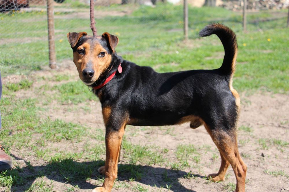 German - pies znaleziony w Łopuchowie, gmina Murowana Goślina. Do Azorka trafił 12 maja 2017. Ma ok. 3 lat. German to typowy terier. Nie najlepiej znosi schroniskowy kojec, bardzo jest podenerwowany dużo szczeka. Gdy jest wyciszony może przebywac z psami, ale pod kontrolą człowieka. Poza kojcem po krótkim spacerem łapie dobry kontakt z człowiekiem. German to pies dla człowieka, który lubi psy z dużym temperamentem, energiczne.
