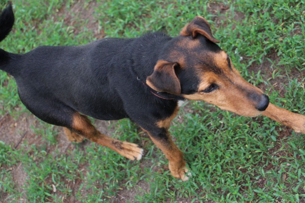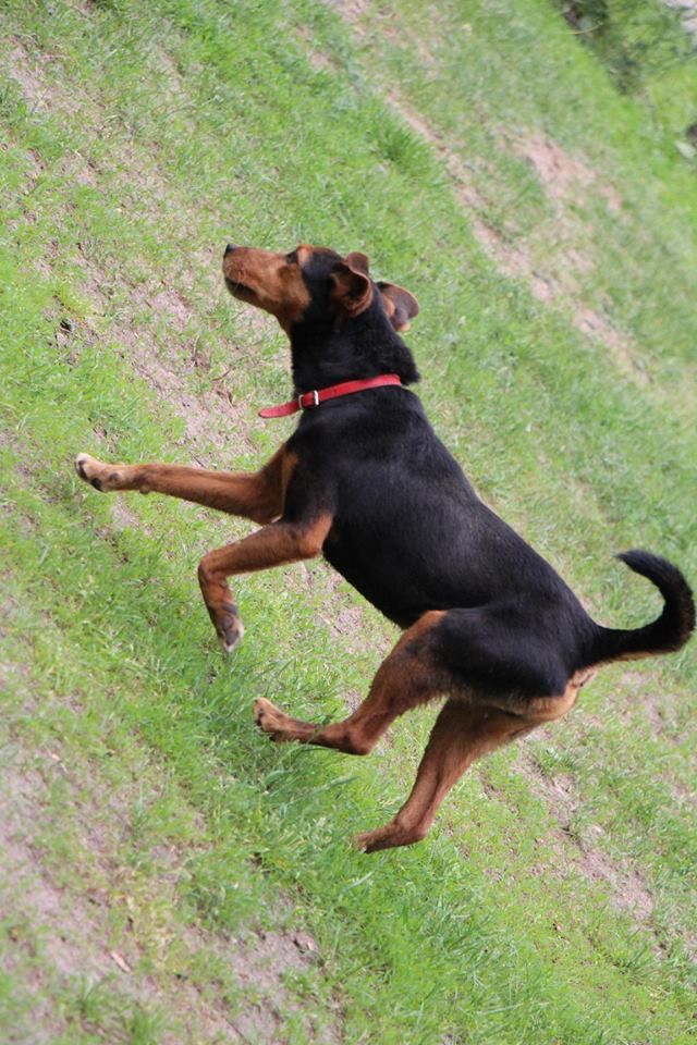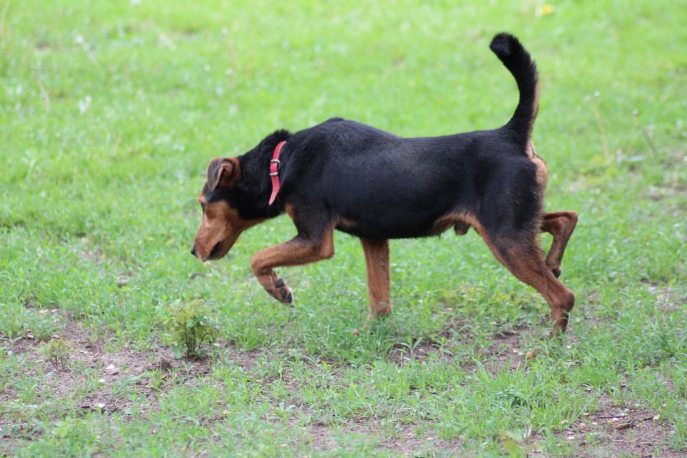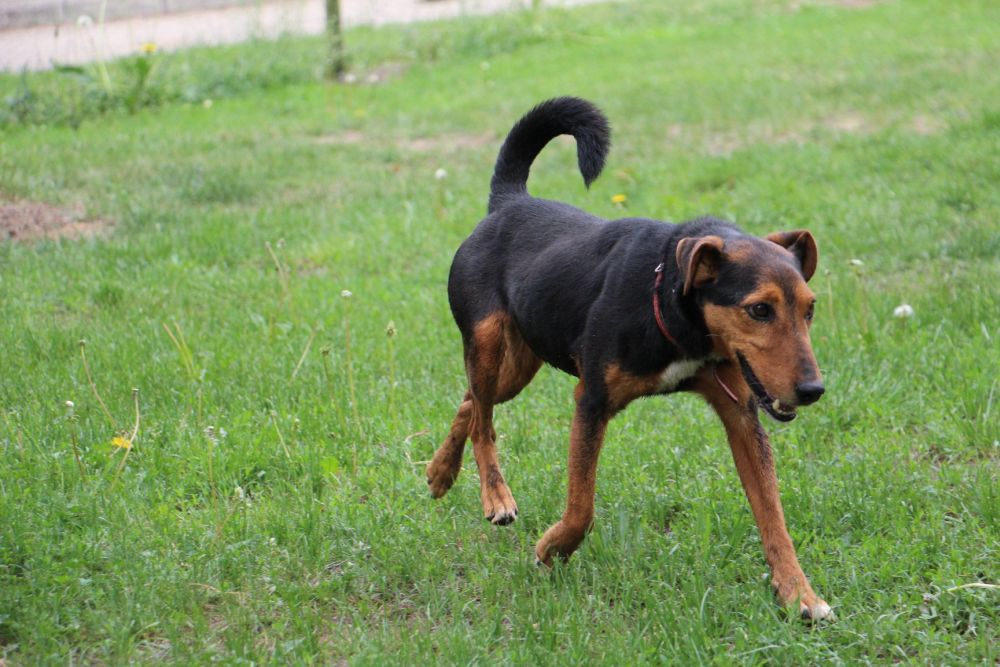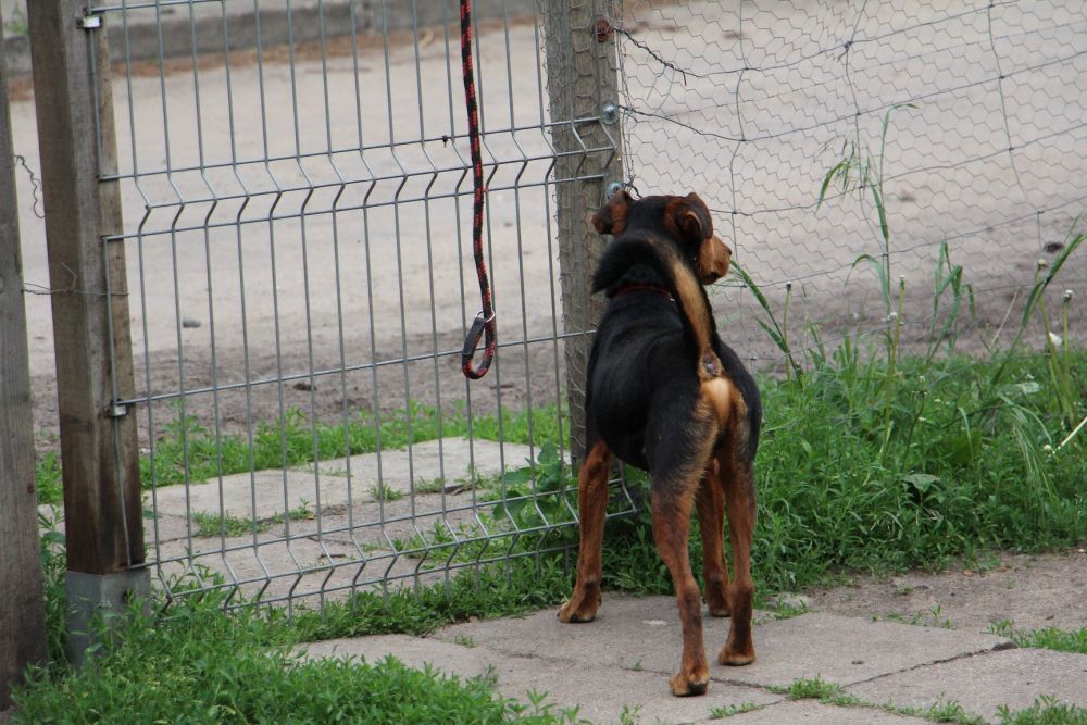 German - pies znaleziony w Łopuchowie, gmina Murowana Goślina. Do Azorka trafił 12 maja 2017. Ma ok. 3 lat. German to typowy terier. Nie najlepiej znosi schroniskowy kojec, bardzo jest podenerwowany dużo szczeka. Gdy jest wyciszony może przebywac z psami, ale pod kontrolą człowieka. Poza kojcem po krótkim spacerem łapie dobry kontakt z człowiekiem. German to pies dla człowieka, który lubi psy z dużym temperamentem, energiczne.