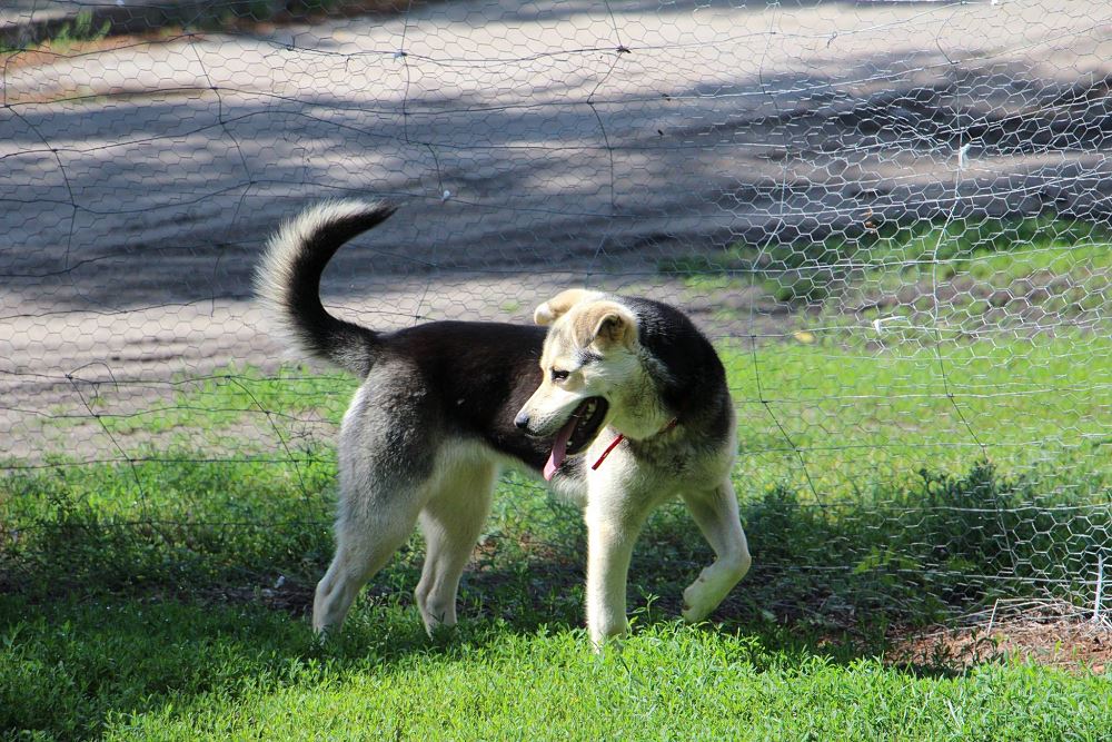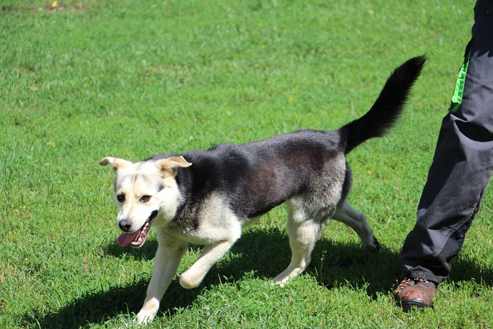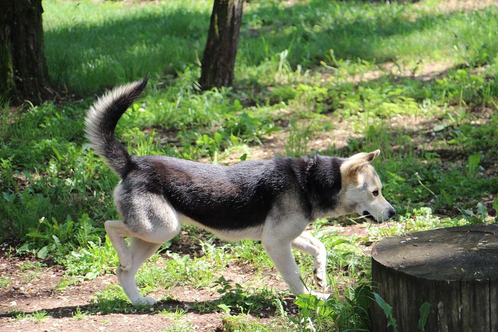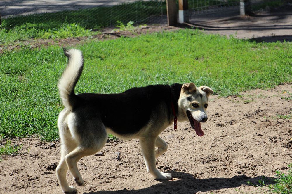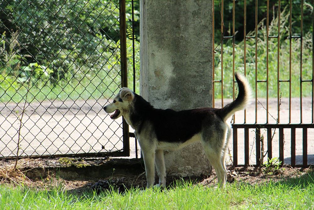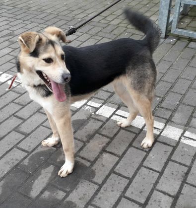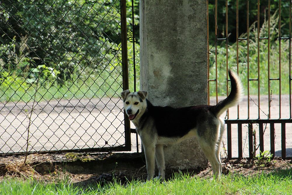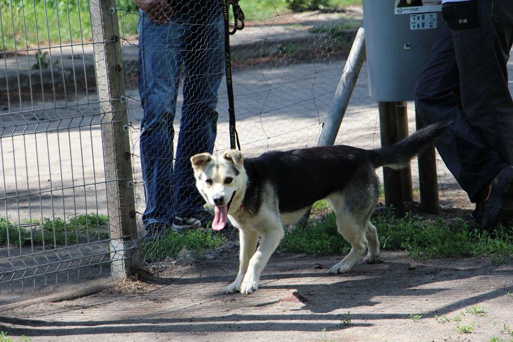 Suka z Lipy w gminie Ryczywół, ma około 1,5 roku, do ludzi podchodzi nieufnie - ale po chwili nieufność znika. Miała na szyi obrożę, jest szczupła.