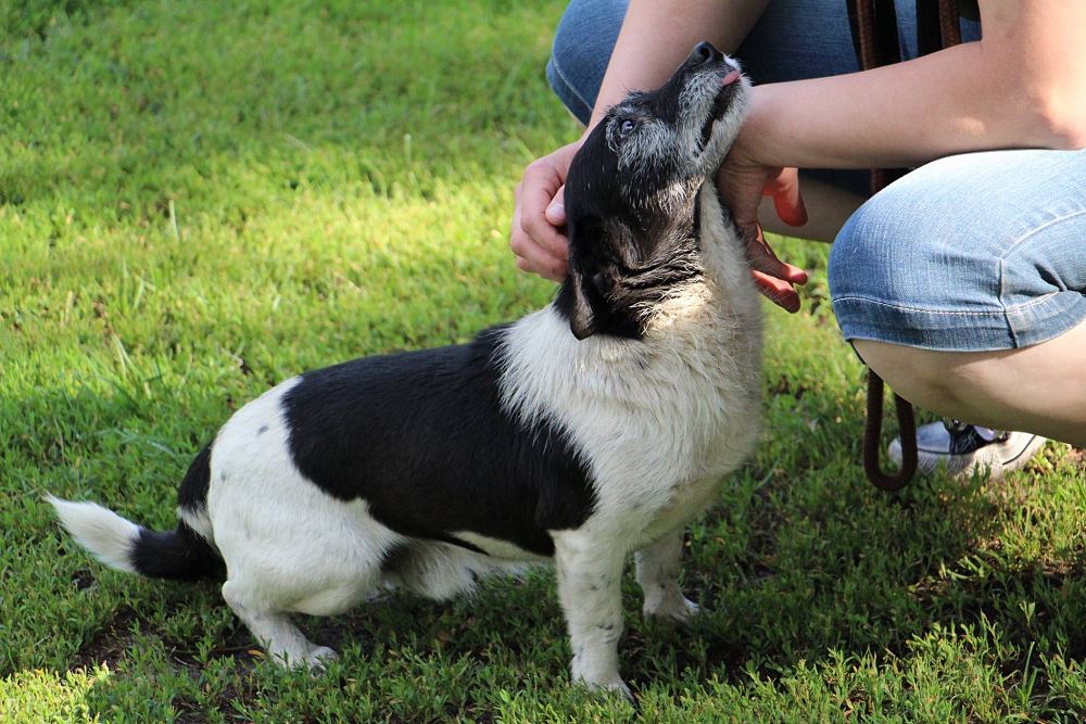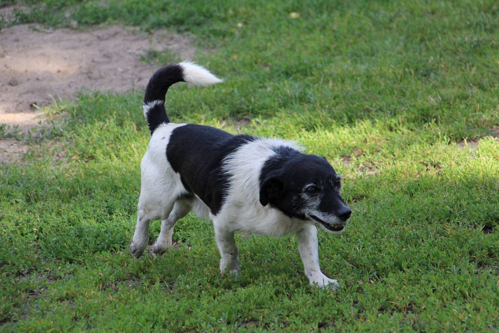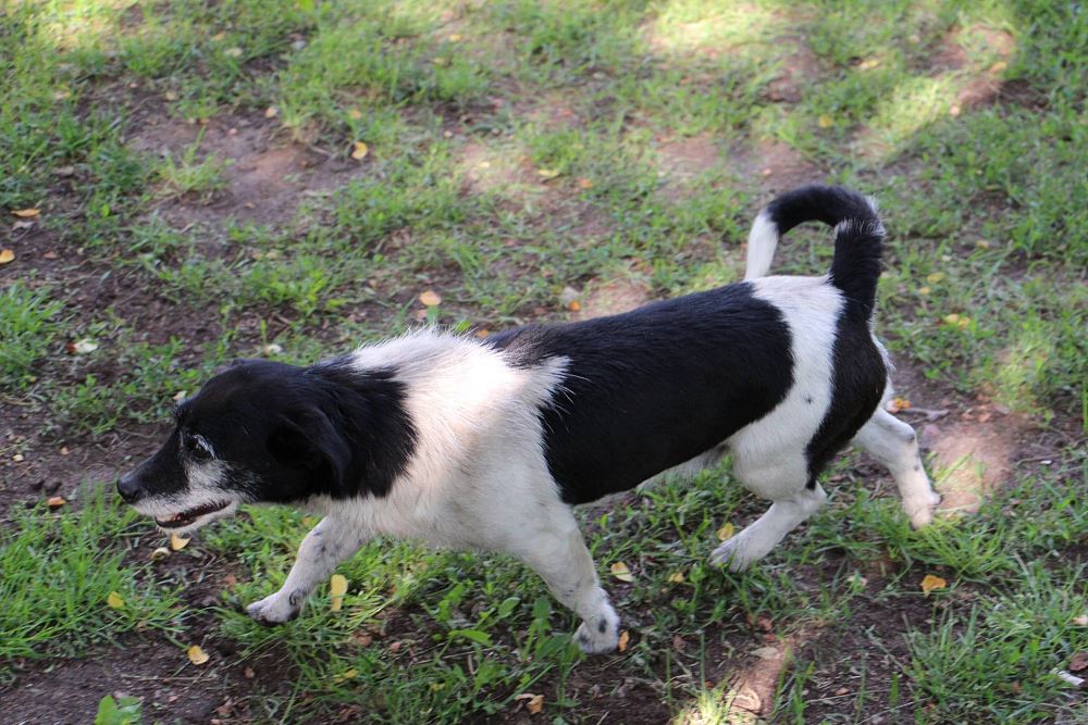 Pies odłowiony 5 lipca w Rożnowie w gminie Oborniki. Pies jest łagodny, błąkał się przez parę dni z Węgielkiem, który dziś został odłowiony. Patrząc na stan zębów sądzimy, że ma około 3 lat. Umaszczenie jest mylne :) Łatek ładnie chodzi na smyczy, nie wchodzi w konflikty z psami, utrzymuje czystość w kojcu, garnie się do człowieka.