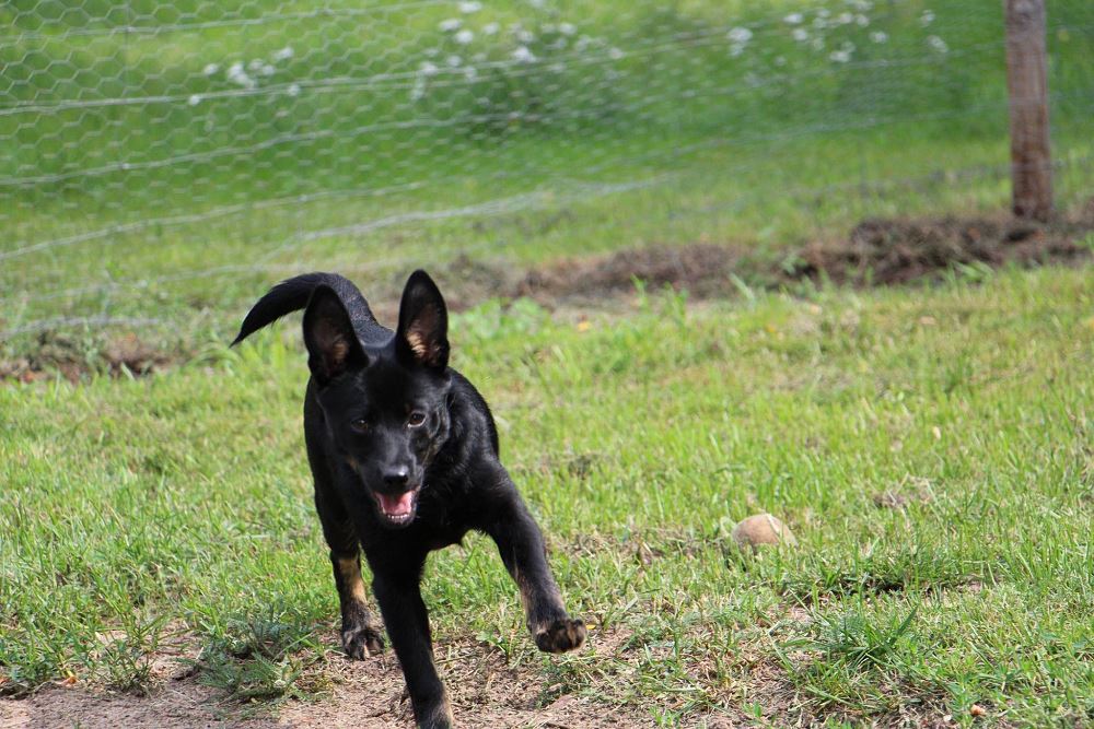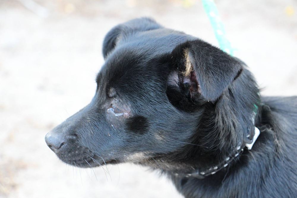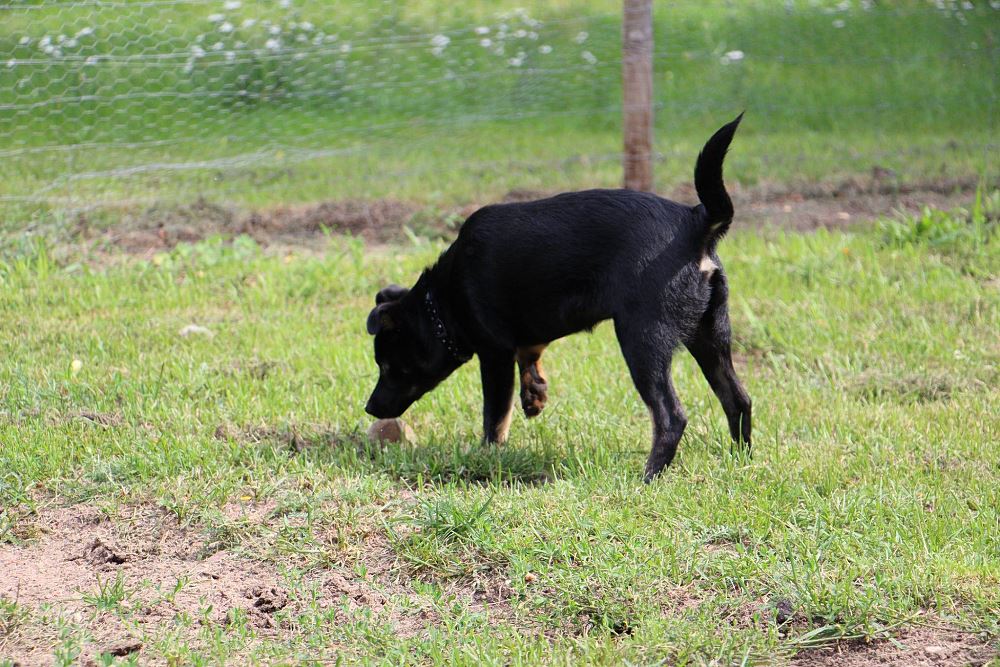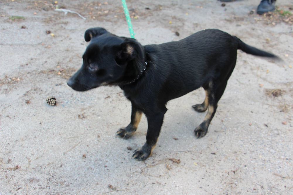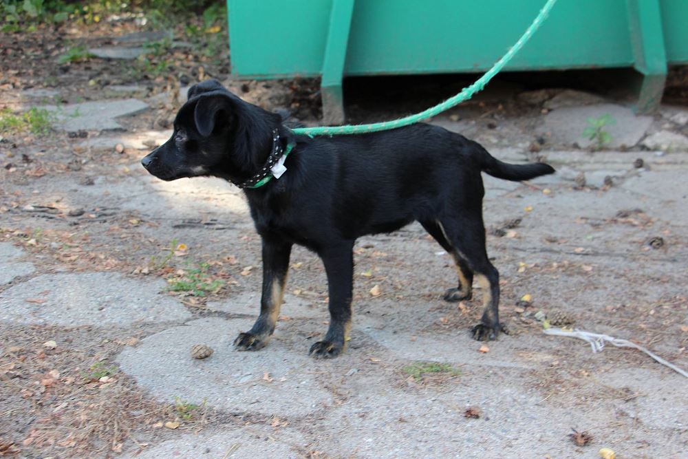Grudka - młodziutka suczka w wieku ok. 5 miesięcy przywieziona 17 lipca z miejscowości Grudka gmina Rogoźno. Potrafi chodzić na smyczy, lubi poszczekać, garnie się do ludzi.
