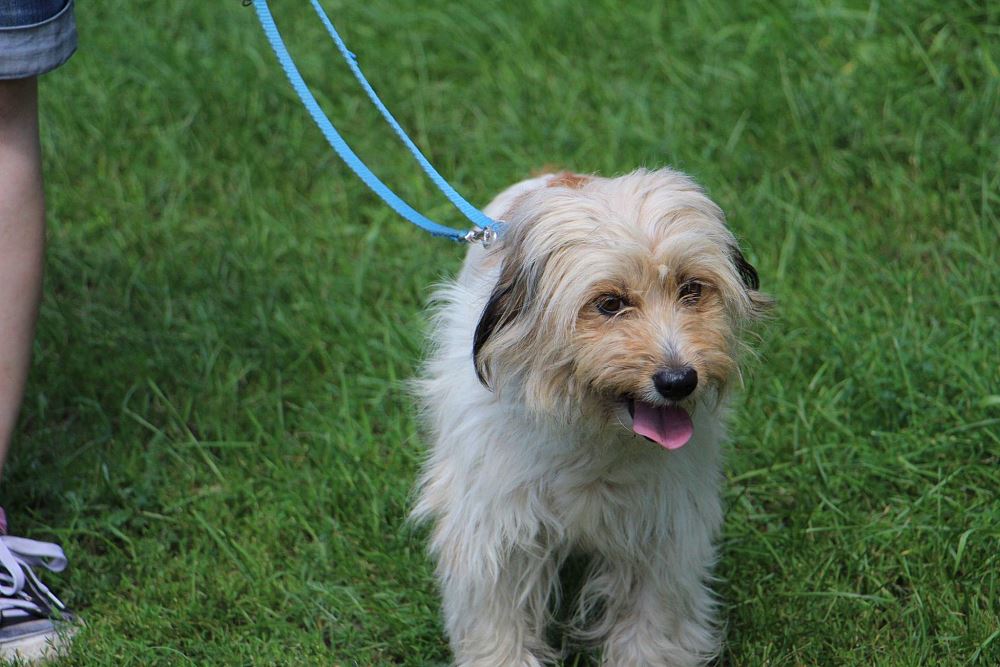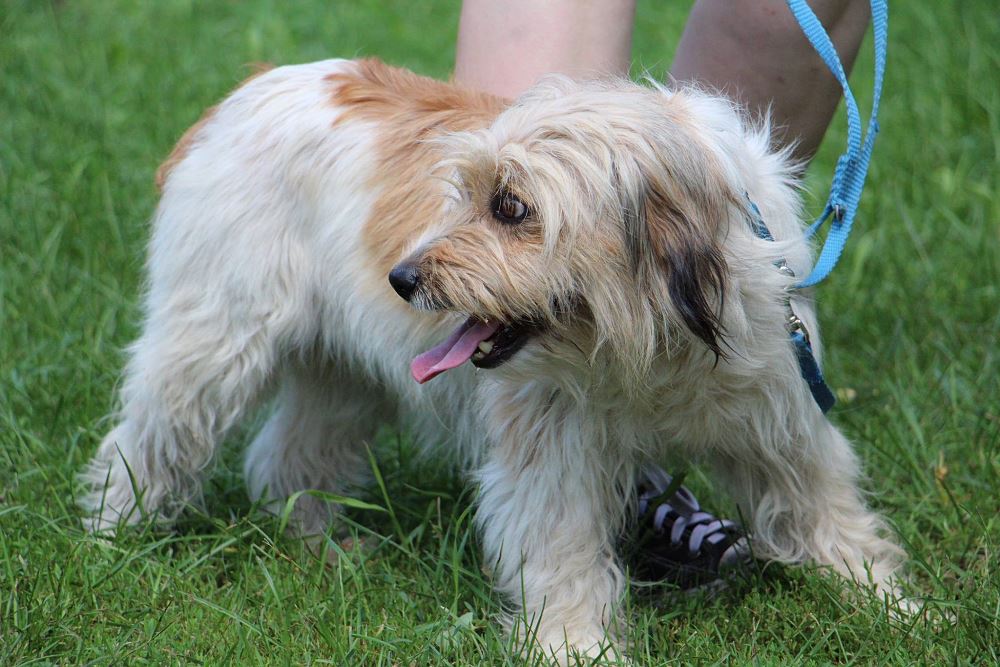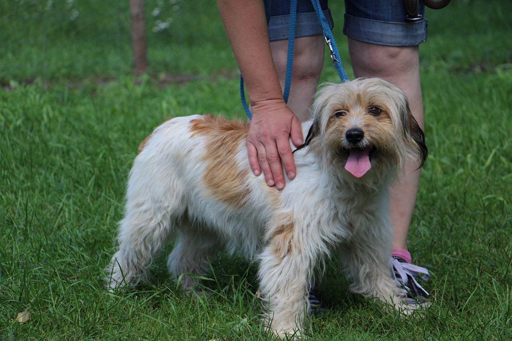 Suka, mieszaniec- większa od shiz-tzu, ma krótki ogon, bardzo zapchlona, jest w trakcie cieczki, więc panowie z nią błąkający się 28 lipca od Bogdanowa poprzez Ocieszyn aż kawał drogi za wiadukt w stronę Poznania byli nią zauroczeni. Suczka ma około 2 lat