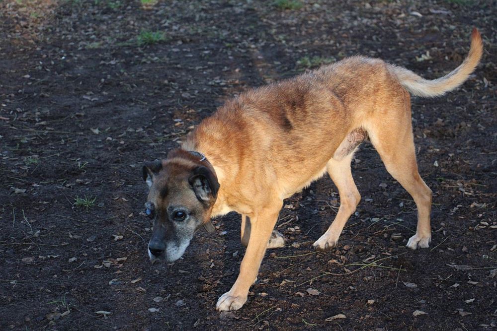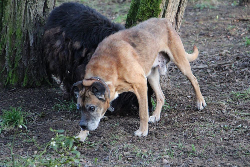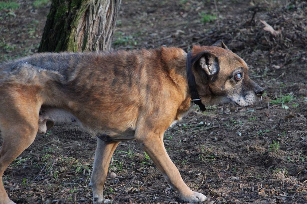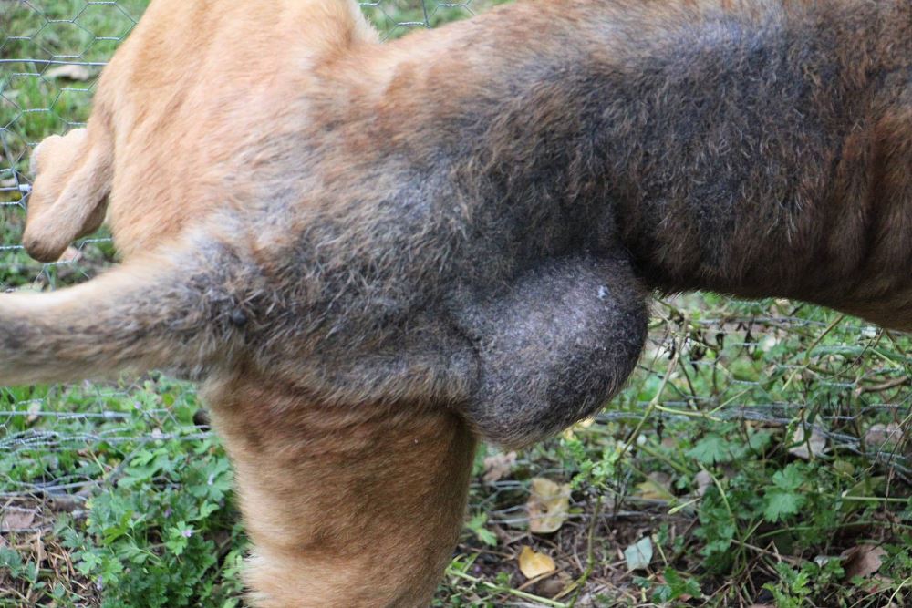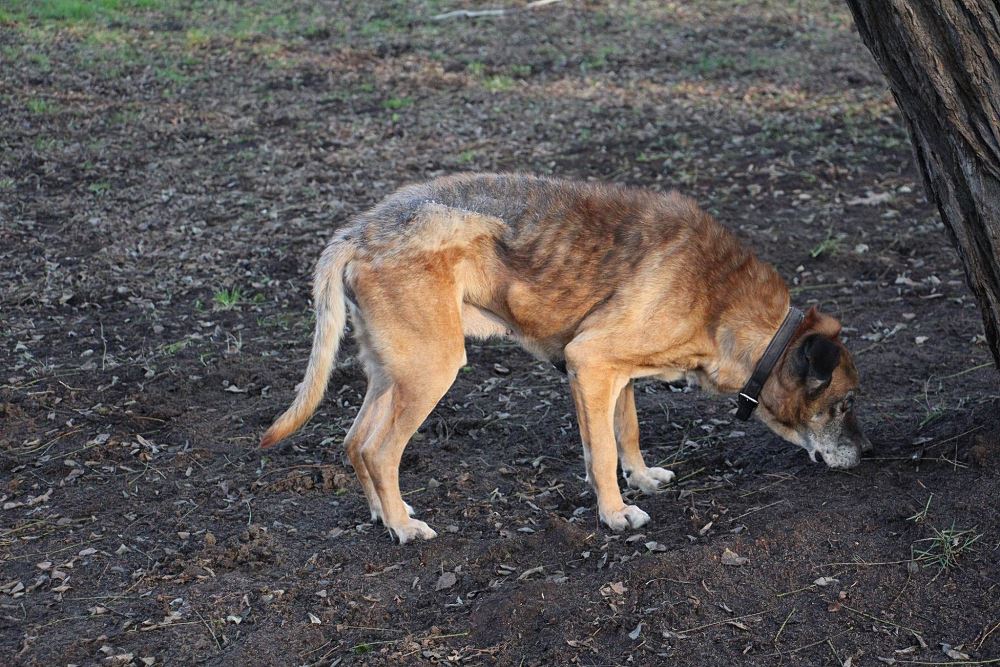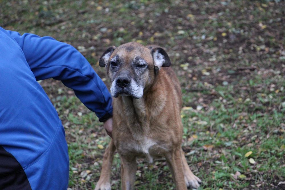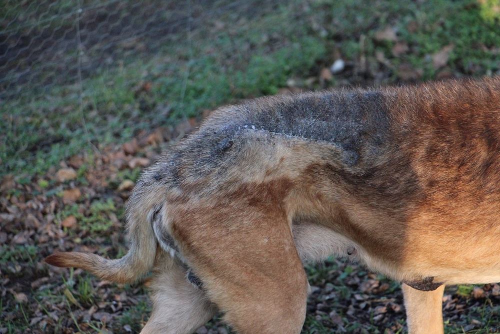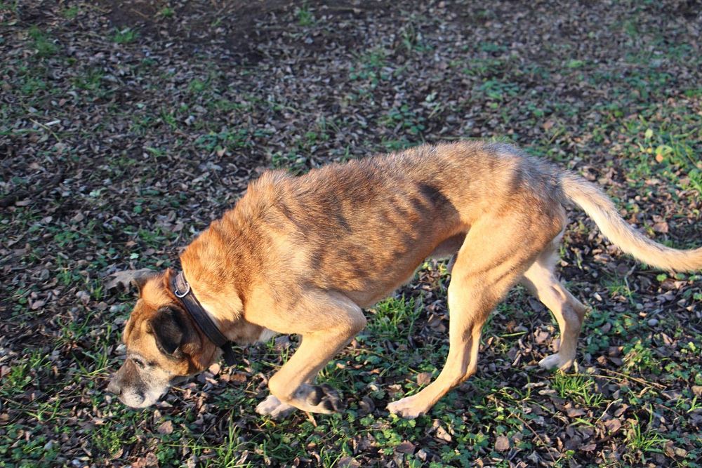 Pies odebrany interwencyjnie z Gminy Oborniki, mieszkał w betonowym, rozsypującym się budynku na stercie puszek i butelek i na tynku, który spadał z sufitu. Jest tak zachwycony suchą budą z miękkim kocykiem, że trzeba go prosić aby poszedł na spacer. Zrobiona diagnostyka, czekamy na wyniki a teraz zajmujemy się skórą.