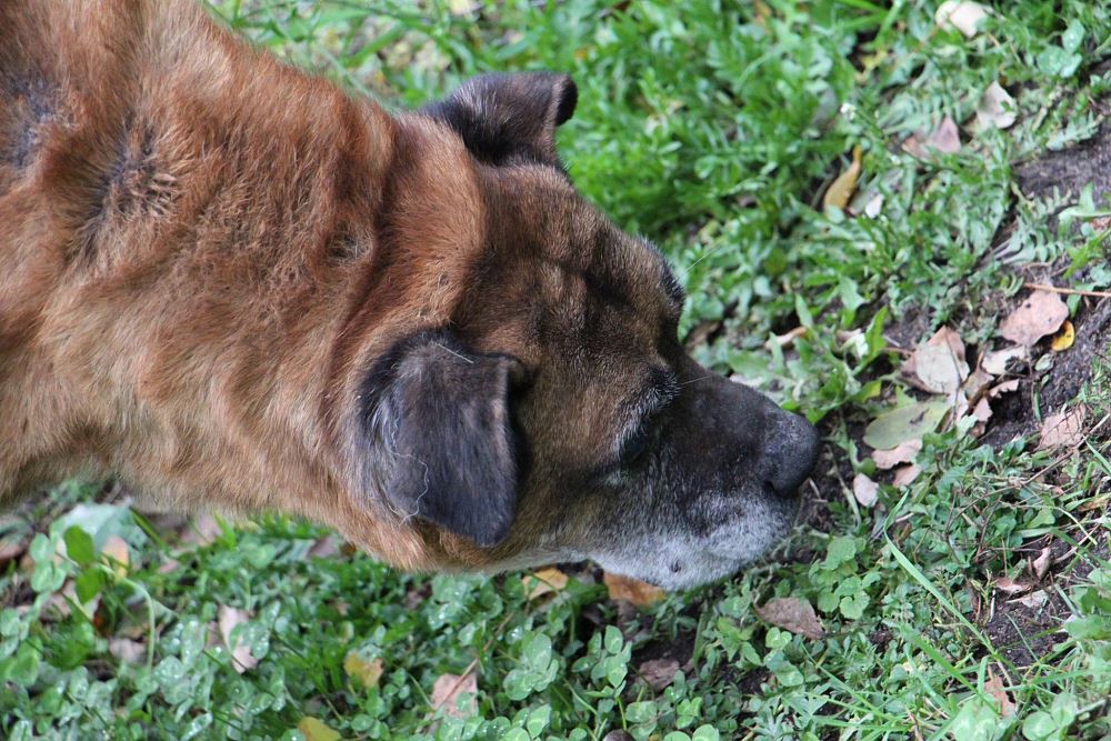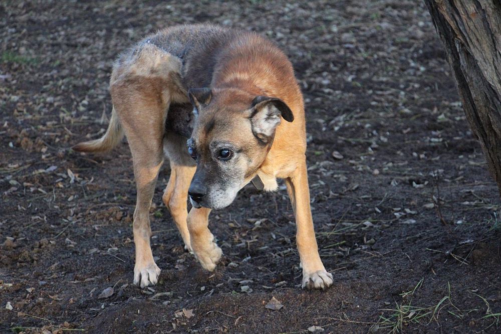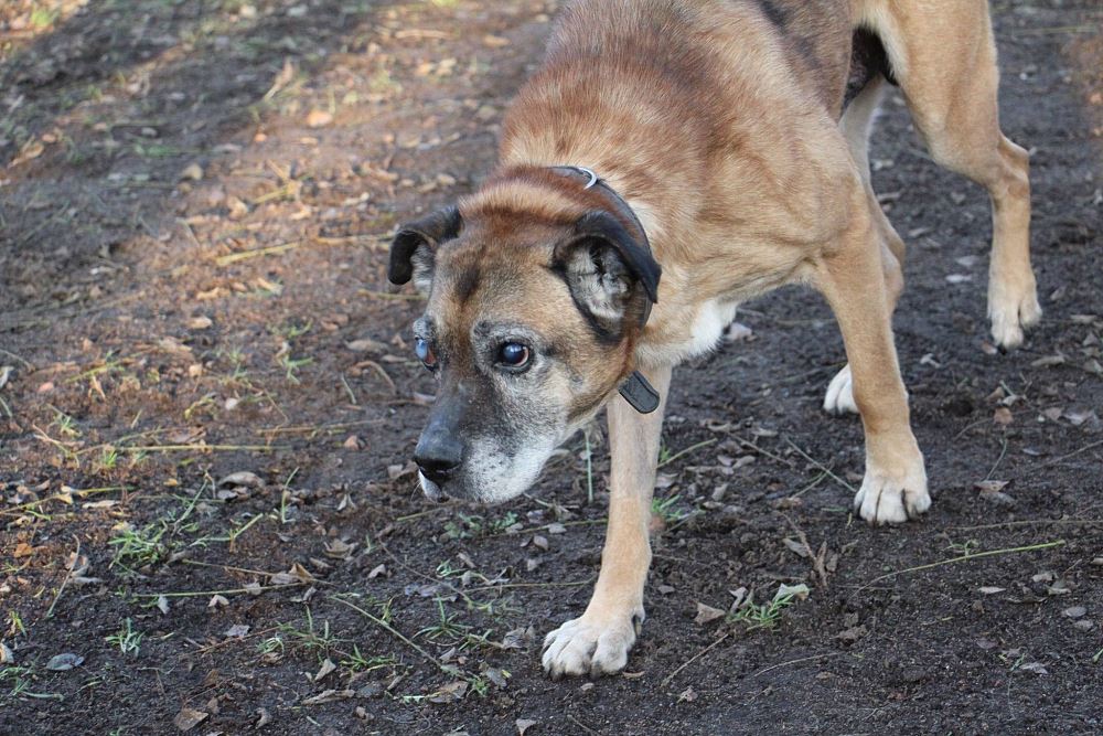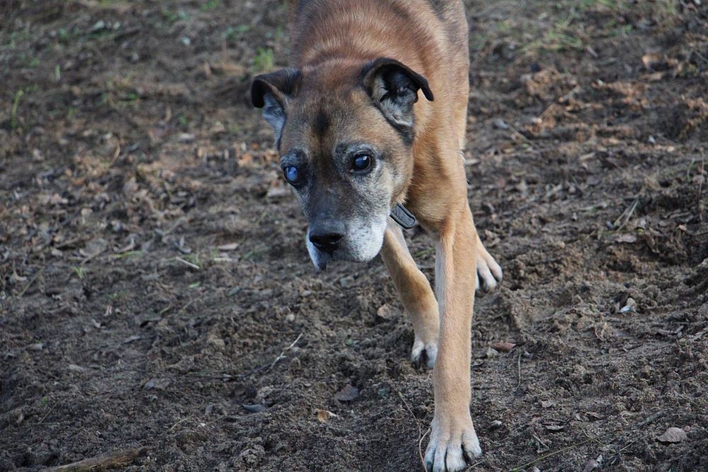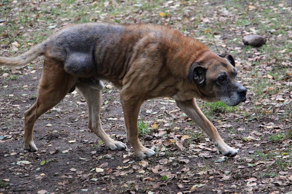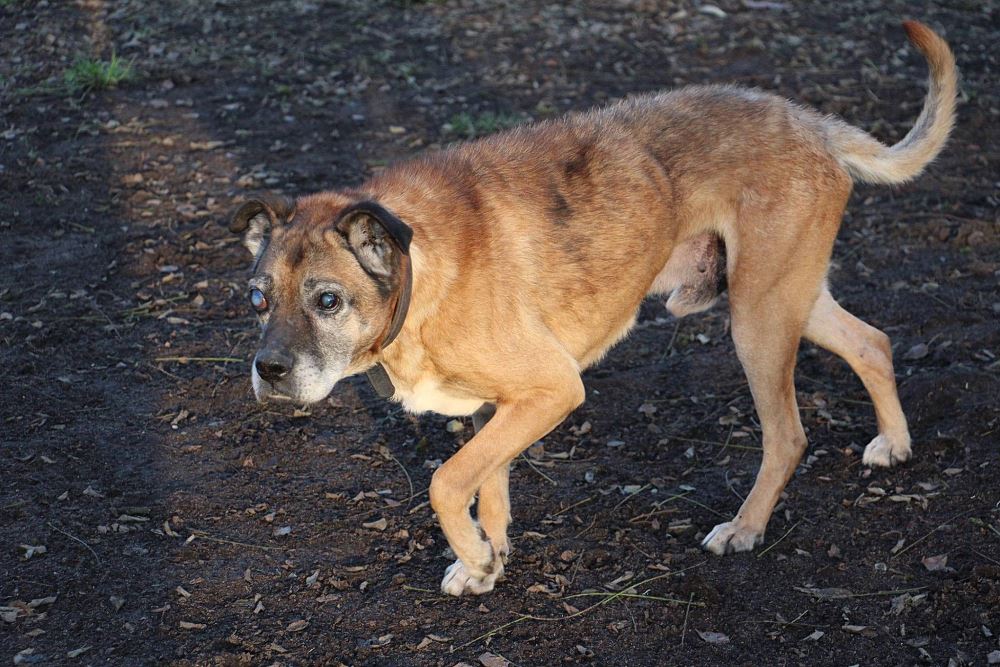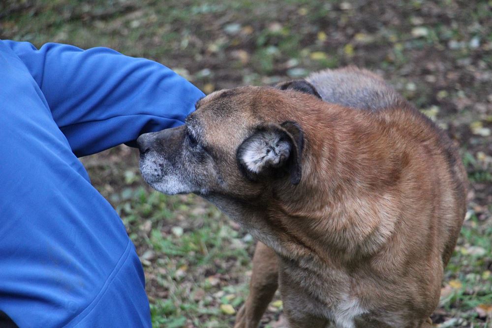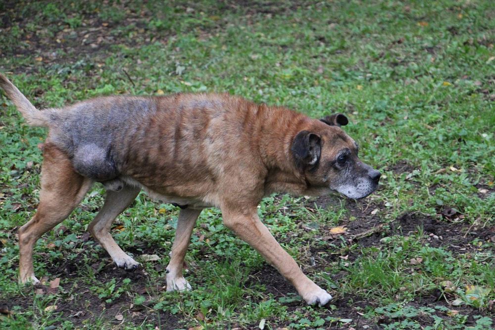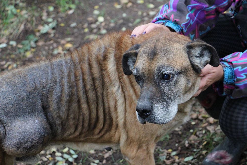 Pies odebrany interwencyjnie z Gminy Oborniki, mieszkał w betonowym, rozsypującym się budynku na stercie puszek i butelek i na tynku, który spadał z sufitu. Jest tak zachwycony suchą budą z miękkim kocykiem, że trzeba go prosić aby poszedł na spacer. Zrobiona diagnostyka, czekamy na wyniki a teraz zajmujemy się skórą.