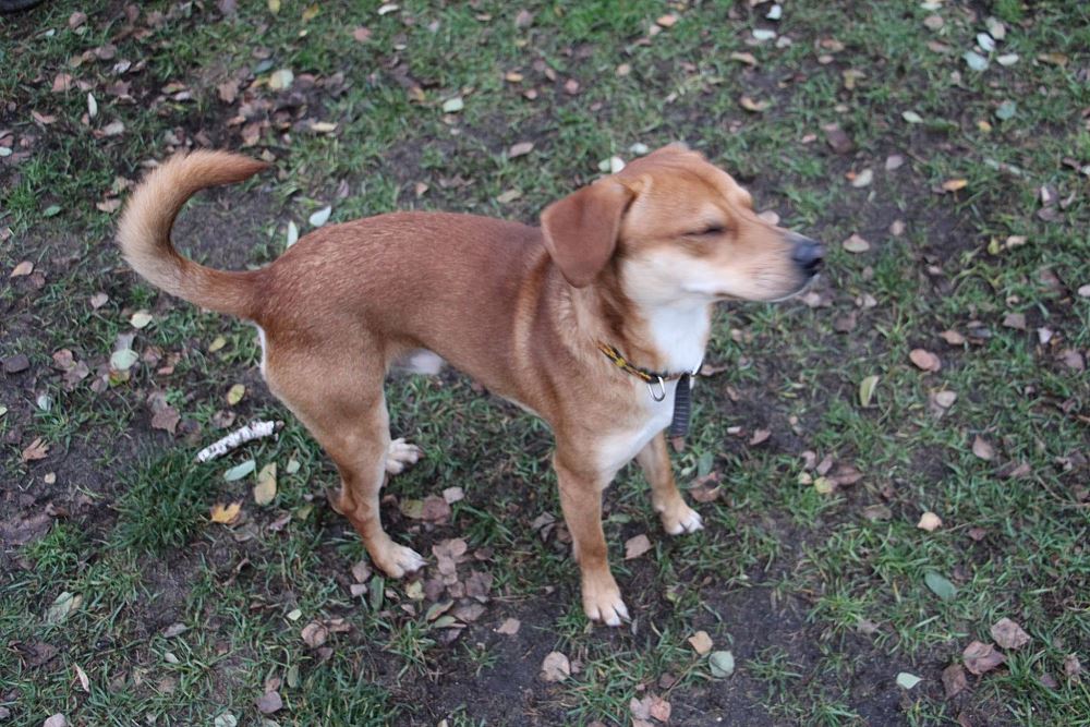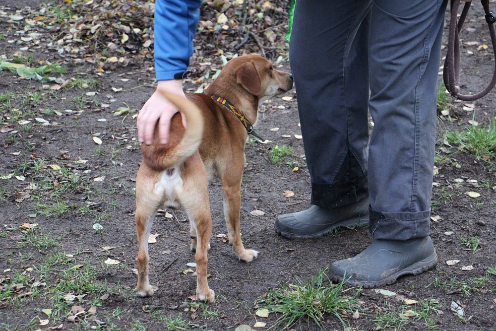 Pies odłowiony w Tarnowie Podgórnym 31 października - jest psem około rocznym, stara się utrzymywać czystość w kojcu. Strasznie wyje za swoimi ludźmi. Feluś ładnie chodzi na smyczy, jest bardzo energiczny, aportuje piłeczkę. Niezwykle przywiązuje się do człowieka, stąd pewnie rozpacz, gdy zostaje w kojcu.