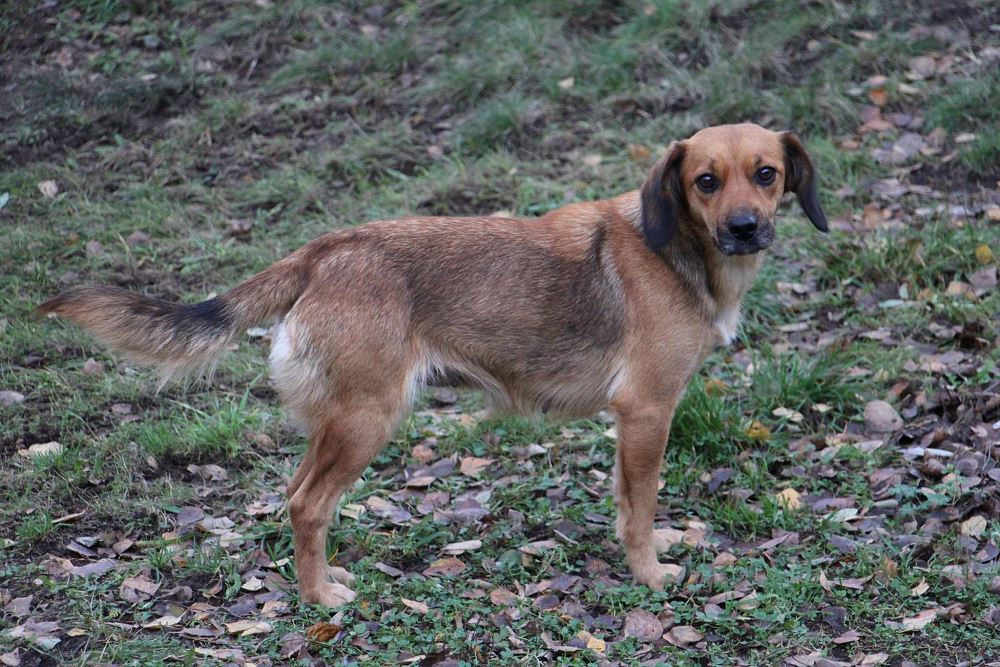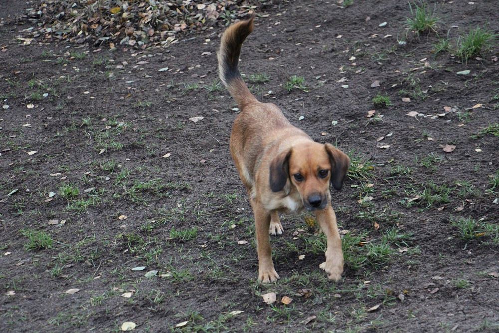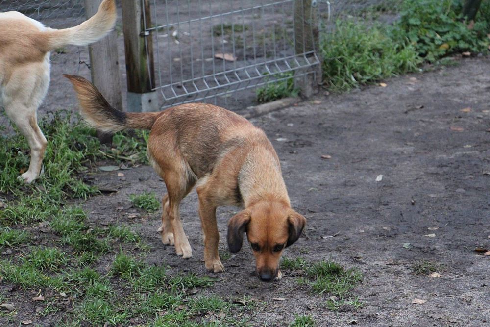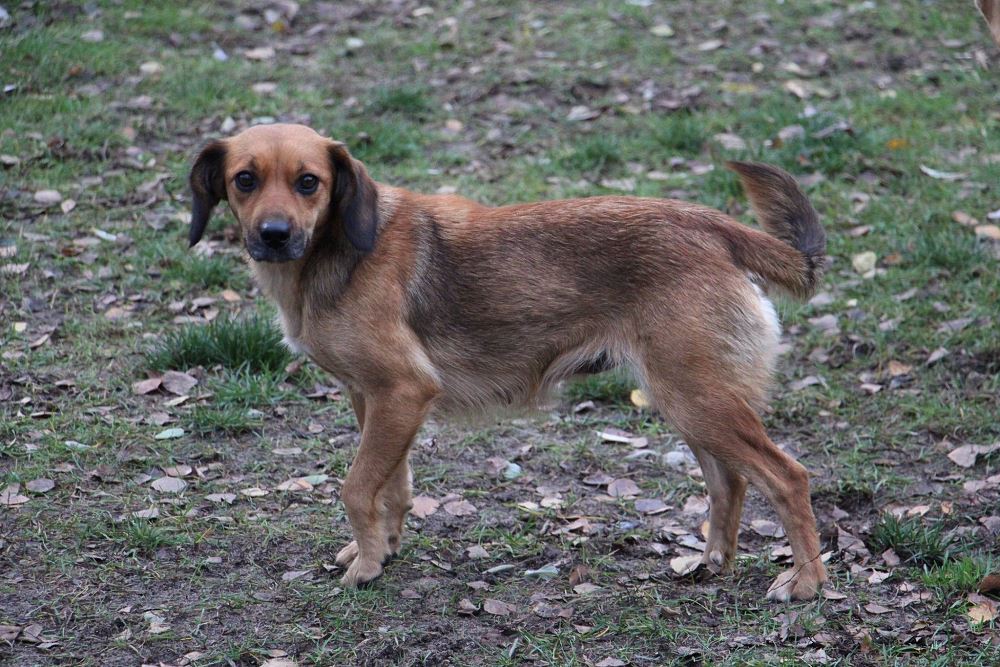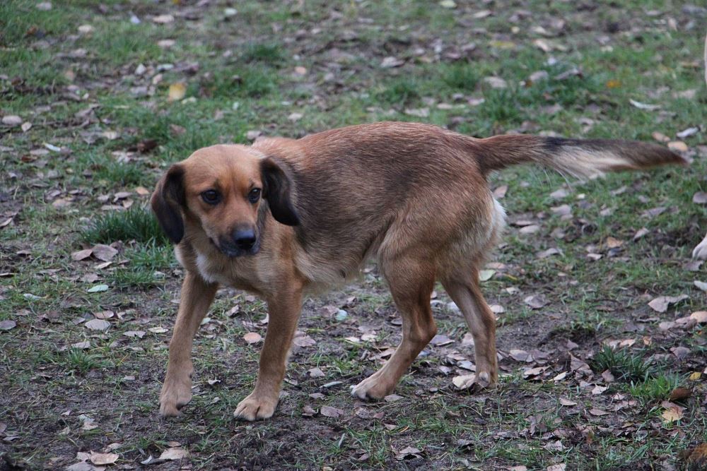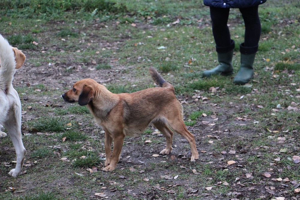 Suczka przywieziona z gminy Czarnków 15 listopada z Dallasem, jest max 1,5 roczna, jest łagodna coraz lepiej chodzi na smyczy, mocno związana z Dallasem. Jest skoczna, potrafi się wspinać na sterty np. drewna. Beksa niezwykle garnie się do człowieka.