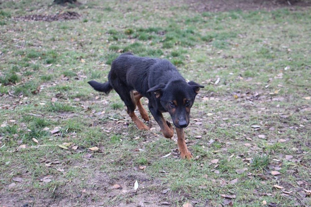 Pies przywieziony do nas z Gminy Murowana Goślina 20 listopada. Bełt był bardzo zaniedbany - chudy, z matową sierścią - a jest psem młodym, około rocznym. Obecnie jest już po kastracji, wydobrzał, ładnie przytył... Bardzo lubi spacery i towarzystwo innych psiaków :)