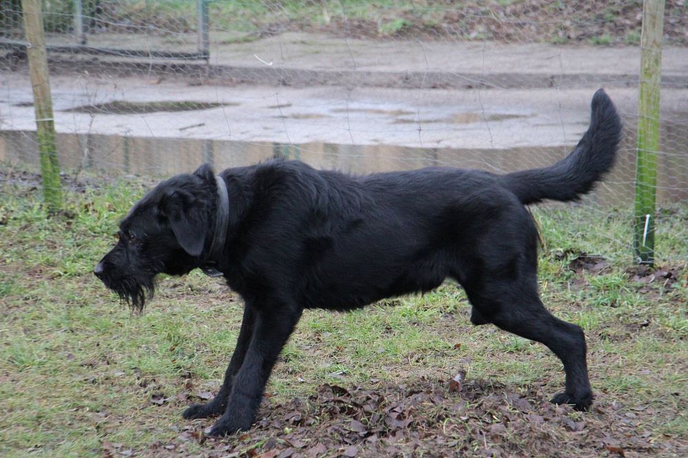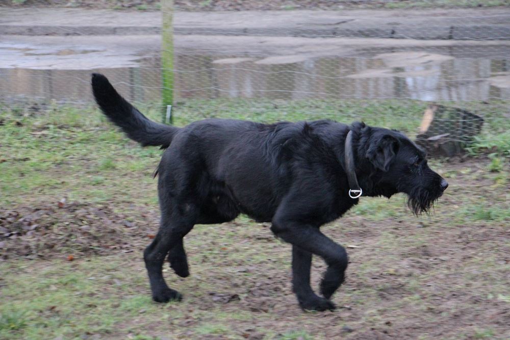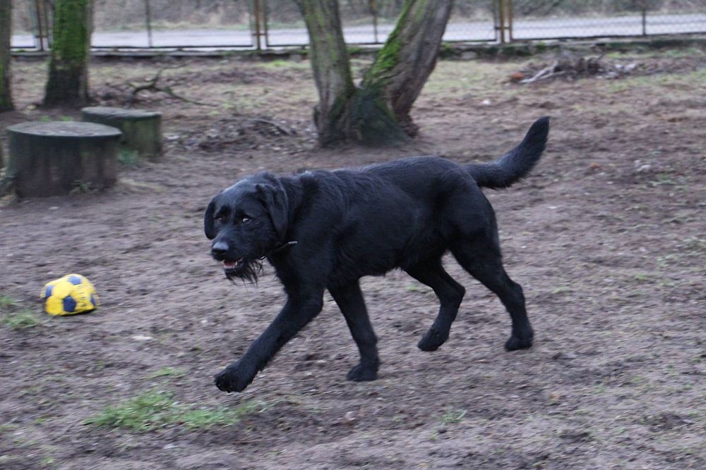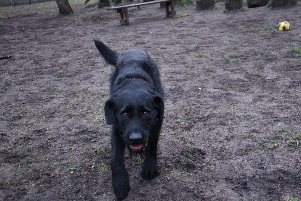 Pies, przywieziony z Grodziska Wielkopolskiego ma około 2-3 lat, młody, energiczny. Geniu jest masywnym i dość dużym psem, adoptując go trzeba wziąć pod uwagę koszty utrzymania :) Względem ludzi jest bardzo przyjazny i spokojny. Bardzo ładnie chodzi na smyczy, zna podstawowe komendy, stara się utrzymywać czystość w kojcu. Boi się huków. Na razie jest nie obyty z innymi psami, w pierwszym kontakcie źle się wobec nich zachowuje. Nad tym będziemy pracować po zabiegu kastracji.