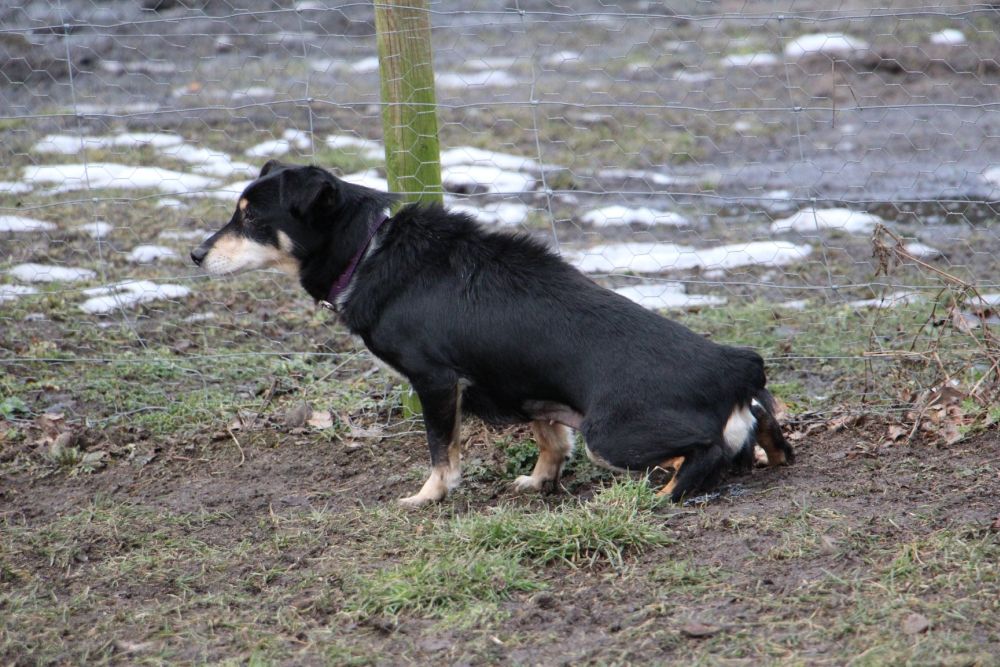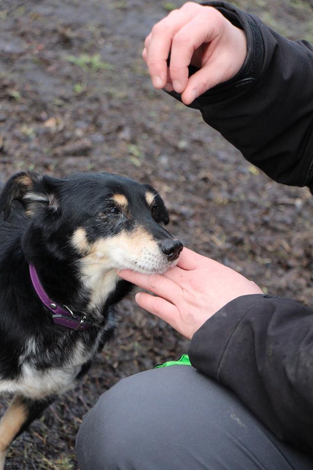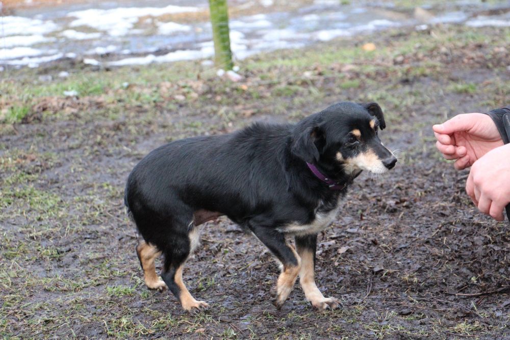 Suczka przywieziona 10 stycznia z Rogoźna, ma powyżej 5 lat, jest spokojna, ciepłolubna, lubi spokój, toleruje koty.