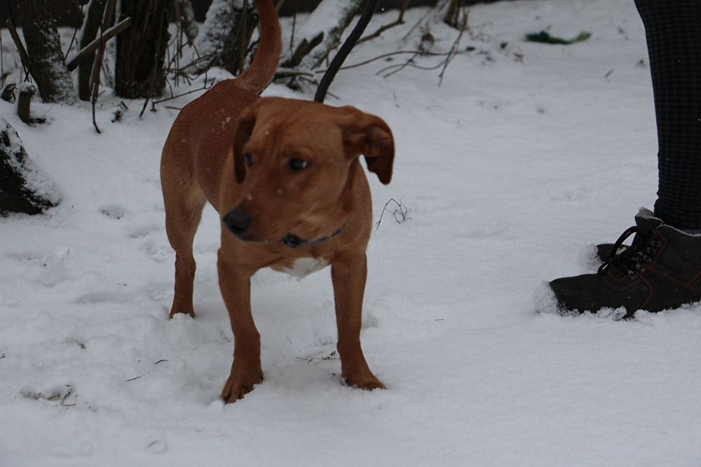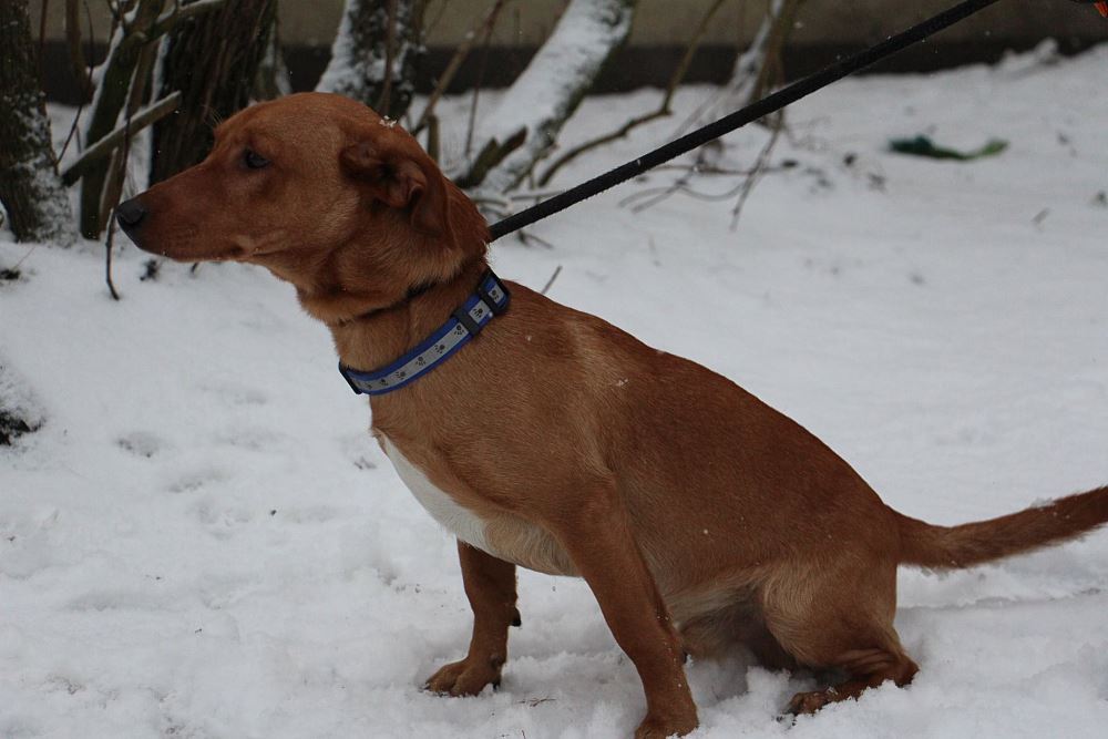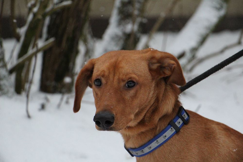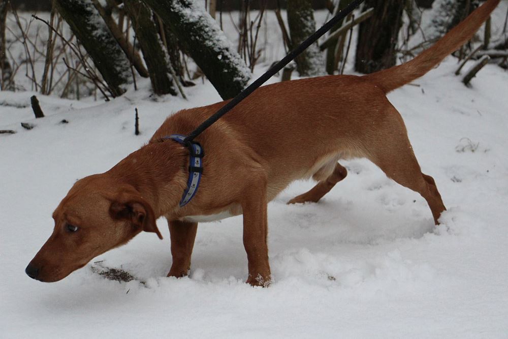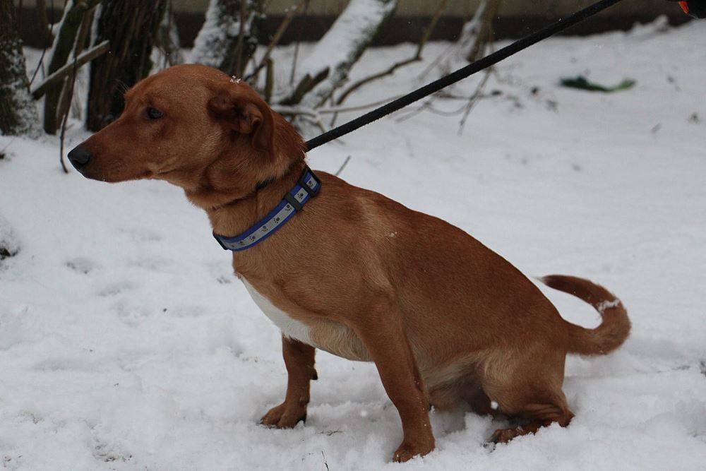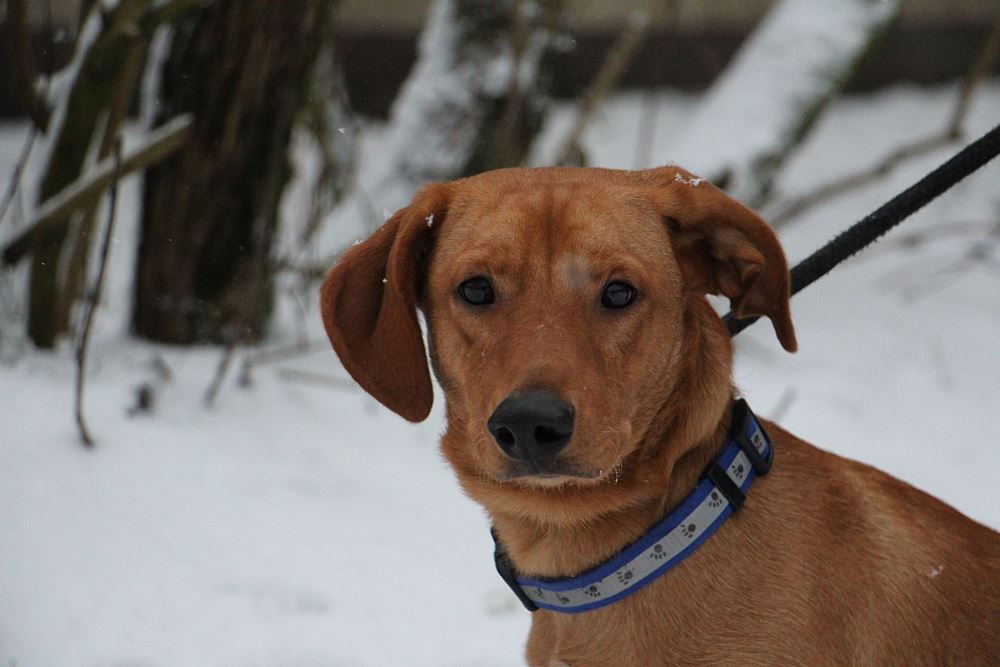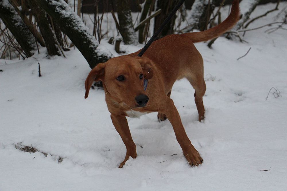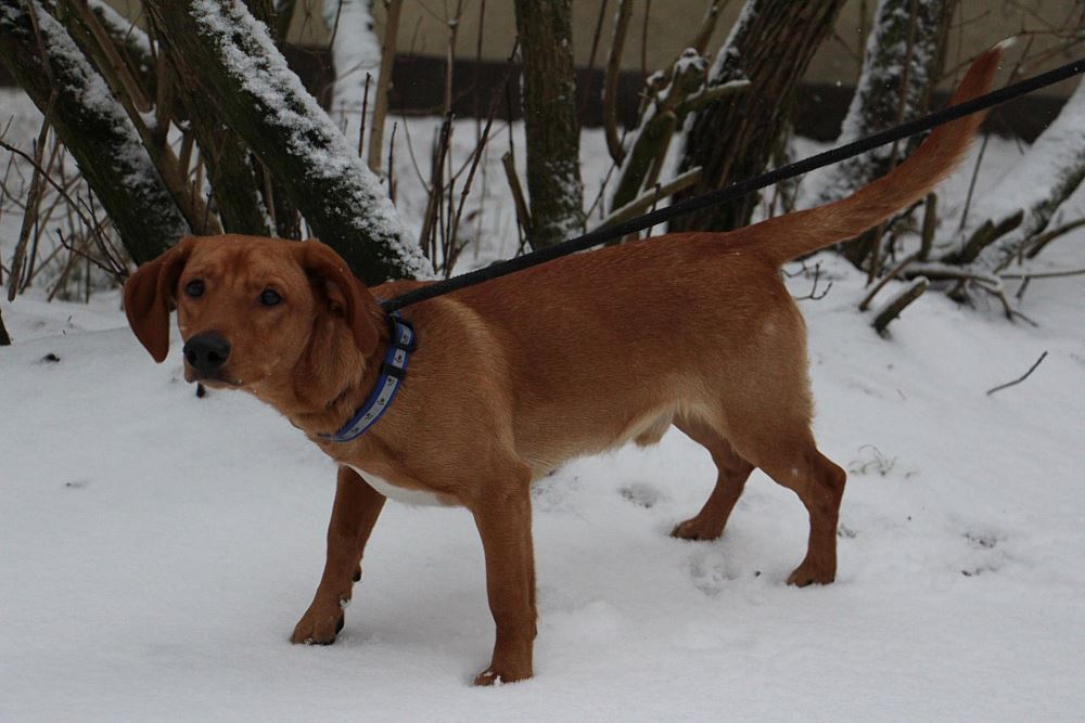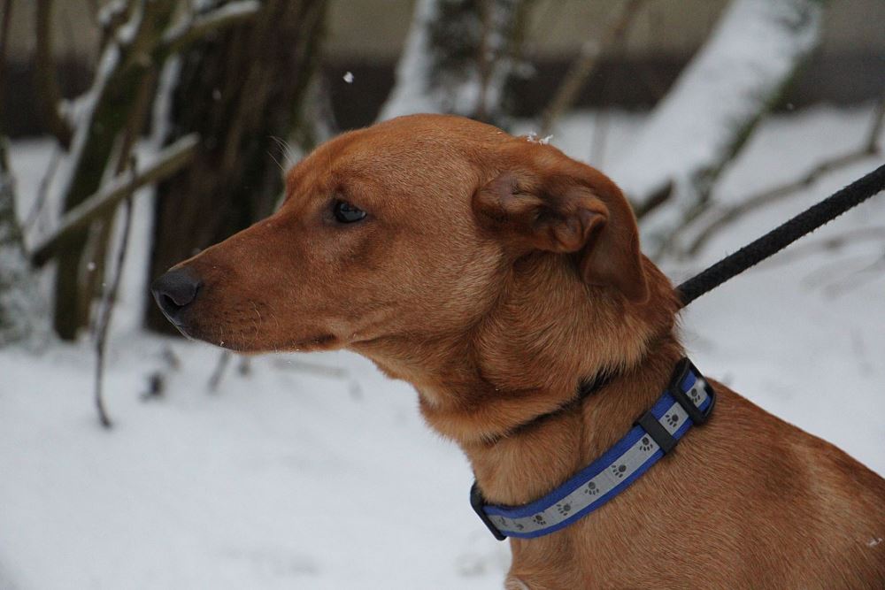 Pies odłowiony 16 stycznia w gminie Murowana Goślina w Łopuchówku. Błąkał się tam dobry tydzień. Jest młody ma około 1 roku.